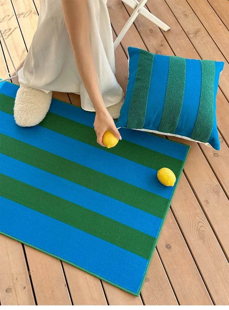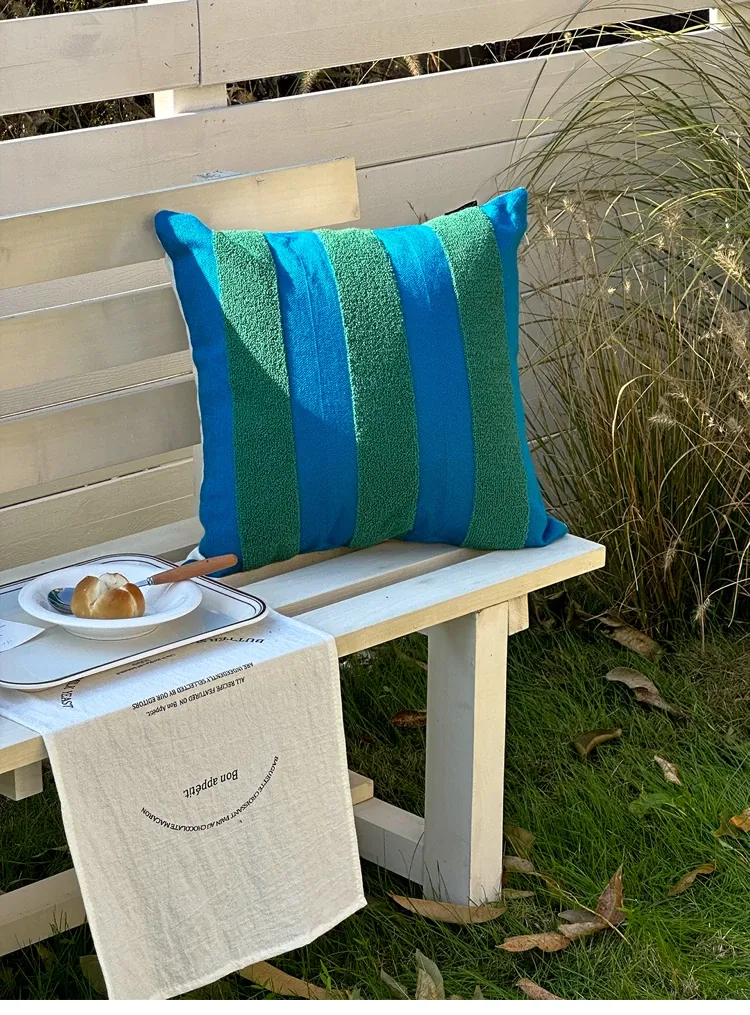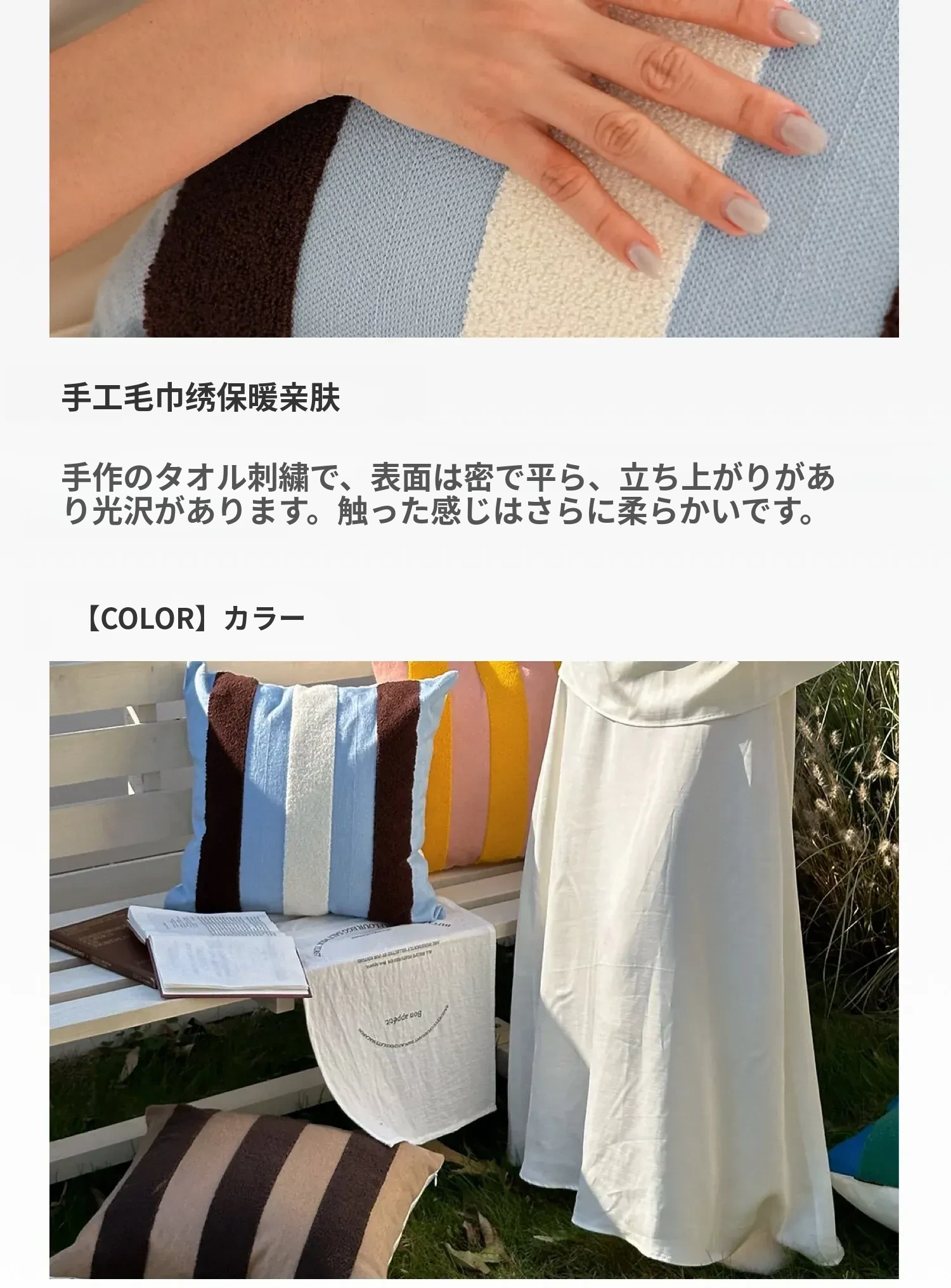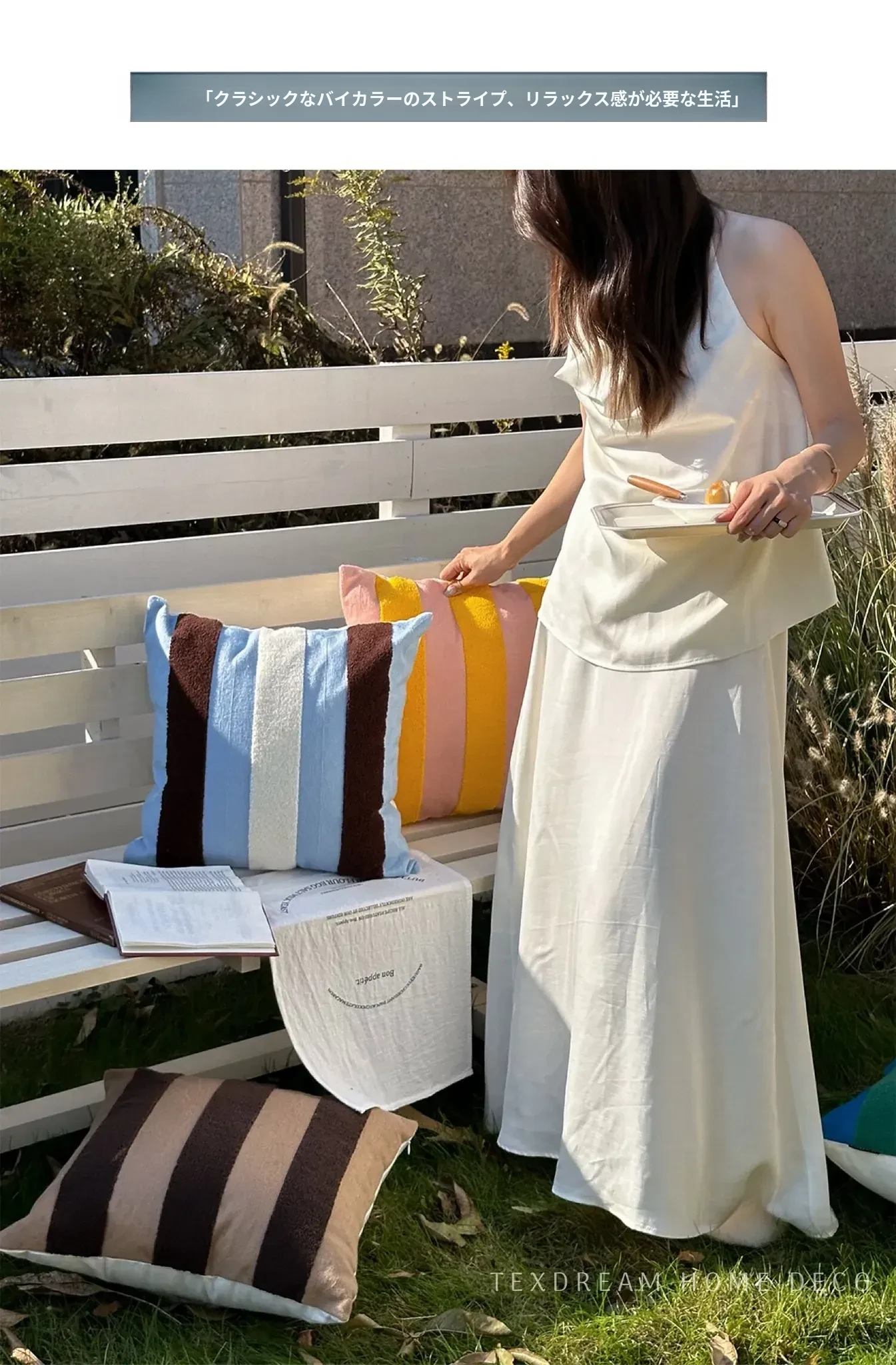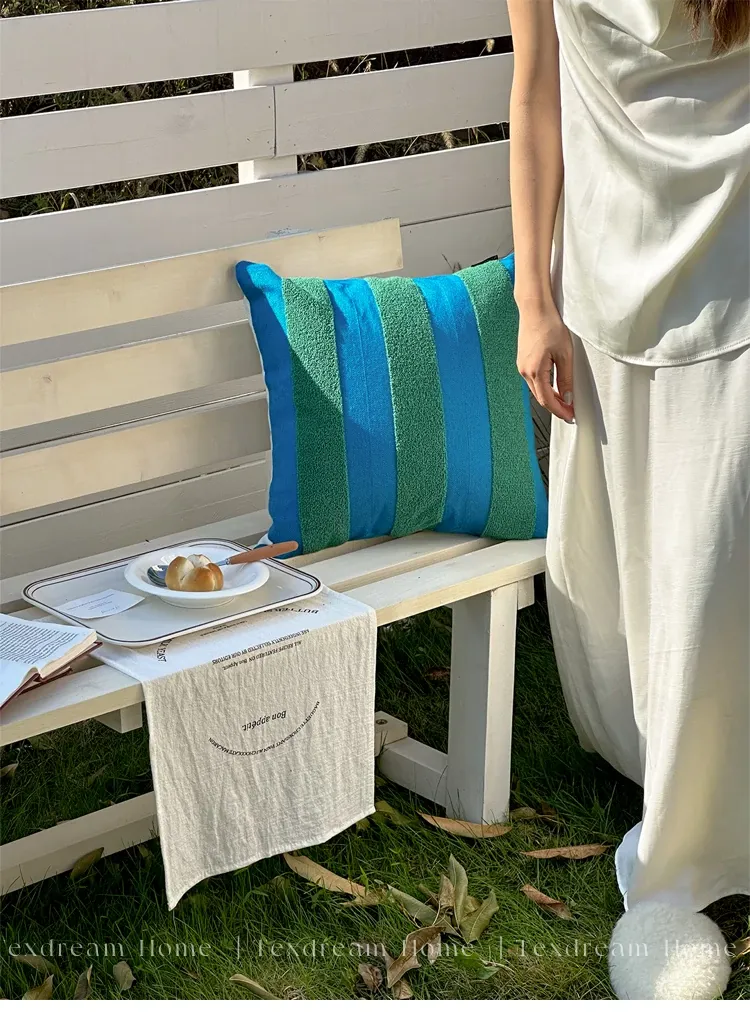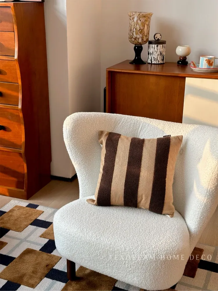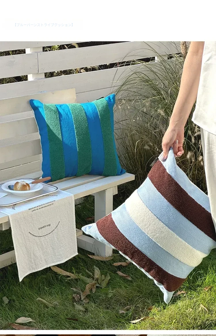テックスドリームのドパミンストライプクッション - 高級感溢れるアメリカンスタイル、ショートファー素材で、リビングやベッドルームに最適な心地よい抱き枕!