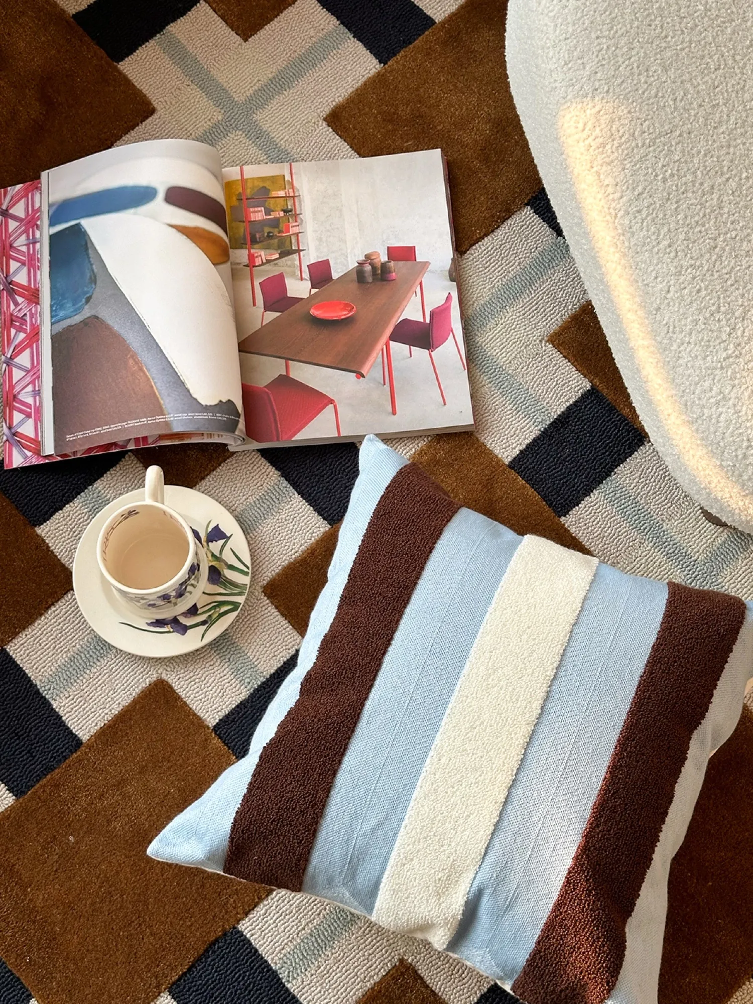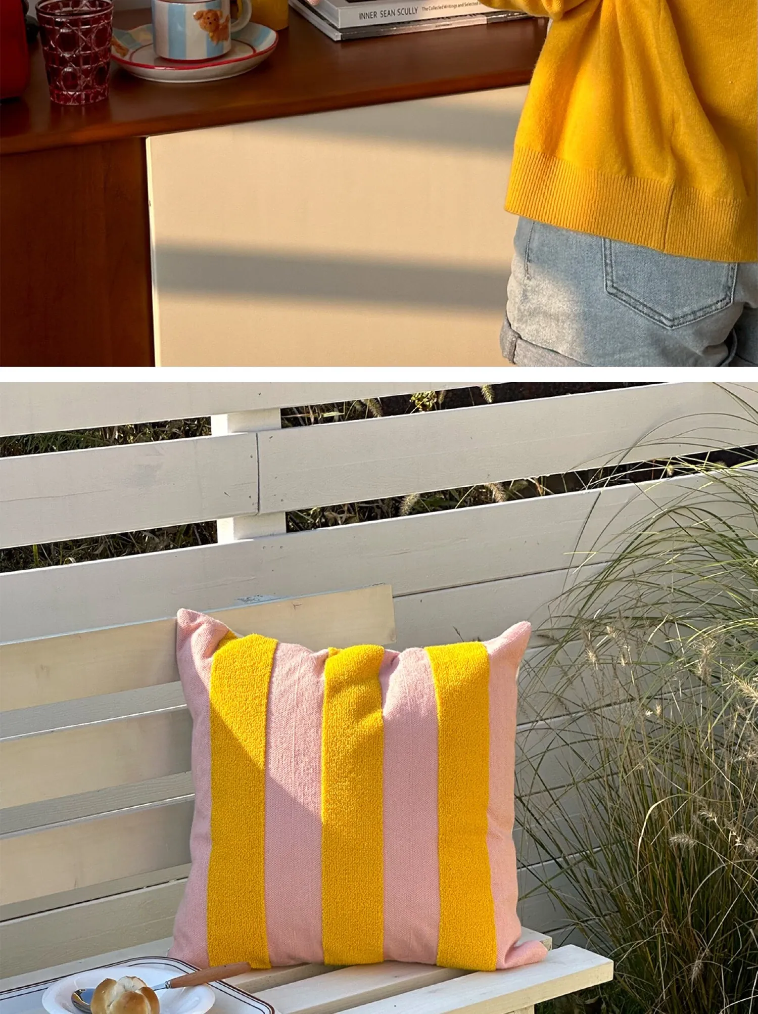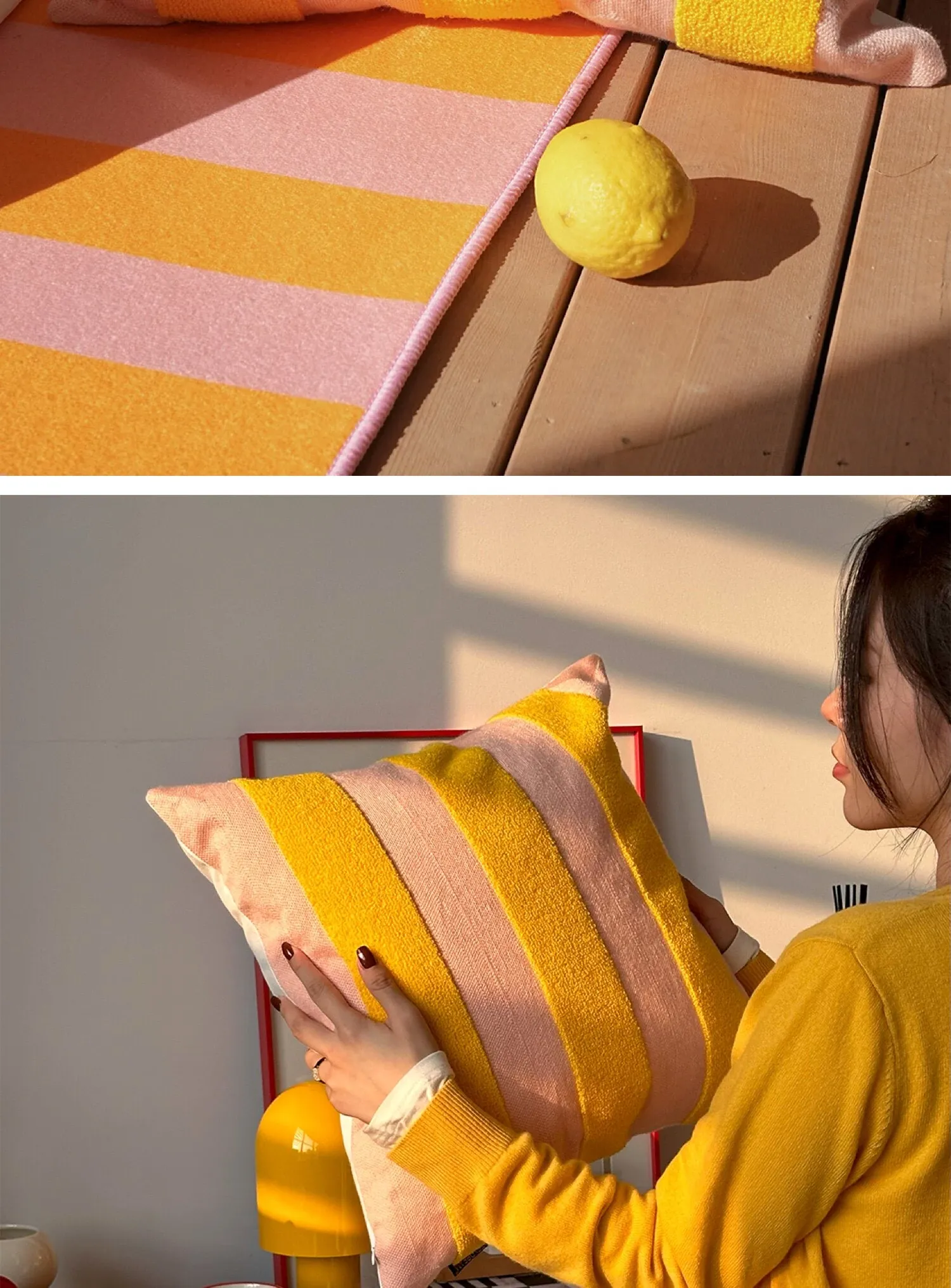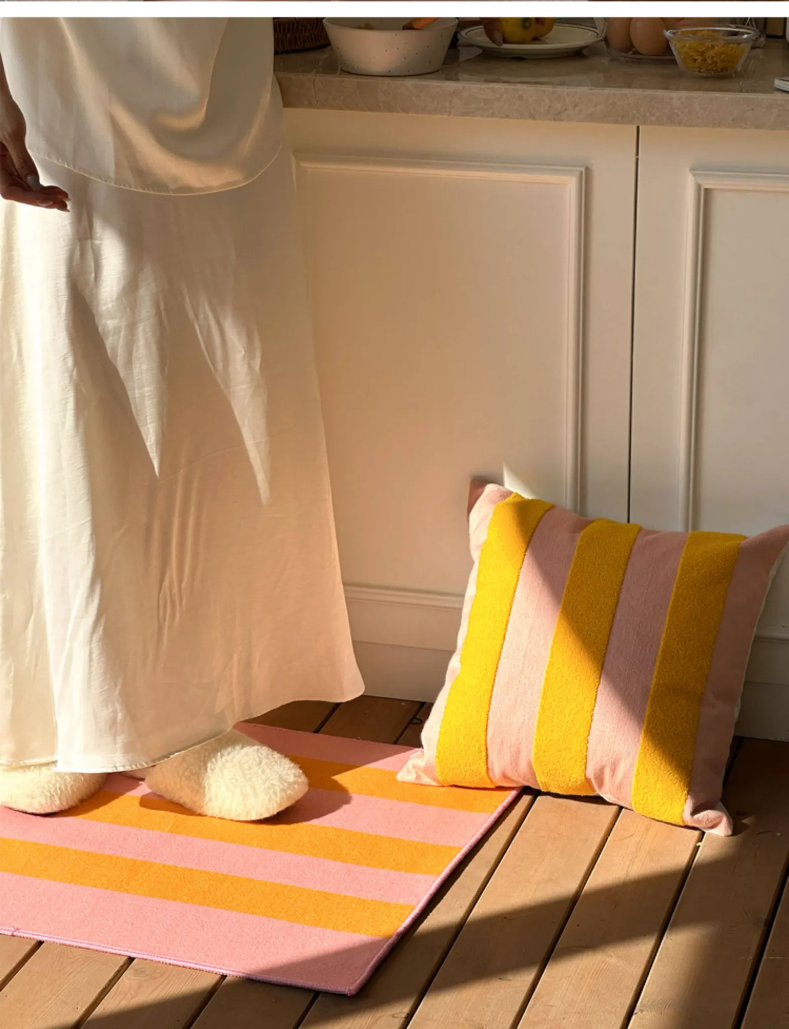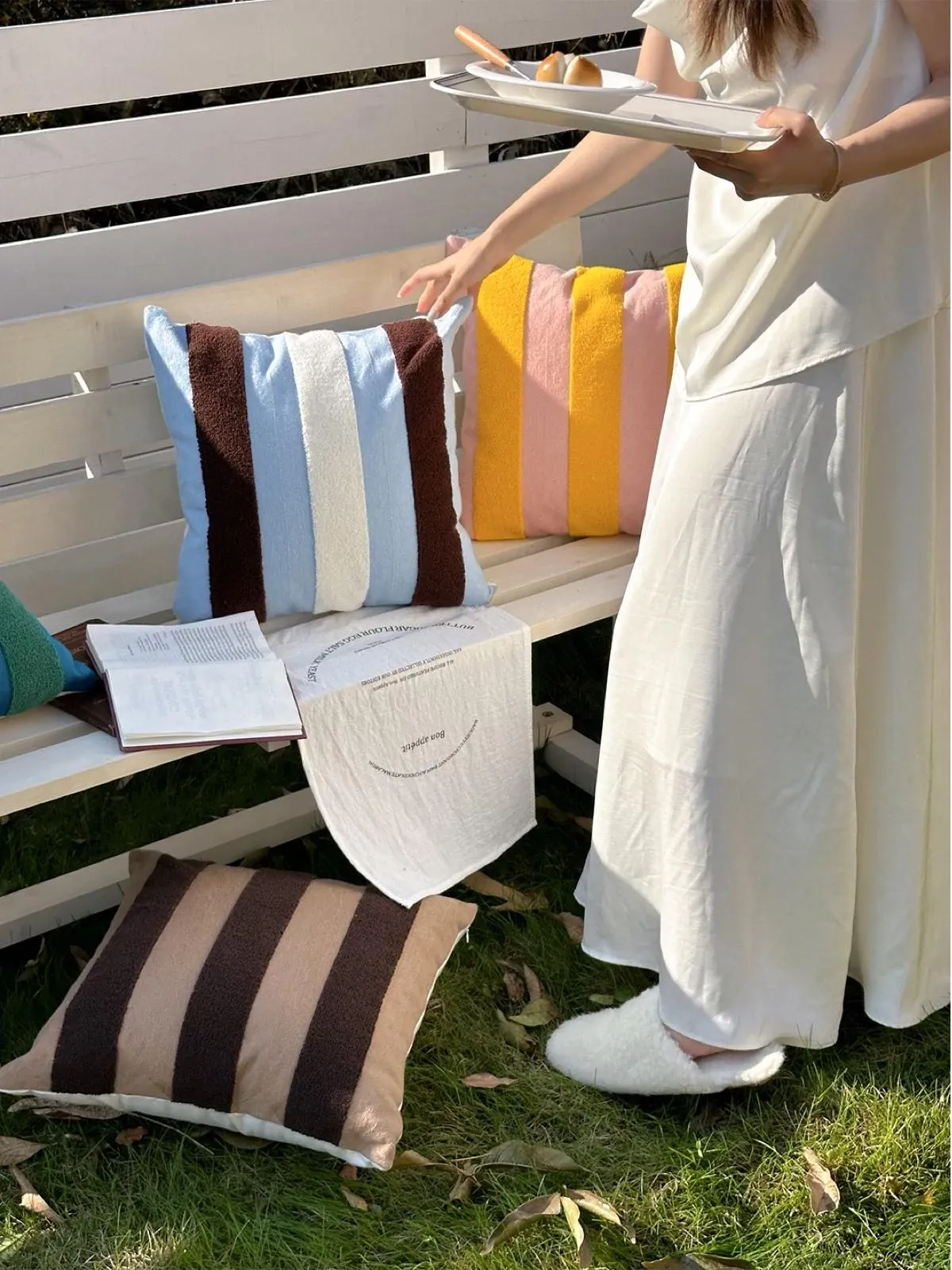 テックスドリームのドパミンストライプクッション - 高級感溢れるアメリカンスタイル、ショートファー素材で、リビングやベッドルームに最適な心地よい抱き枕!