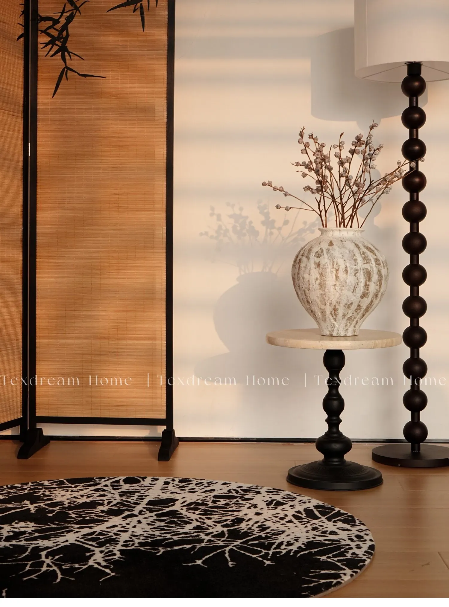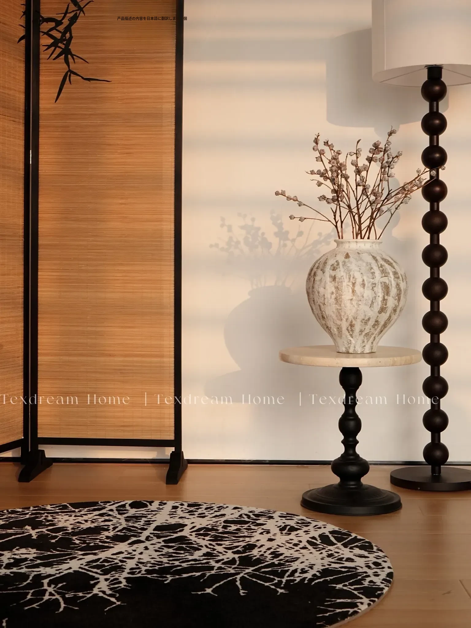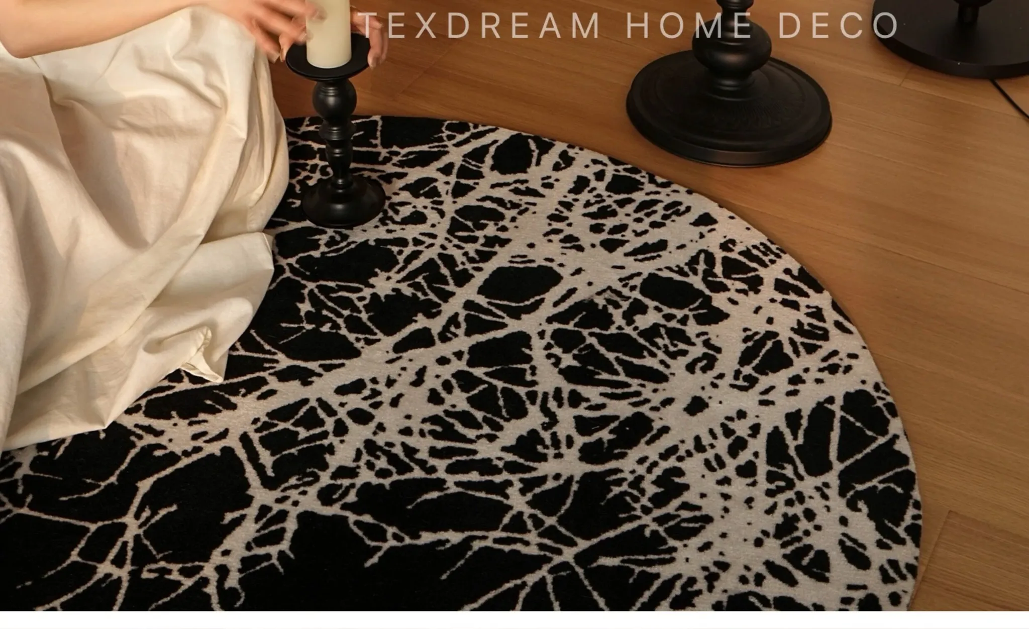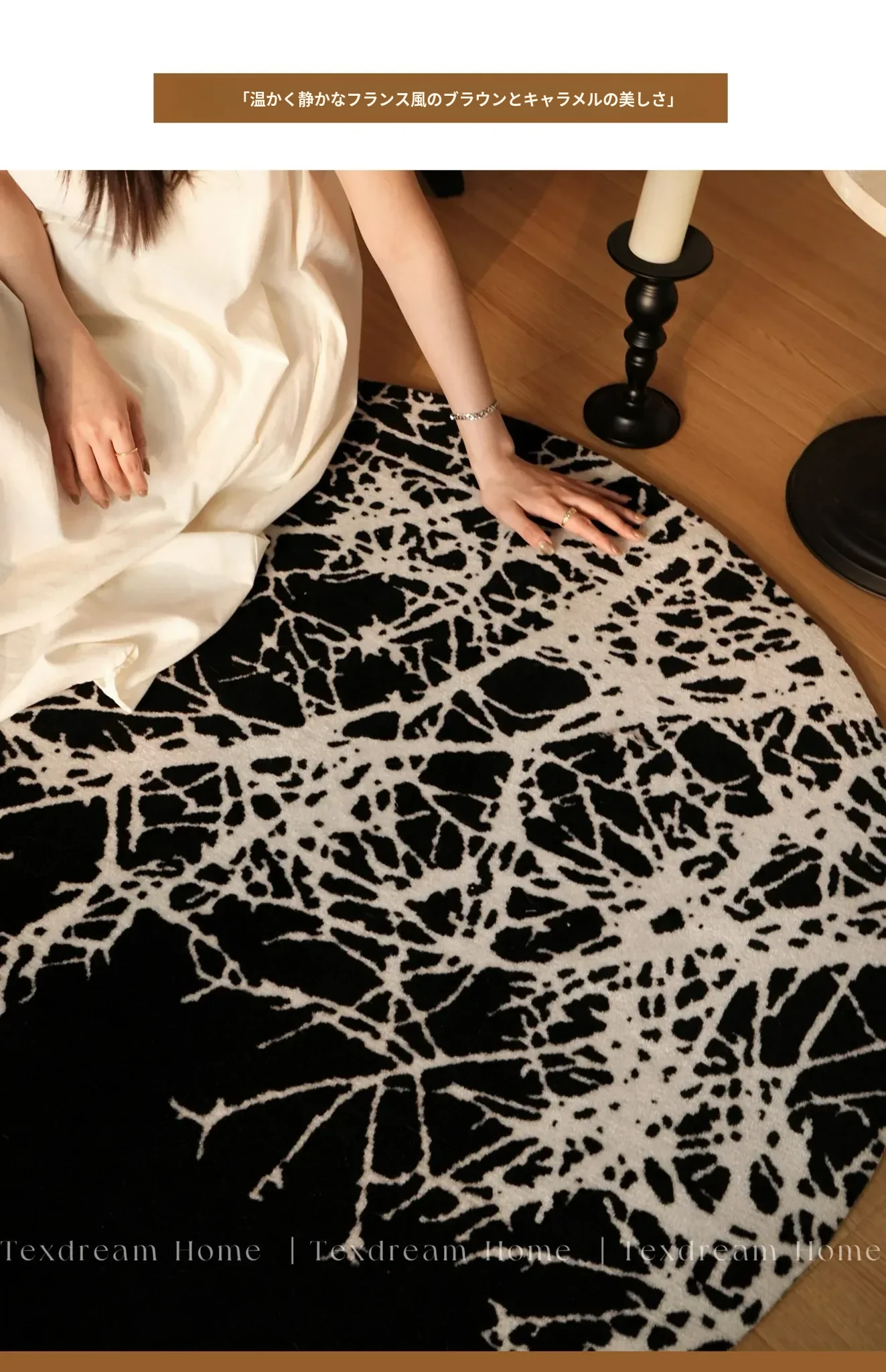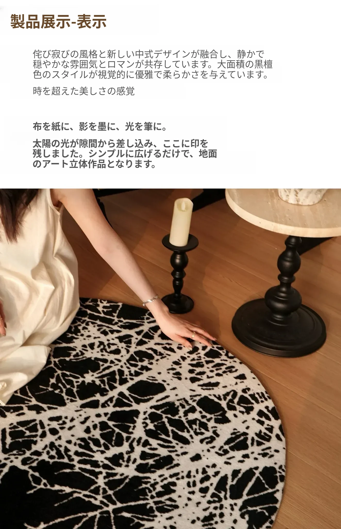 Texdreamの態度・疏影・侘寂スタイルの古風なブラック&ホワイトラグ - 高級感溢れるリビングソファー用カーペット、ベッドサイドマットとしても最適!