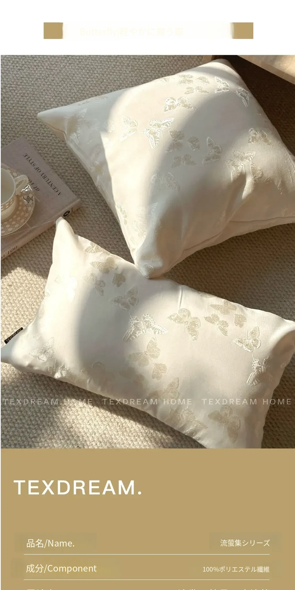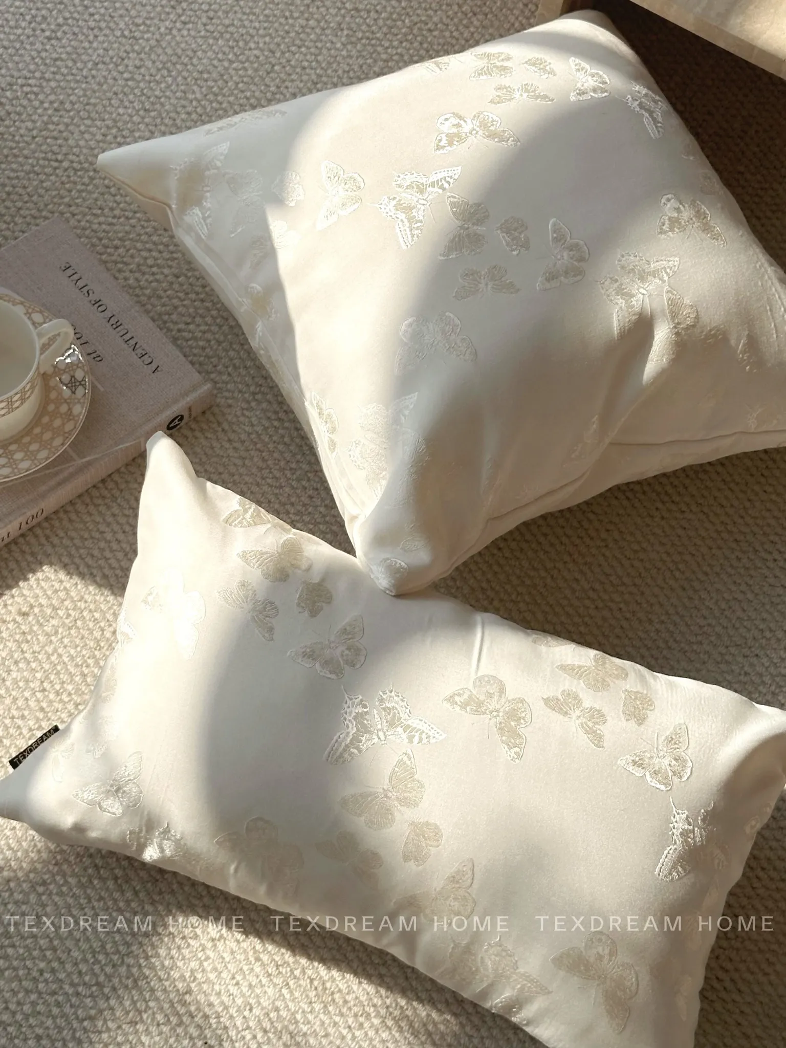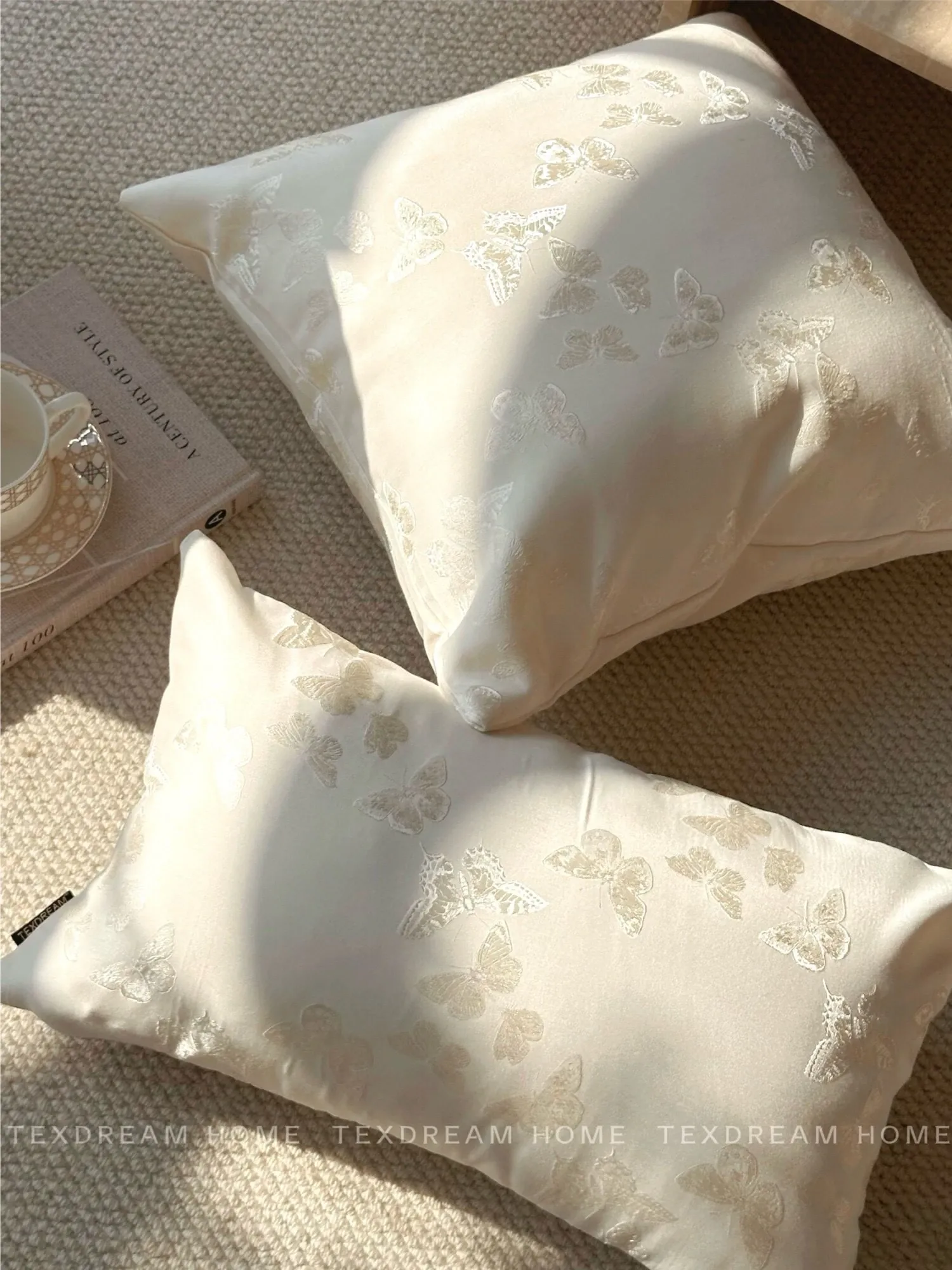 Texdreamのスタイル フランス風バタフライクッション 高級サテン織りの華やかなデザイン リビングルームソファ用クッションカバー 腰用クッションとしても最適