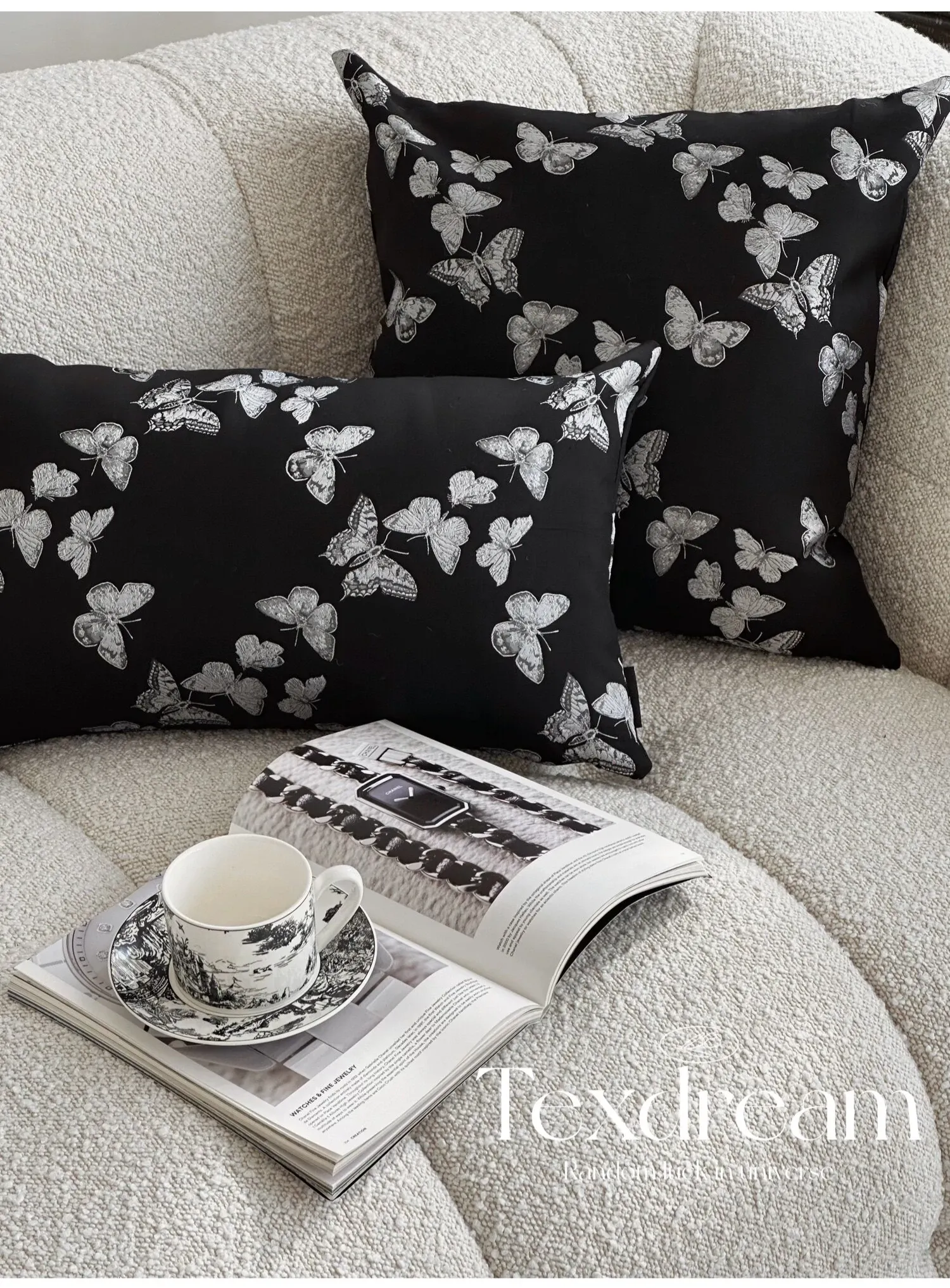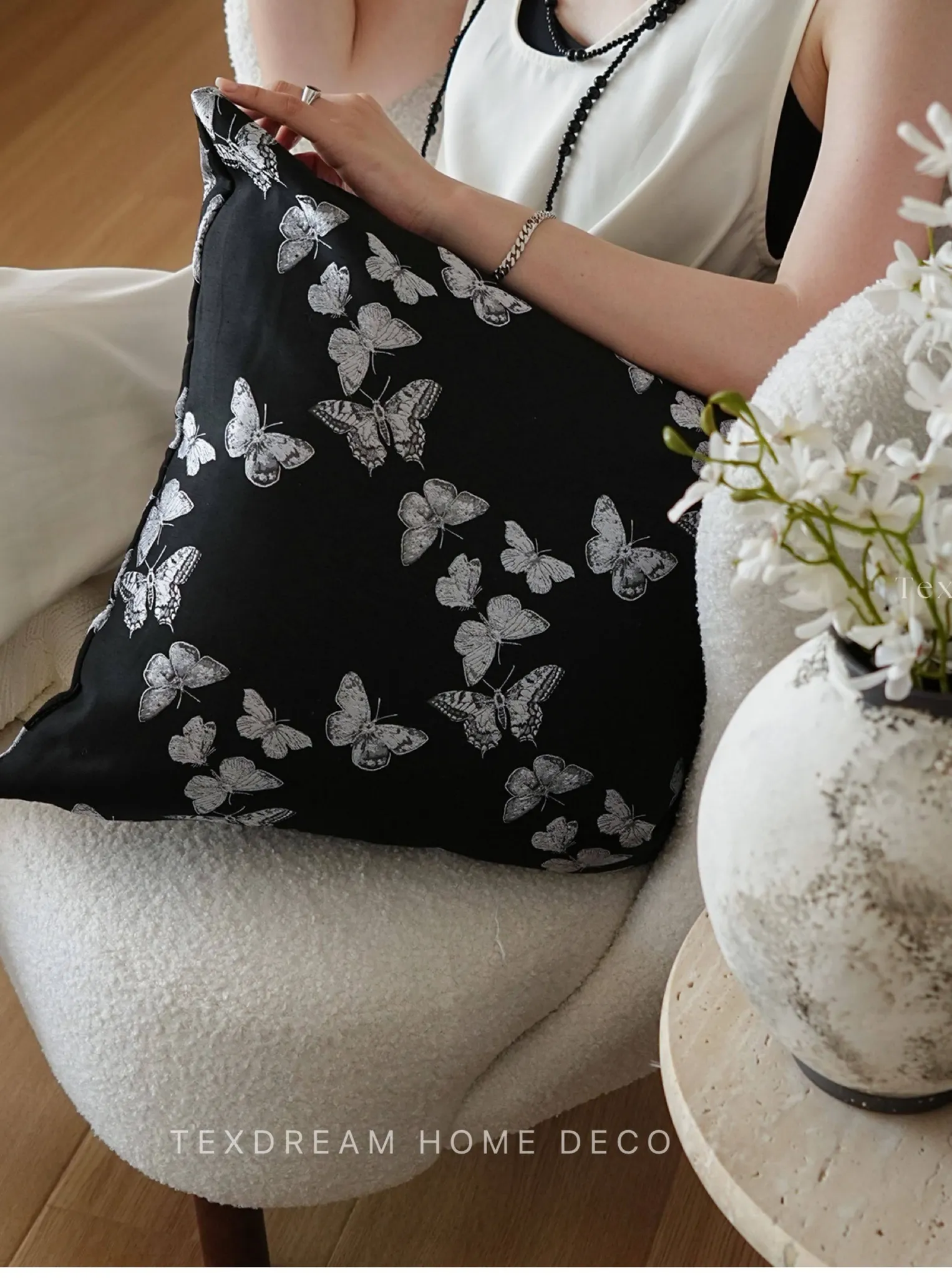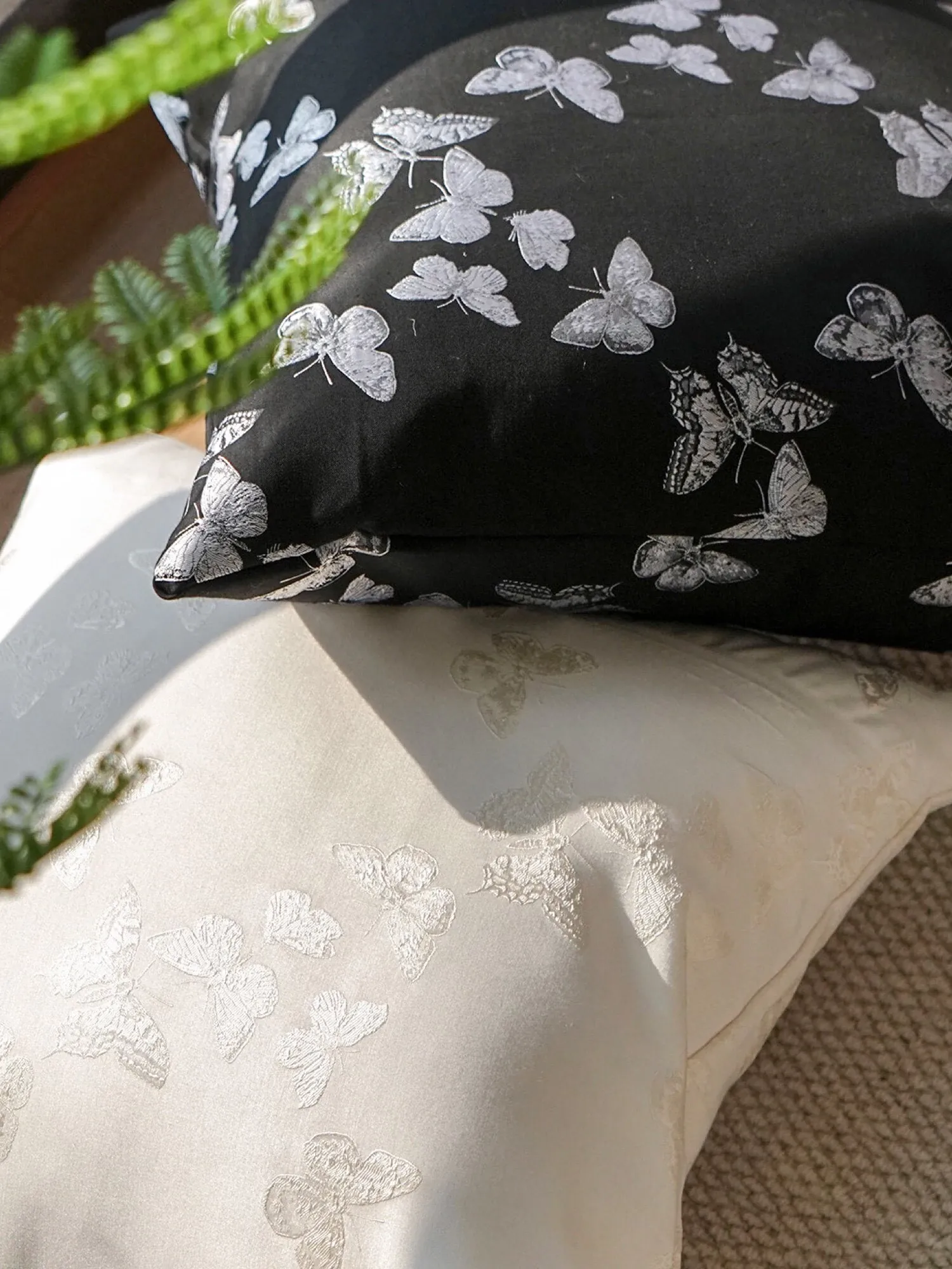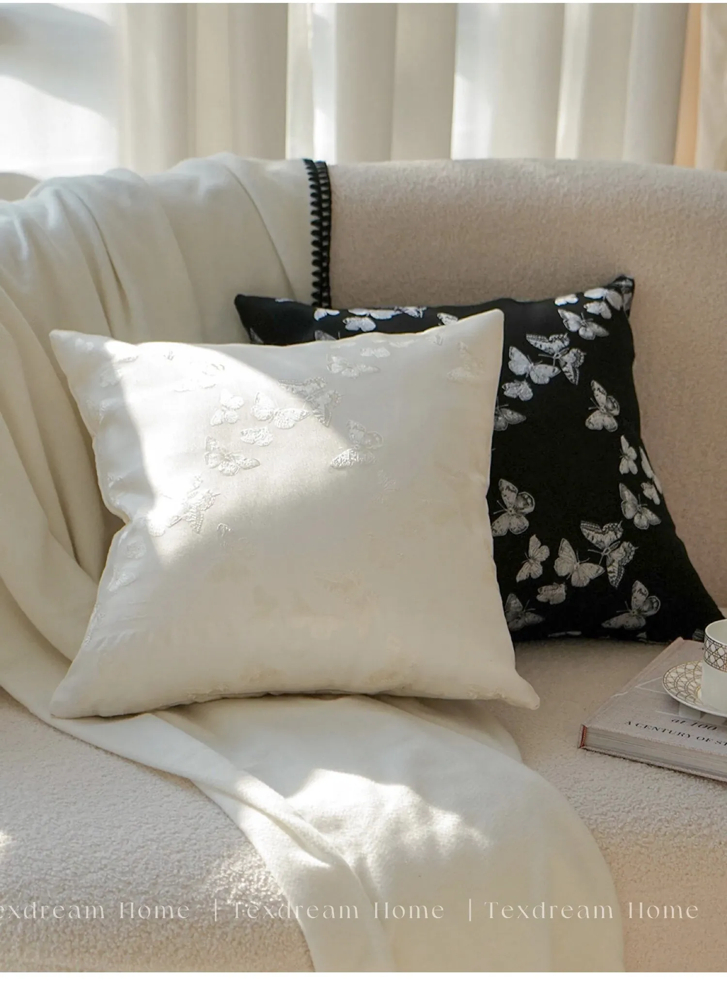 Texdreamのスタイル フランス風バタフライクッション 高級サテン織りの華やかなデザイン リビングルームソファ用クッションカバー 腰用クッションとしても最適