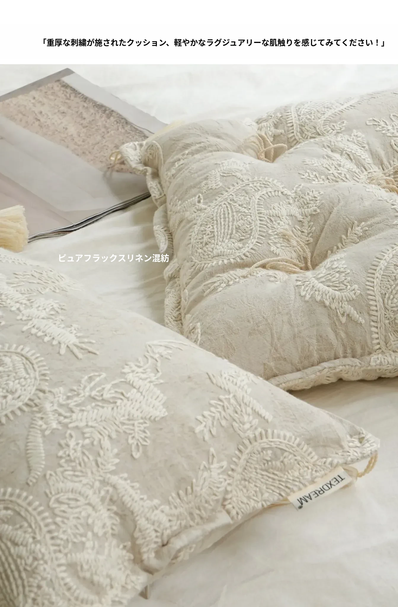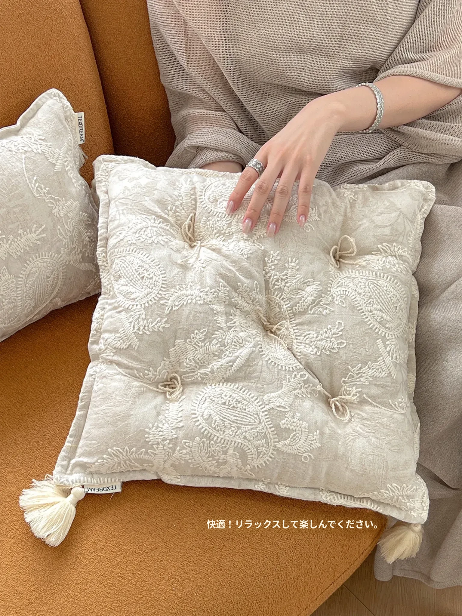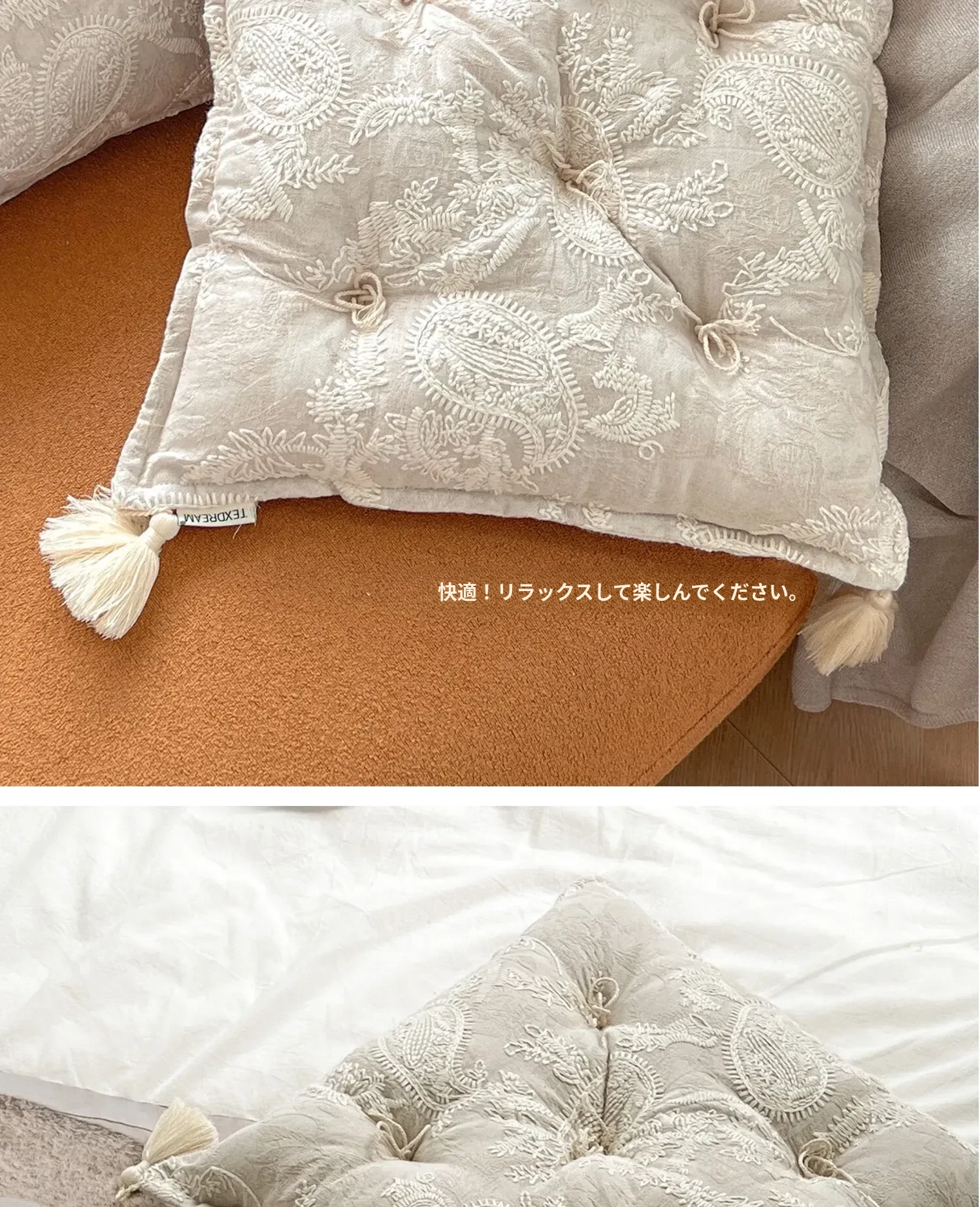 Texdreamのスタイル フランス刺繍の多機能ラグクッション 高級感漂う窓辺や畳にも最適な厚手チェアパッド