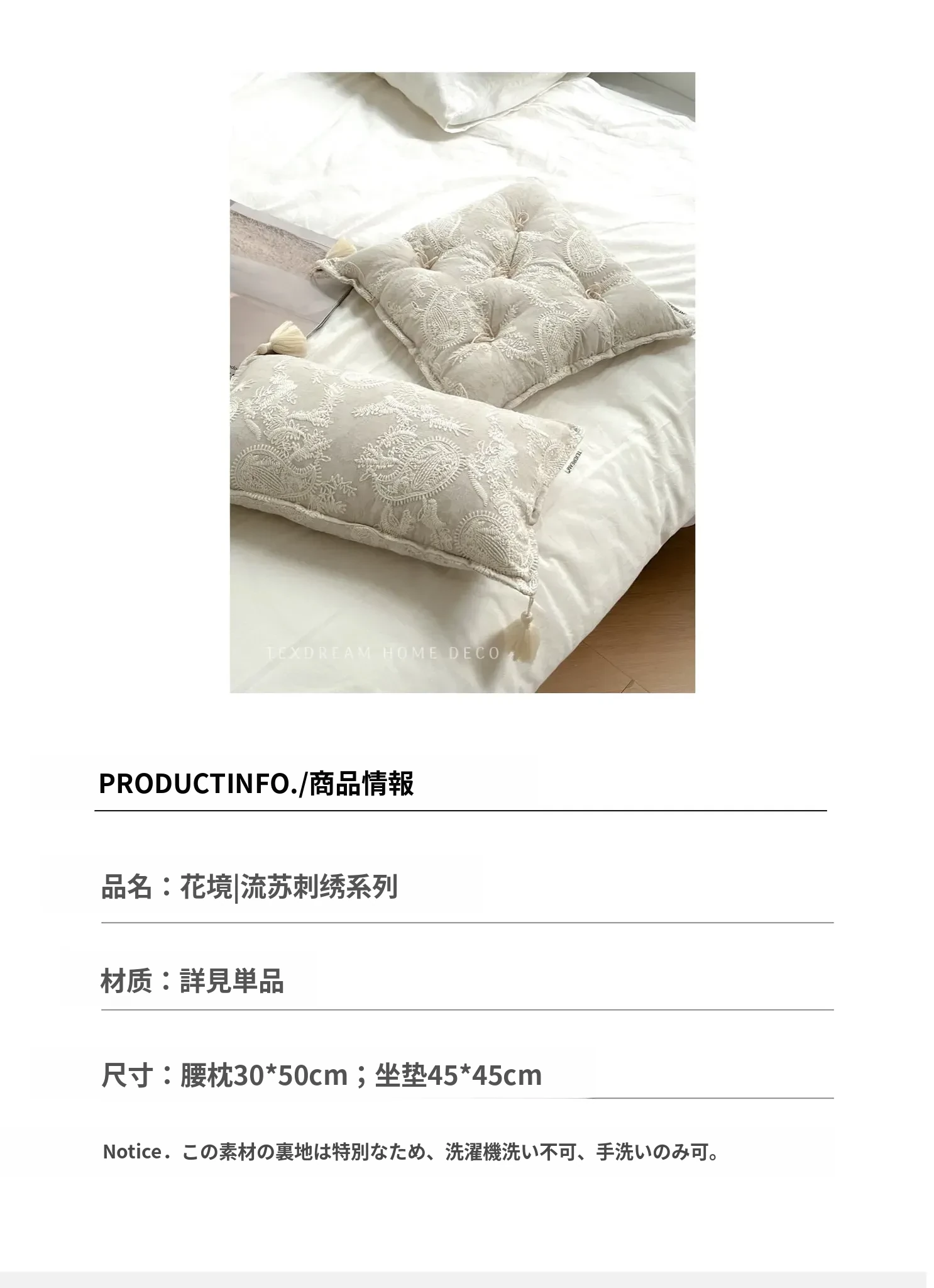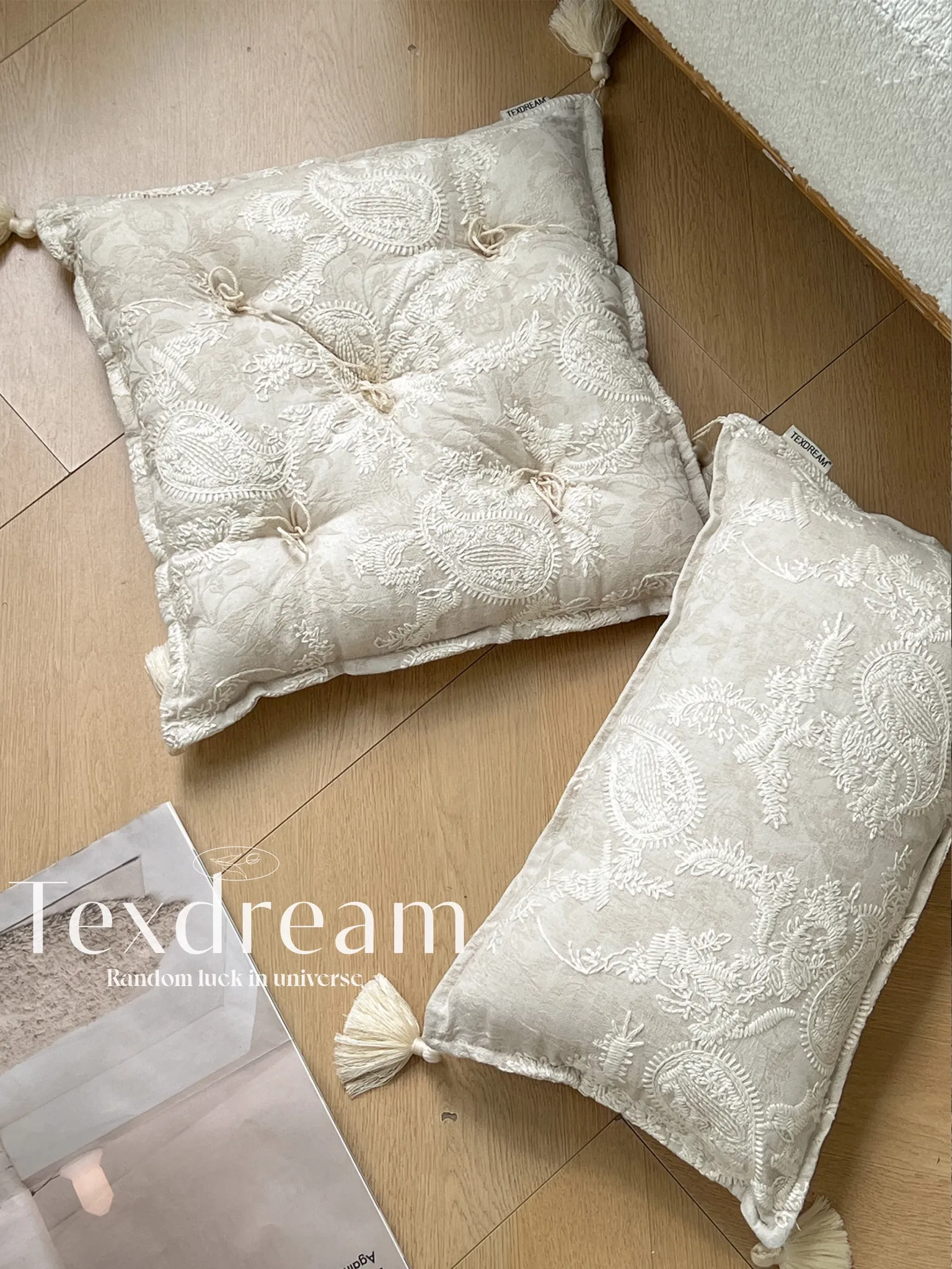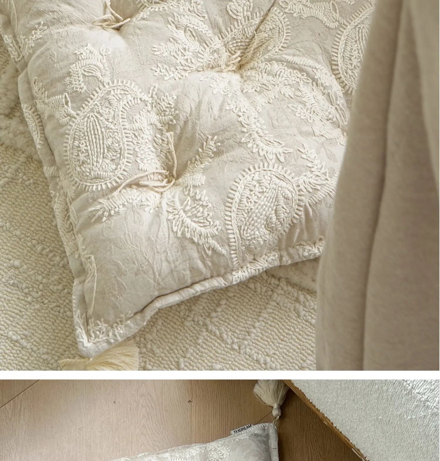 Texdreamのスタイル フランス刺繍の多機能ラグクッション 高級感漂う窓辺や畳にも最適な厚手チェアパッド
