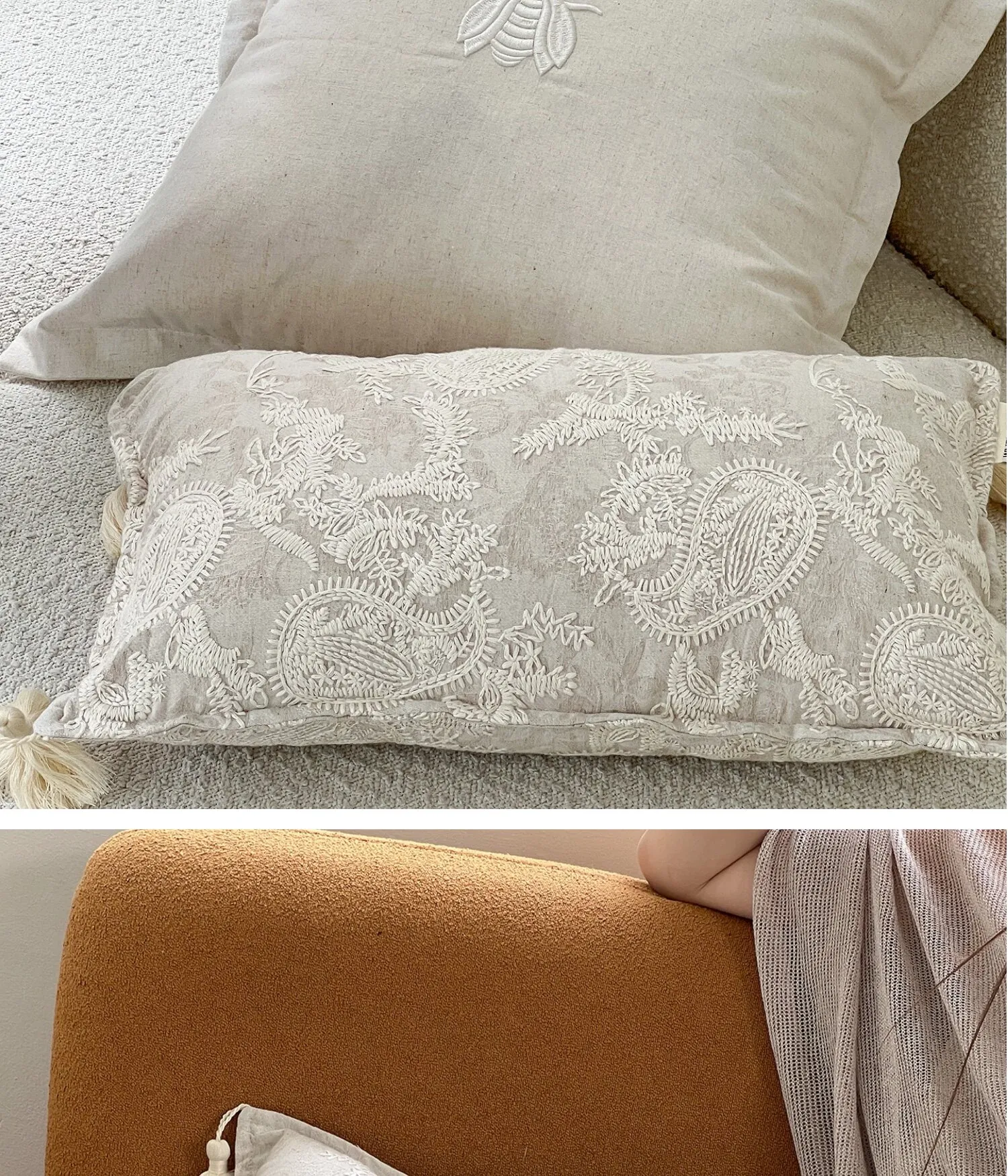 【花鏡 | フリンジ刺繍ウエストピロー】