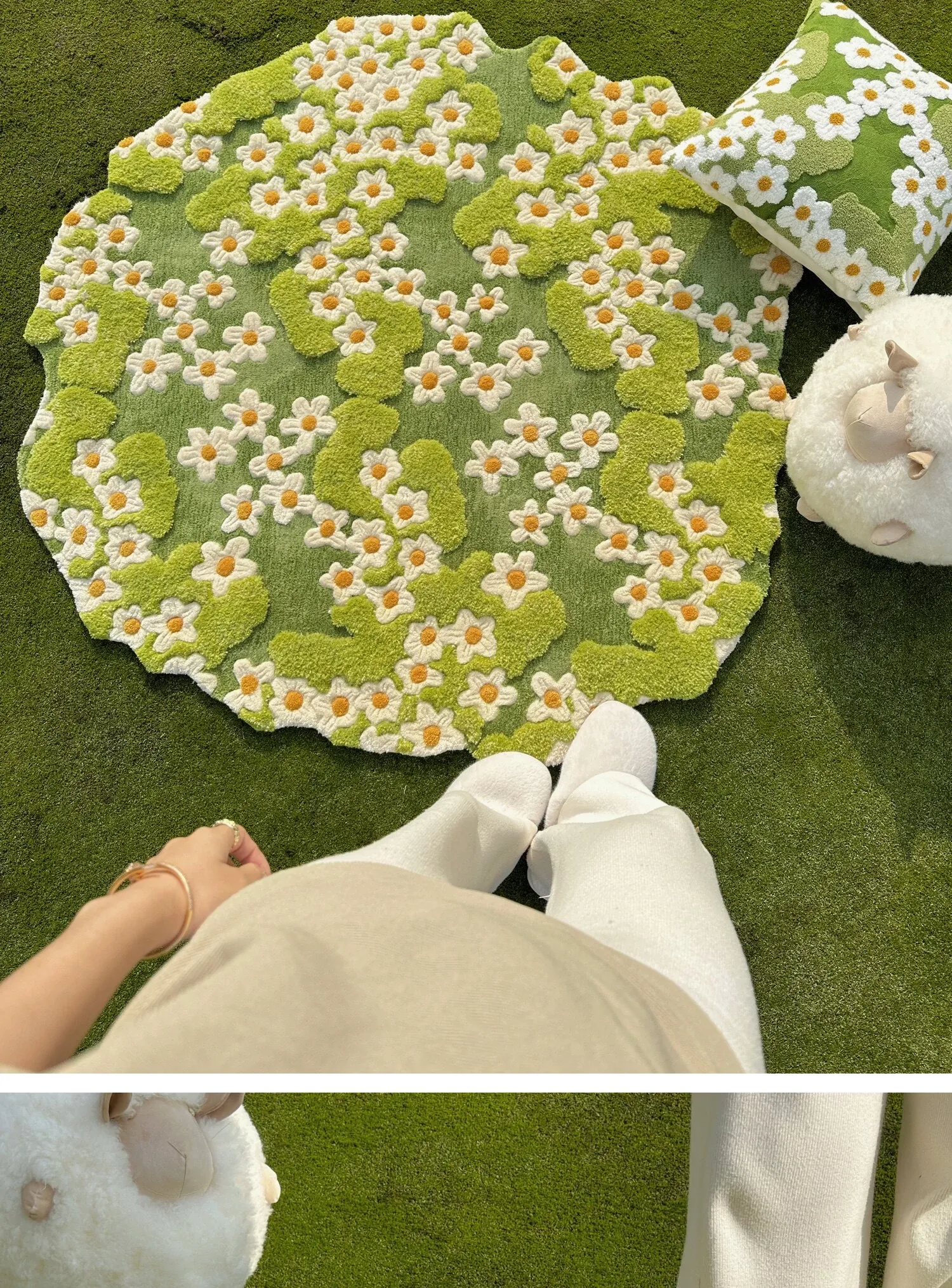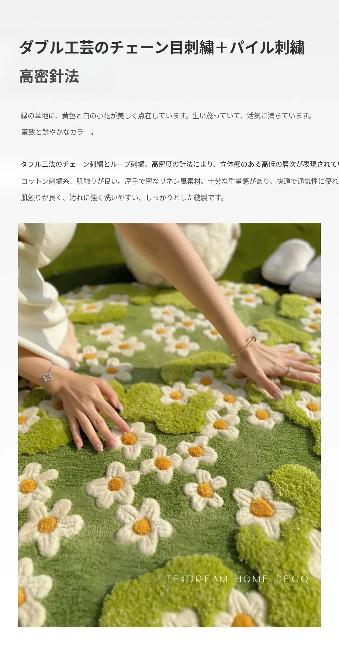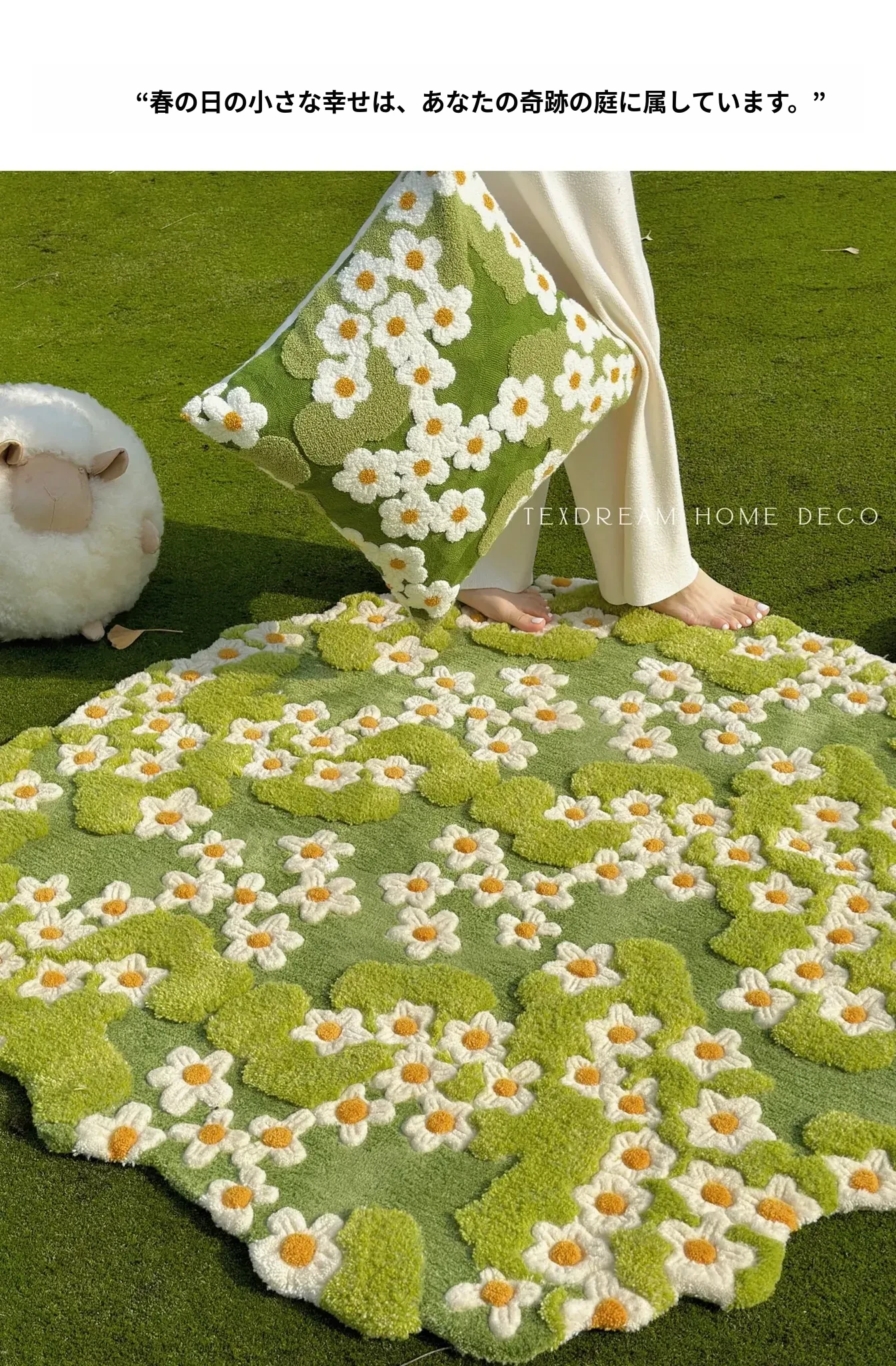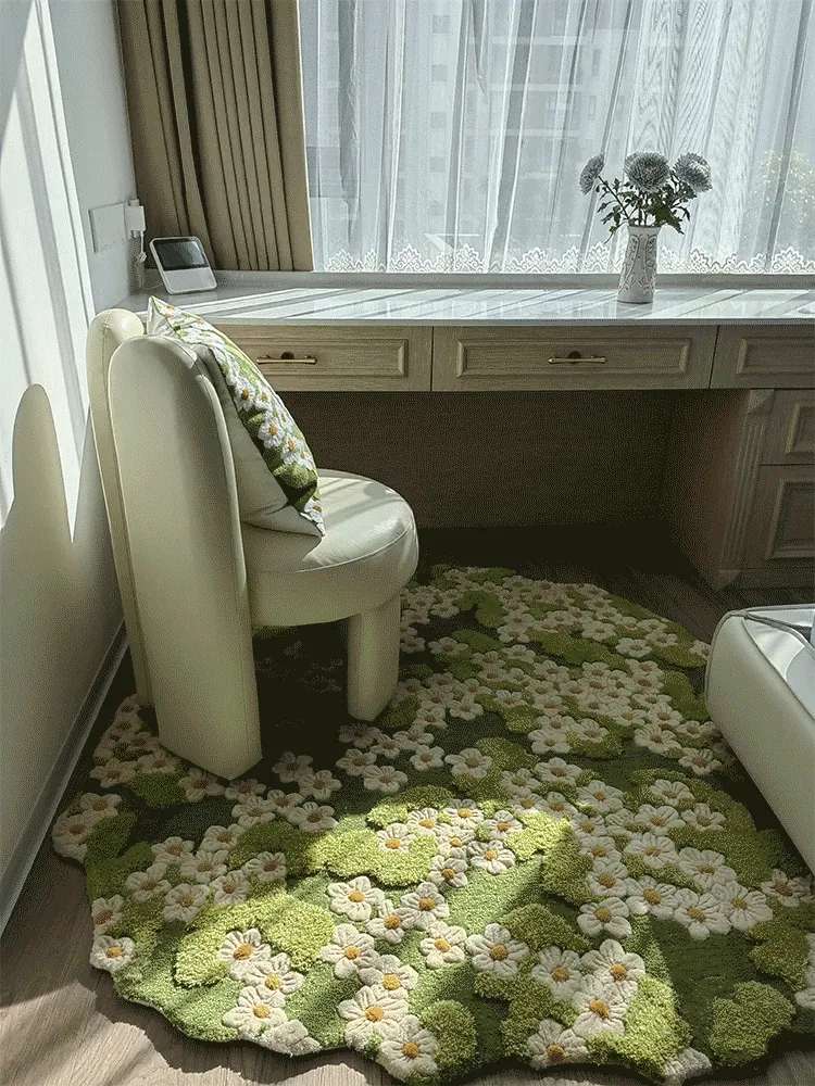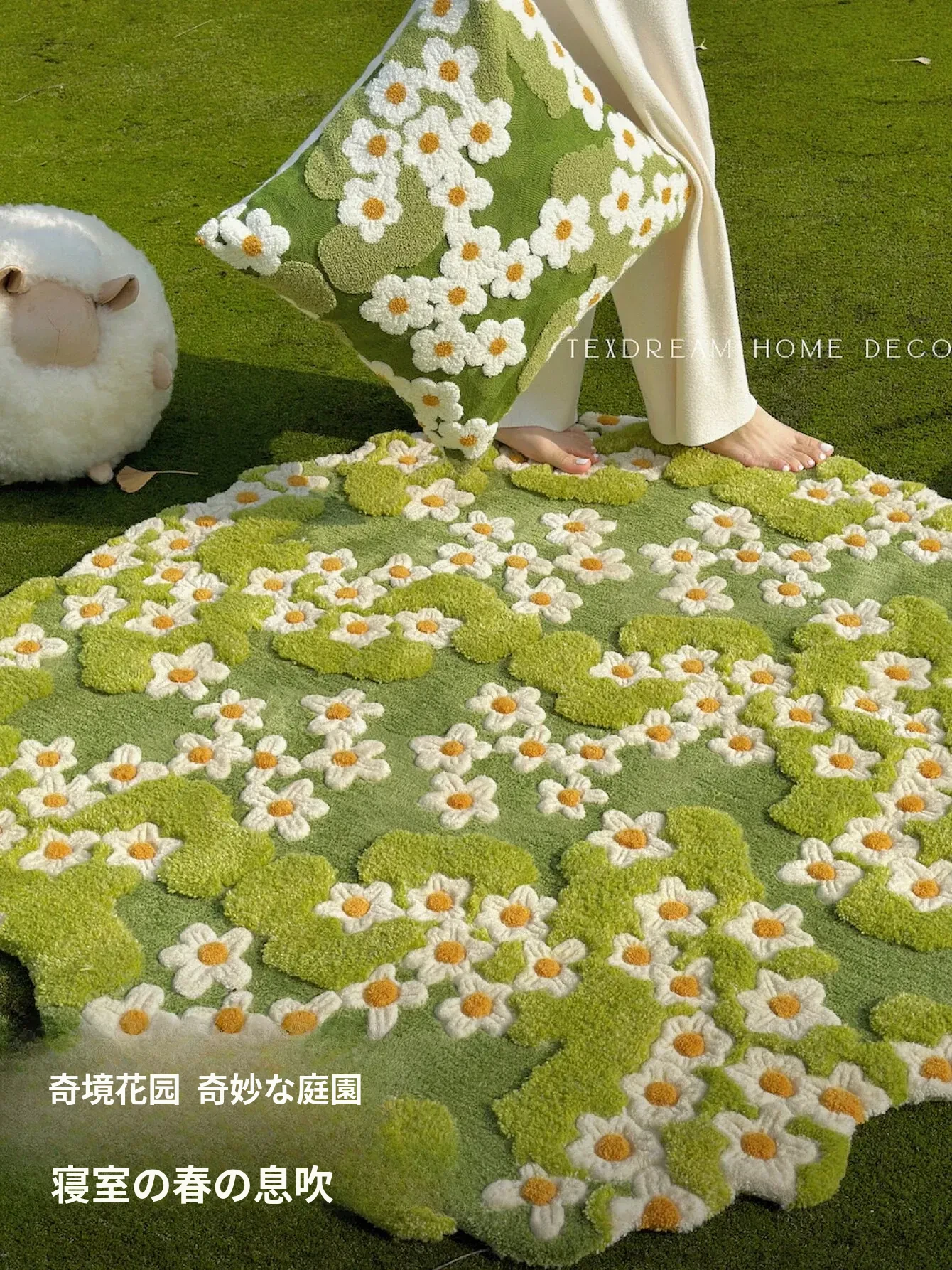 テックスドリームの奇境花園フレンチスタイル手作りウールラグ - アートで新鮮なソファクッションとティーテーブルマットで、あなたの空間を華やかに演出!