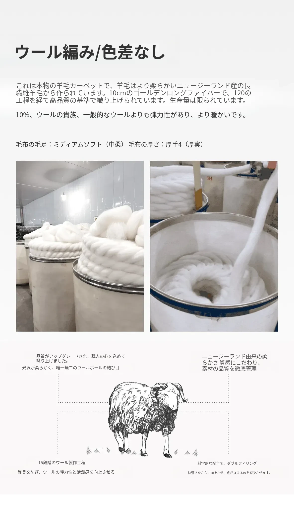 【カーペットカスタムサイズ1190 / 平方メートル】輸入ウール