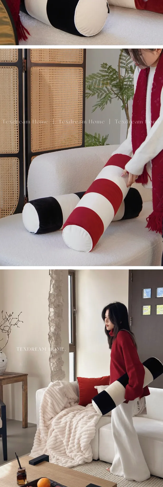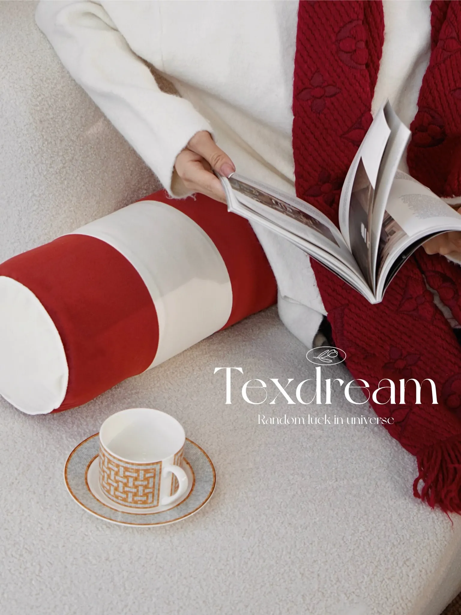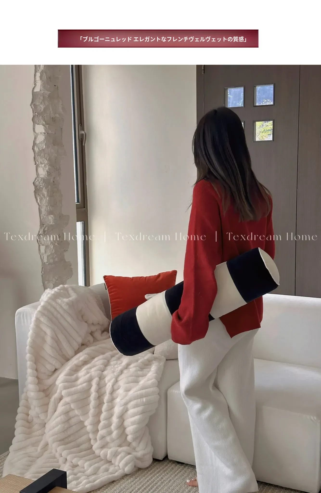 Texdream フランス風レッドベルベット円柱クッション - オフィスやソファにぴったり!快適な腰サポートとスタイリッシュなデザインで、新年のインテリアを華やかに演出します。