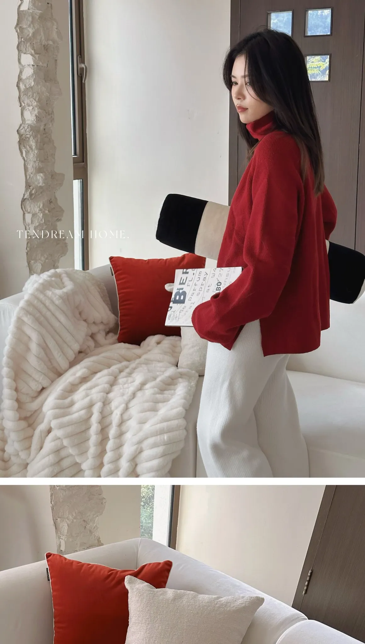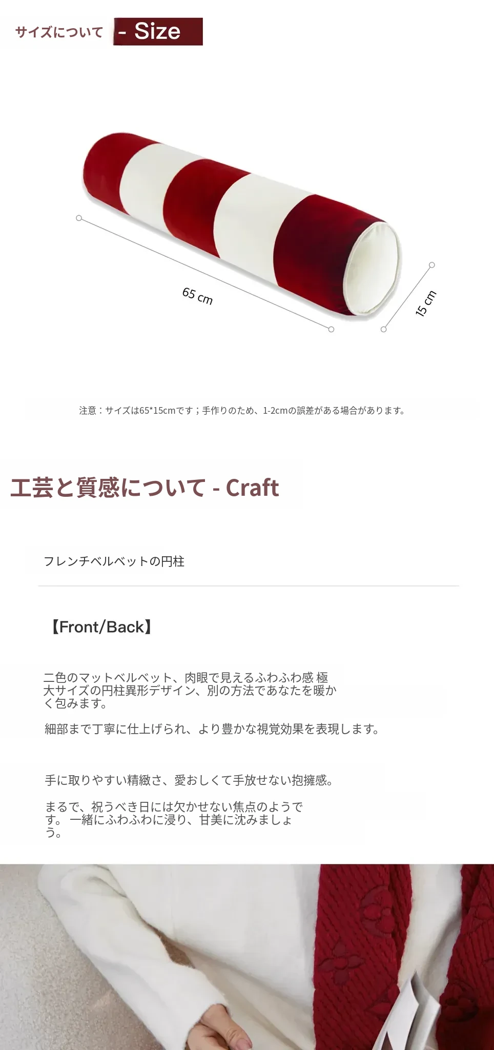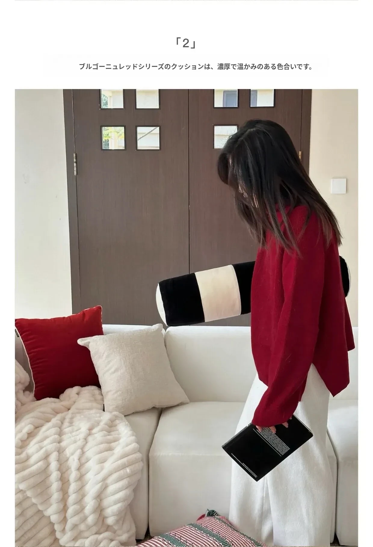 Texdream フランス風レッドベルベット円柱クッション - オフィスやソファにぴったり!快適な腰サポートとスタイリッシュなデザインで、新年のインテリアを華やかに演出します。