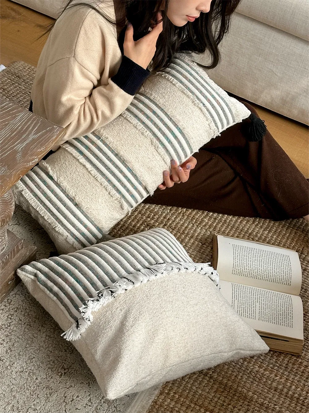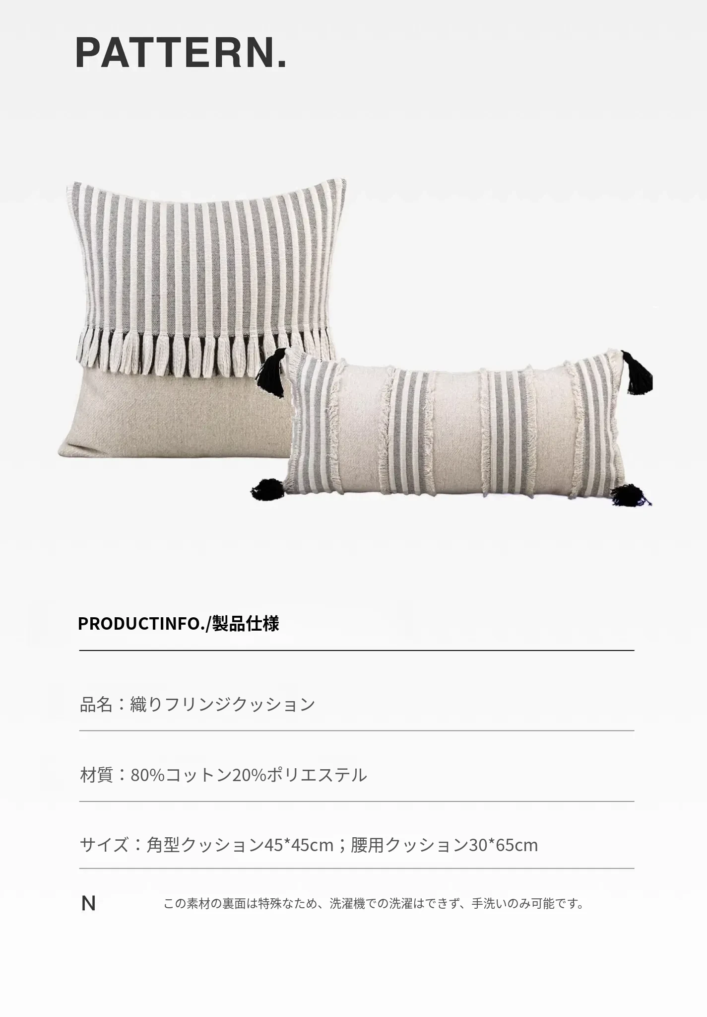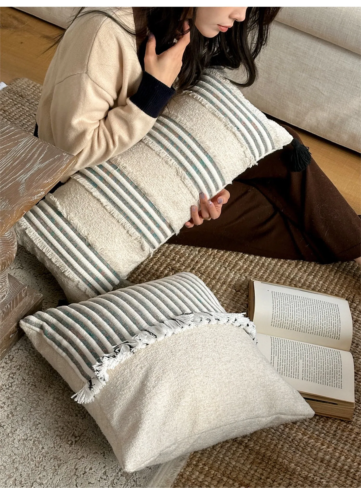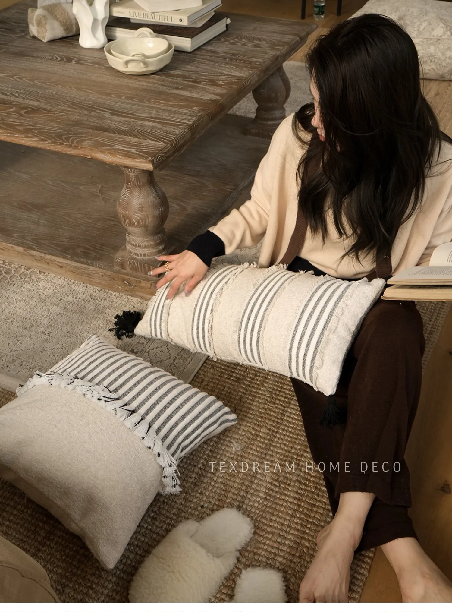 Texdreamのエレガントなフレンチビンテージ編み込みフリンジクッションカバー - 侘び寂びの美学を取り入れた高級リビングソファ用腰枕カバーで、あなたのインテリアを格上げ!