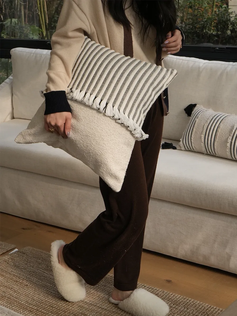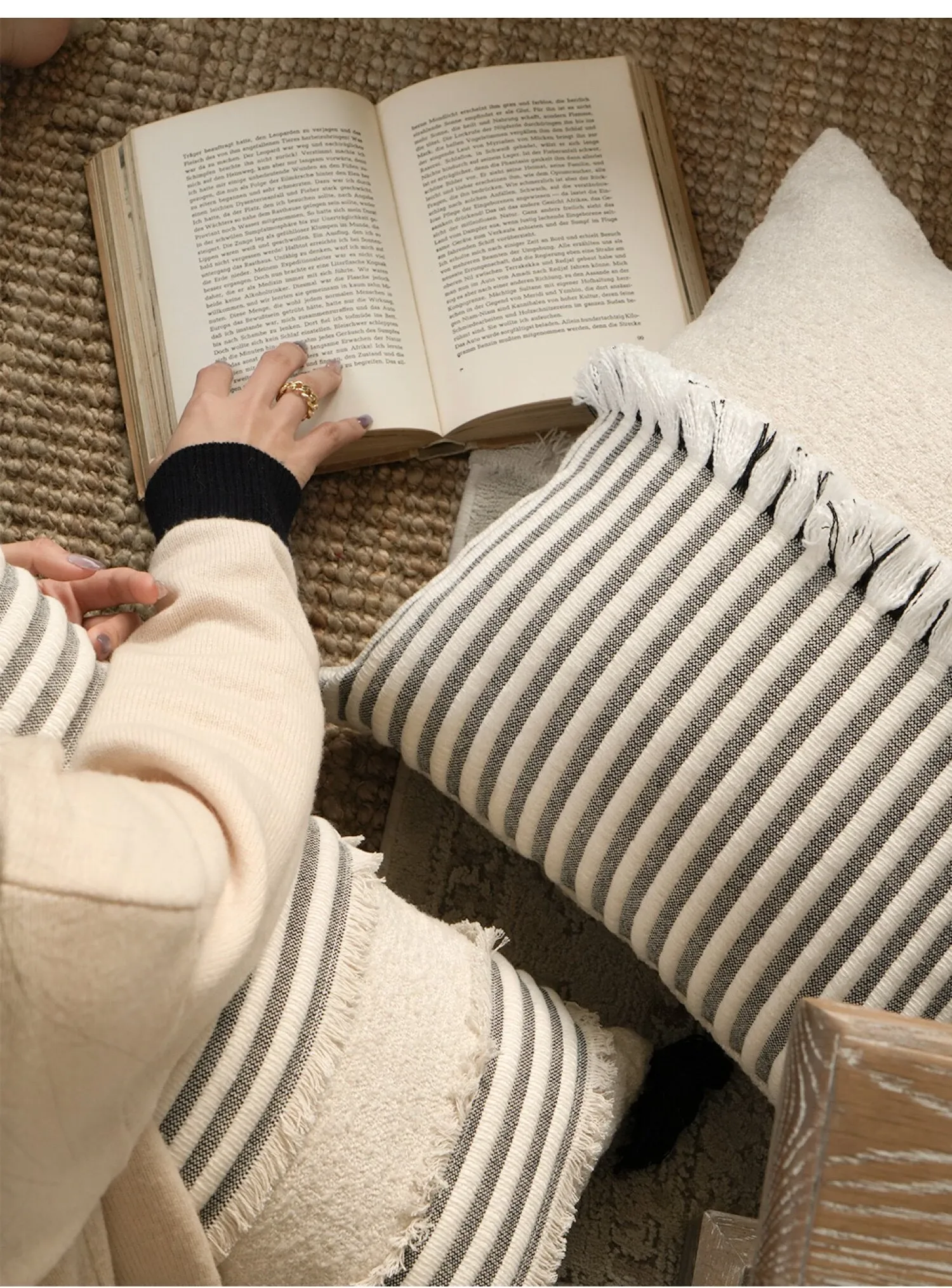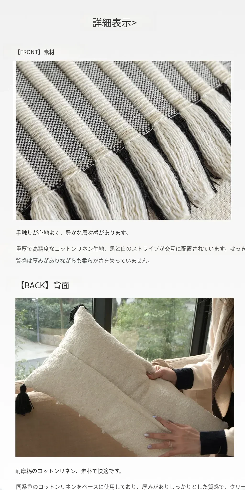 Texdreamのエレガントなフレンチビンテージ編み込みフリンジクッションカバー - 侘び寂びの美学を取り入れた高級リビングソファ用腰枕カバーで、あなたのインテリアを格上げ!