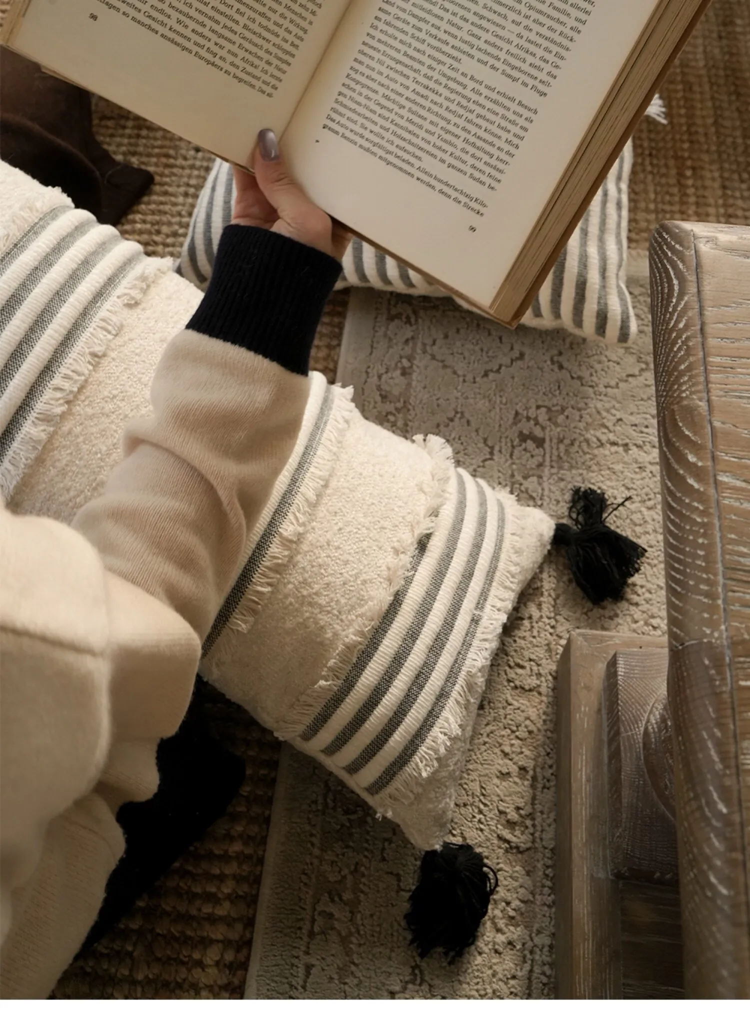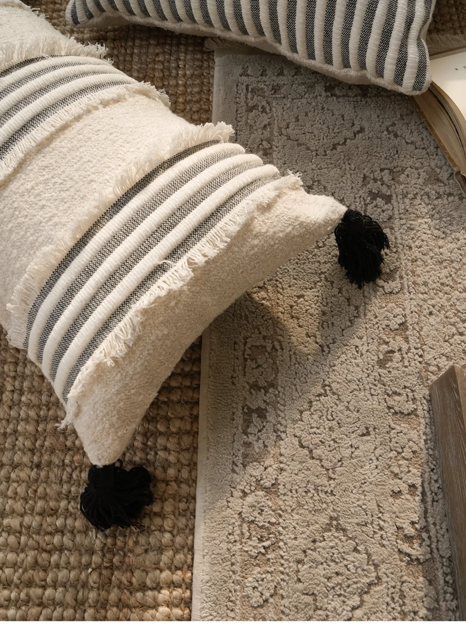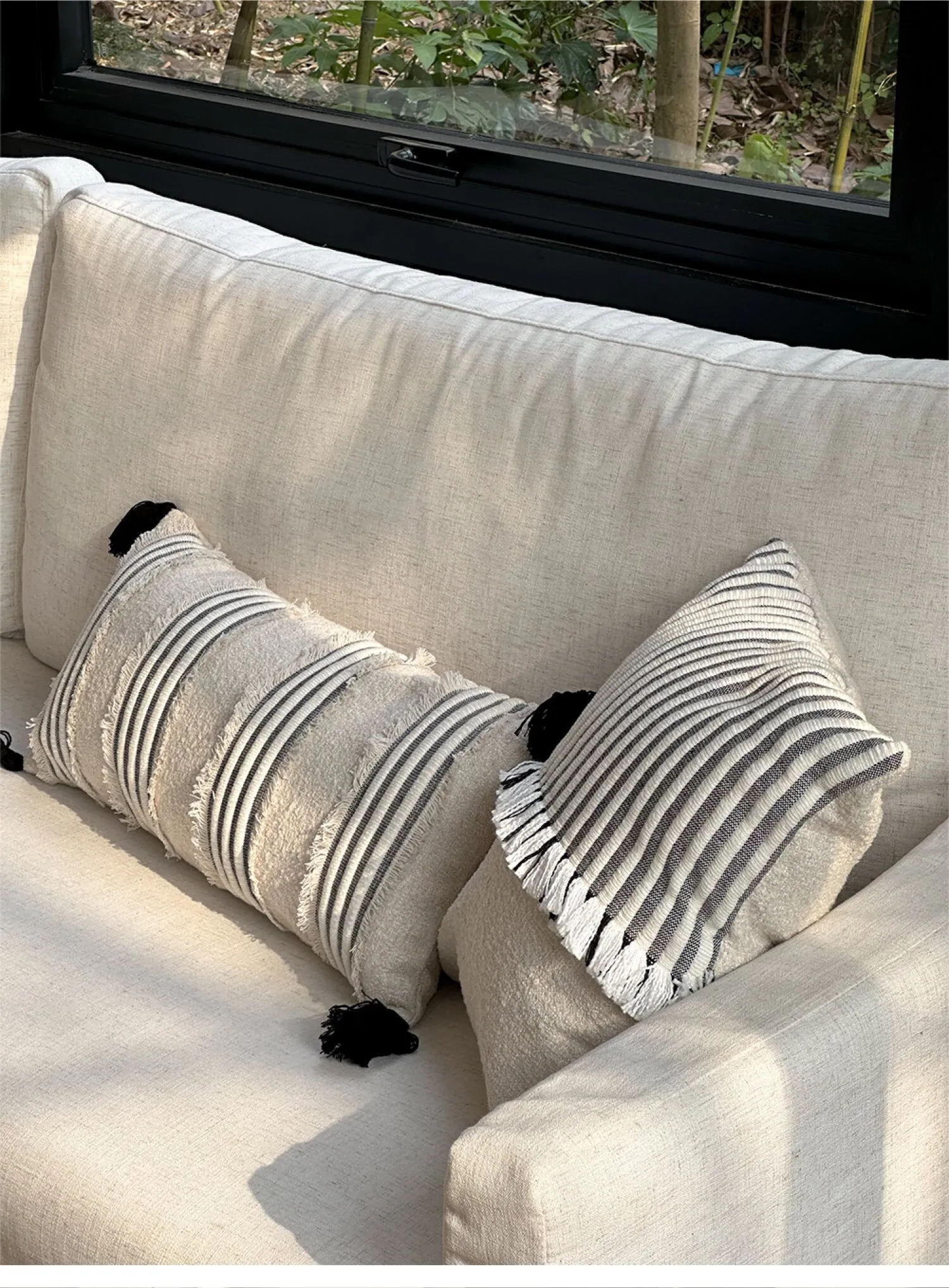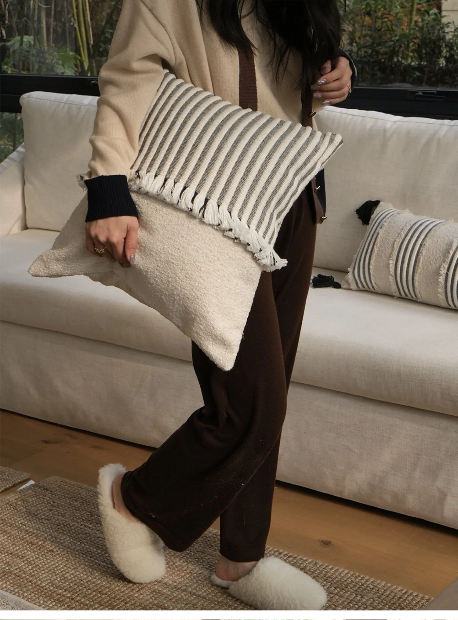Texdreamのエレガントなフレンチビンテージ編み込みフリンジクッションカバー - 侘び寂びの美学を取り入れた高級リビングソファ用腰枕カバーで、あなたのインテリアを格上げ!