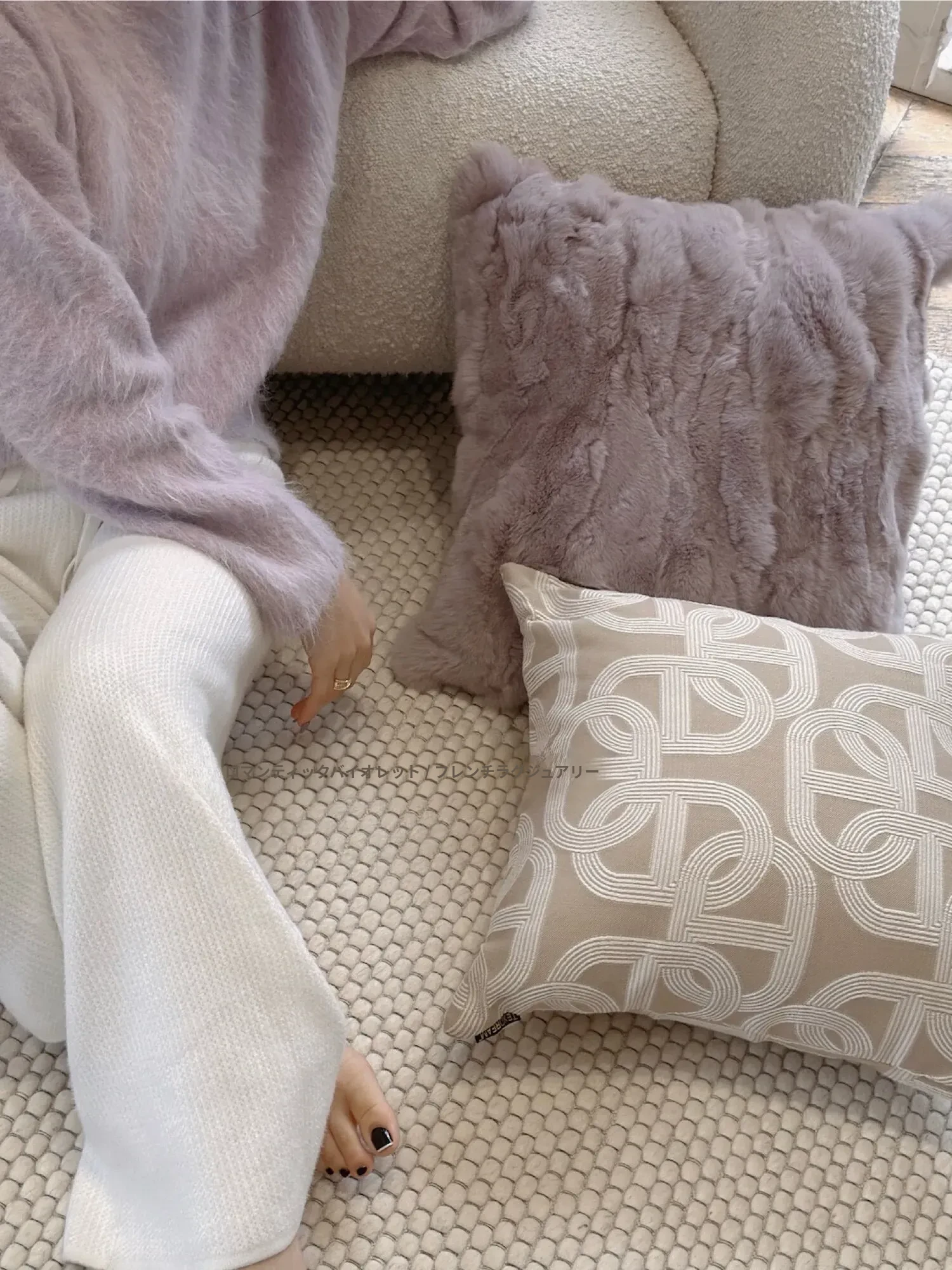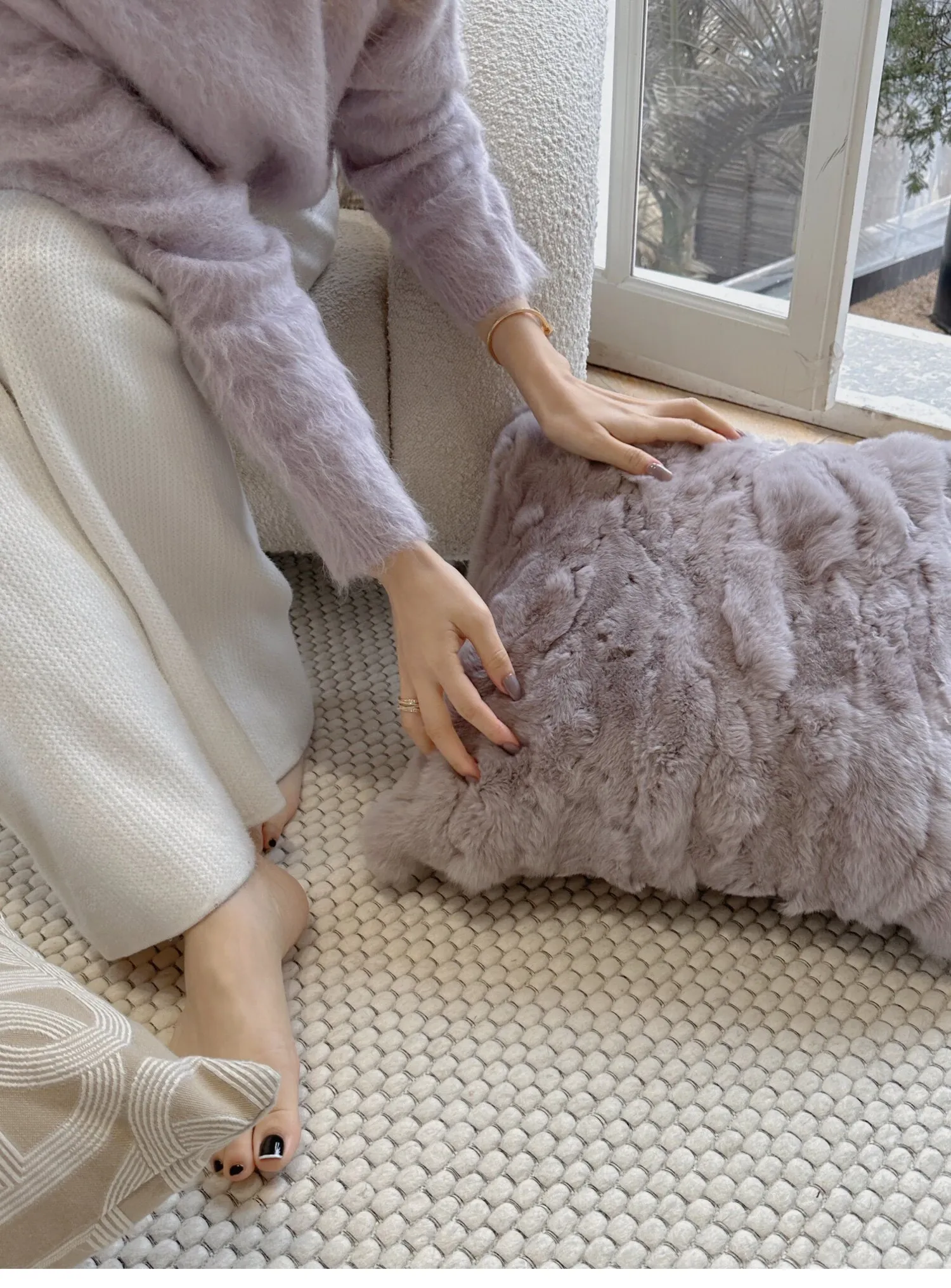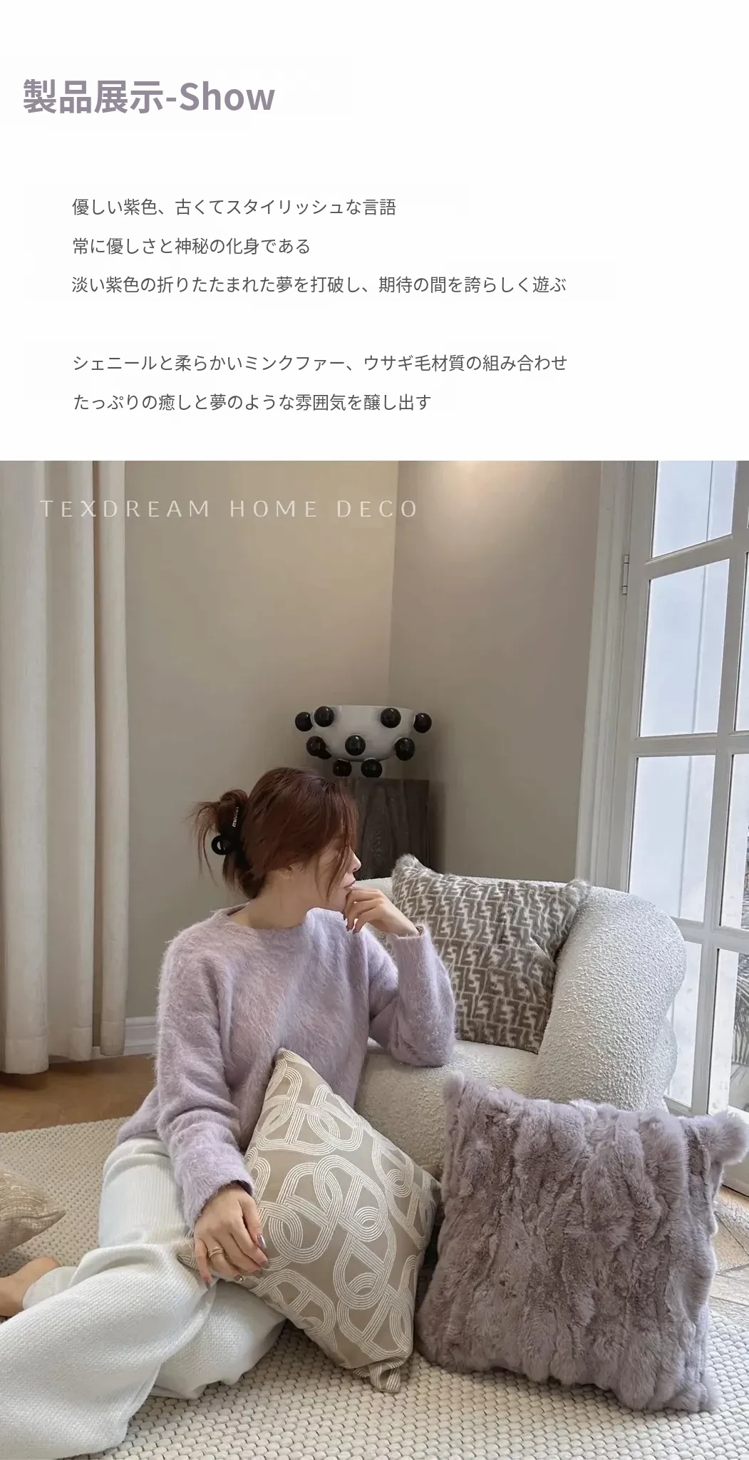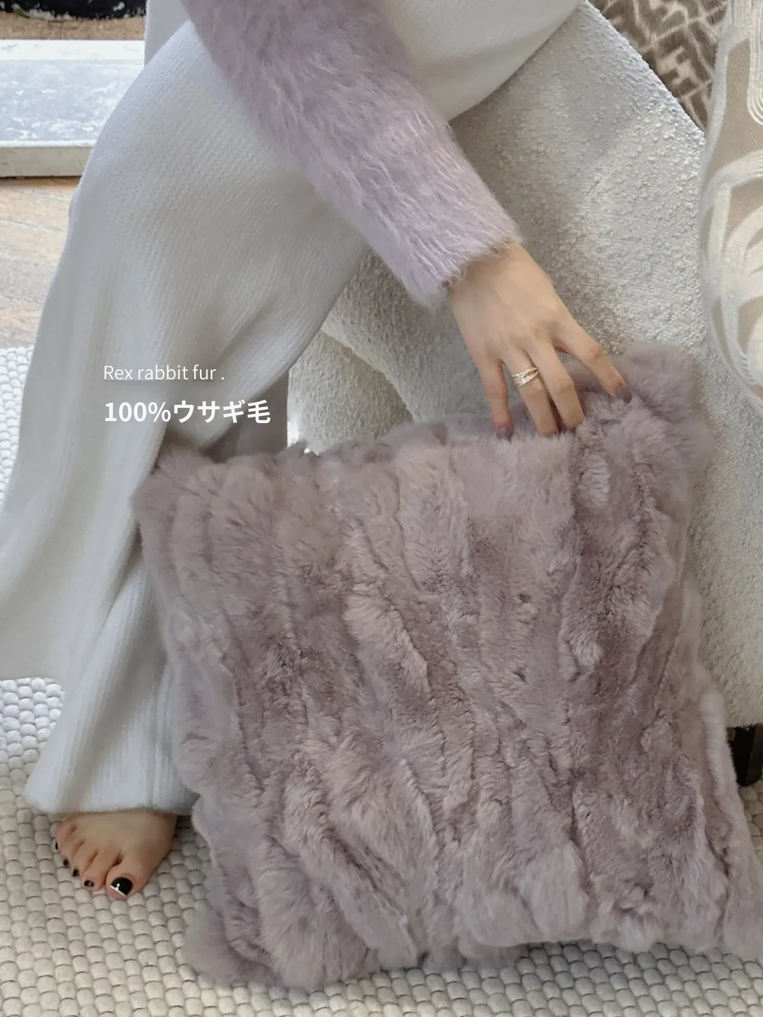 Texdreamのフレンチバイオレット 軽やかなラグジュアリー ファー クッション - 本物のウサギ毛使用、リビングソファにぴったりの上質な抱き枕カバー!