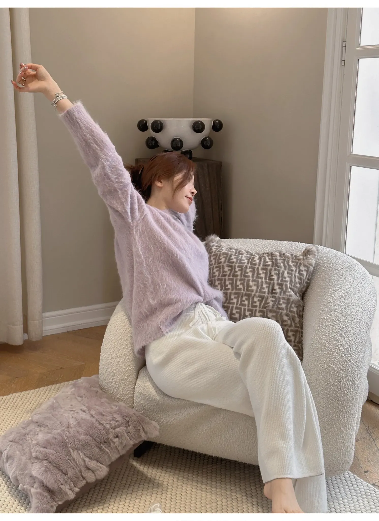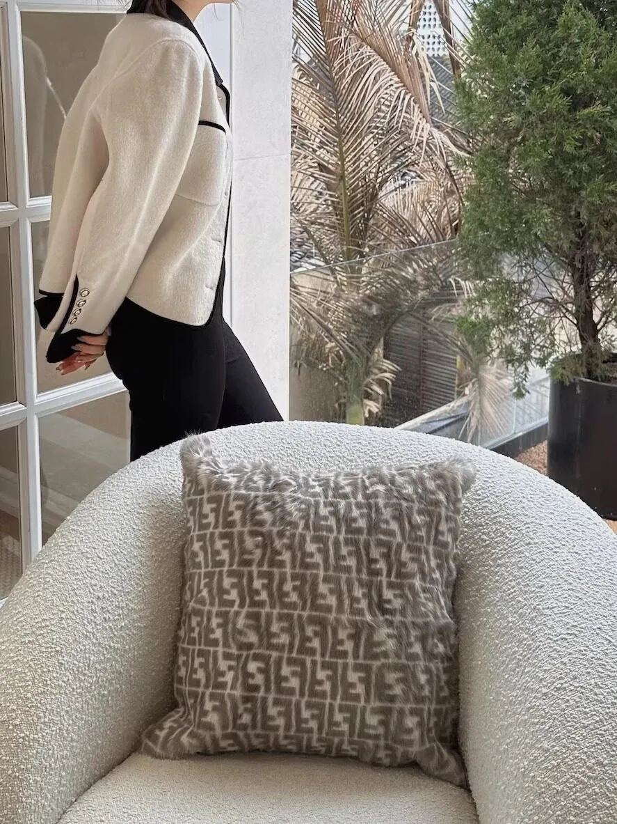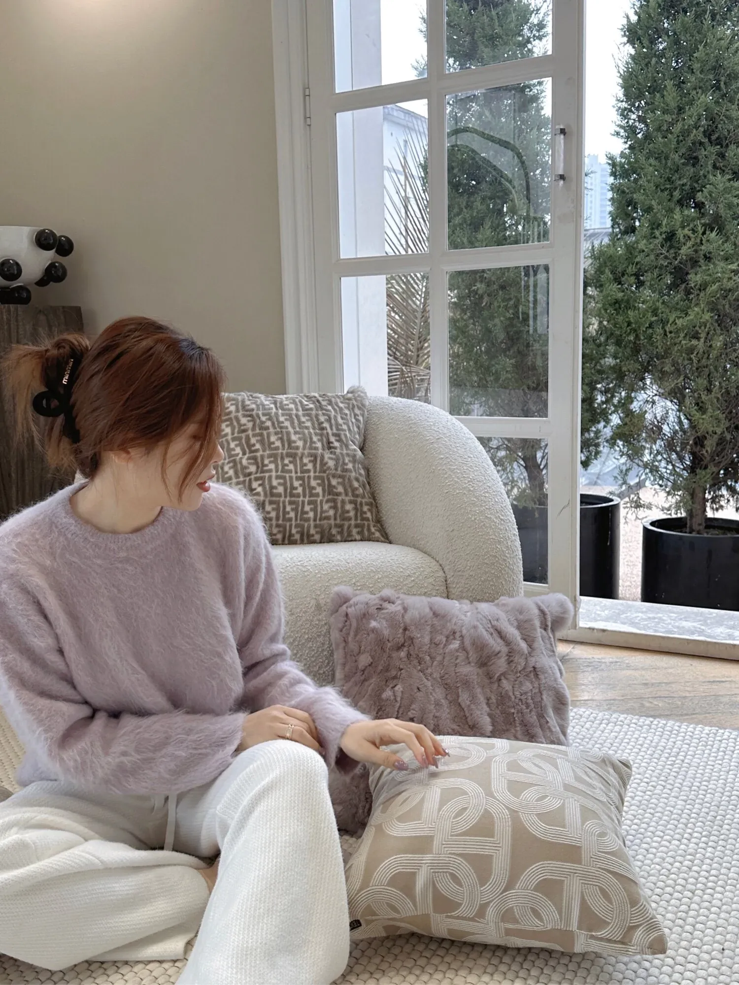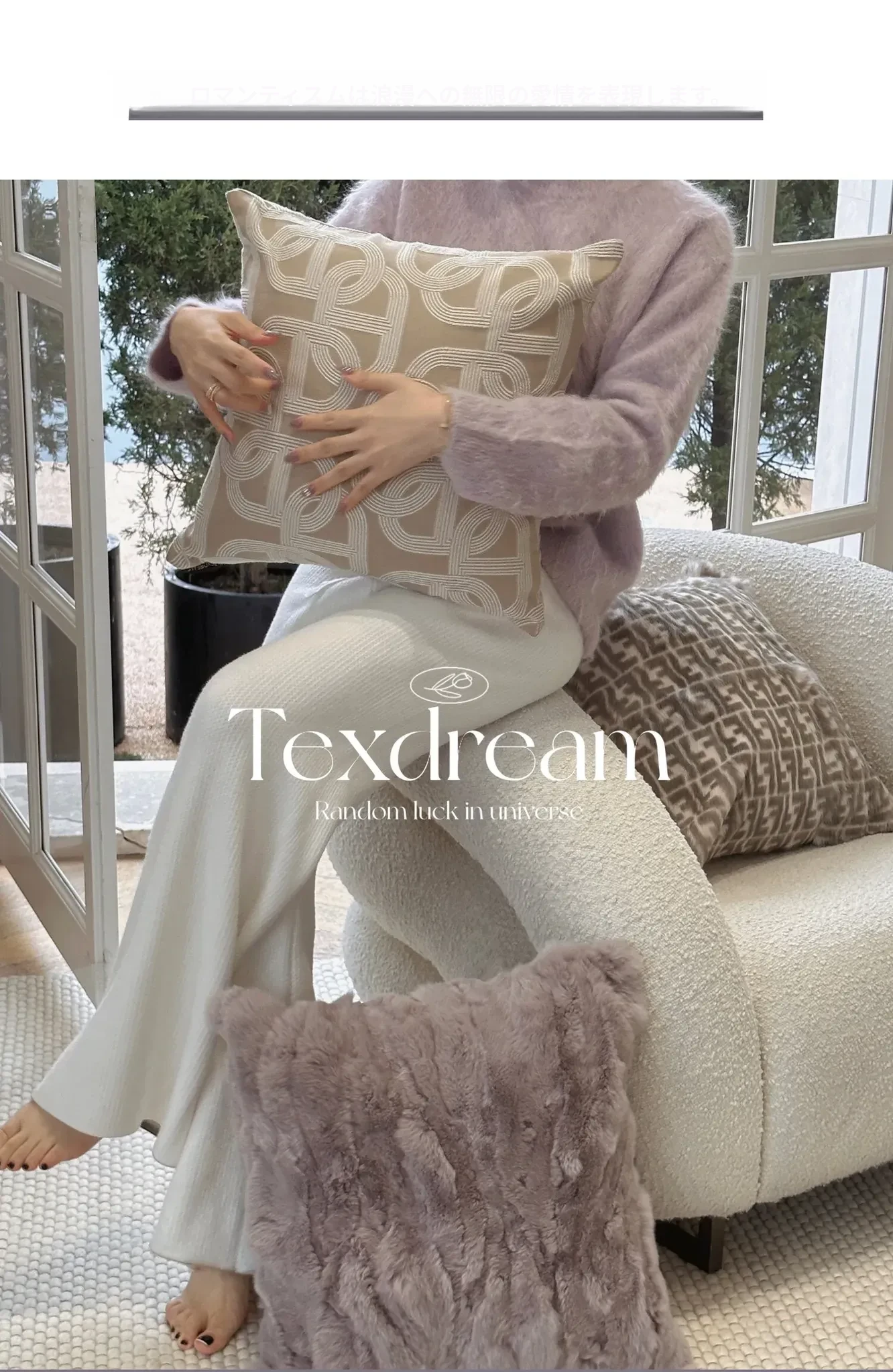 Texdreamのフレンチバイオレット 軽やかなラグジュアリー ファー クッション - 本物のウサギ毛使用、リビングソファにぴったりの上質な抱き枕カバー!