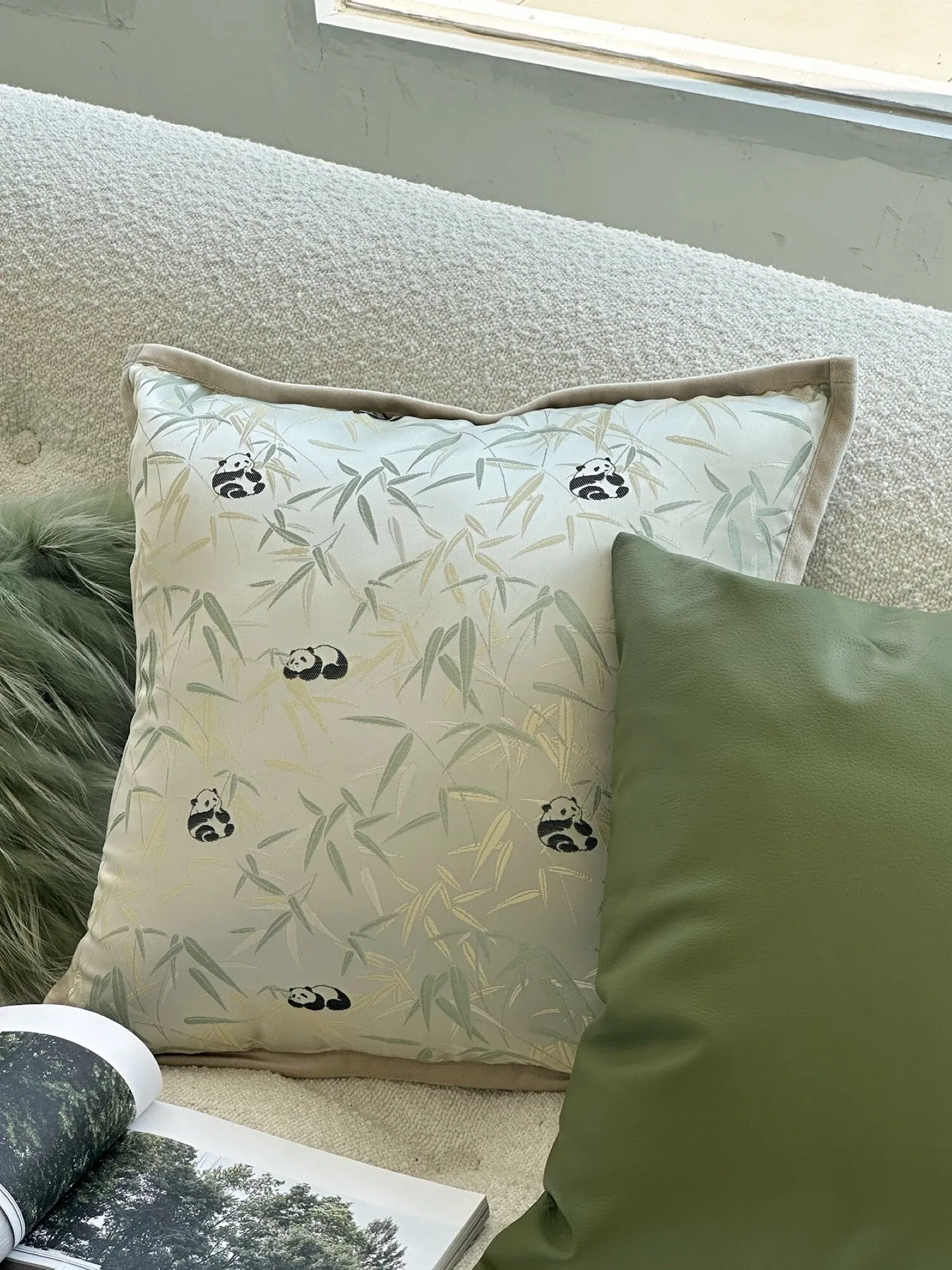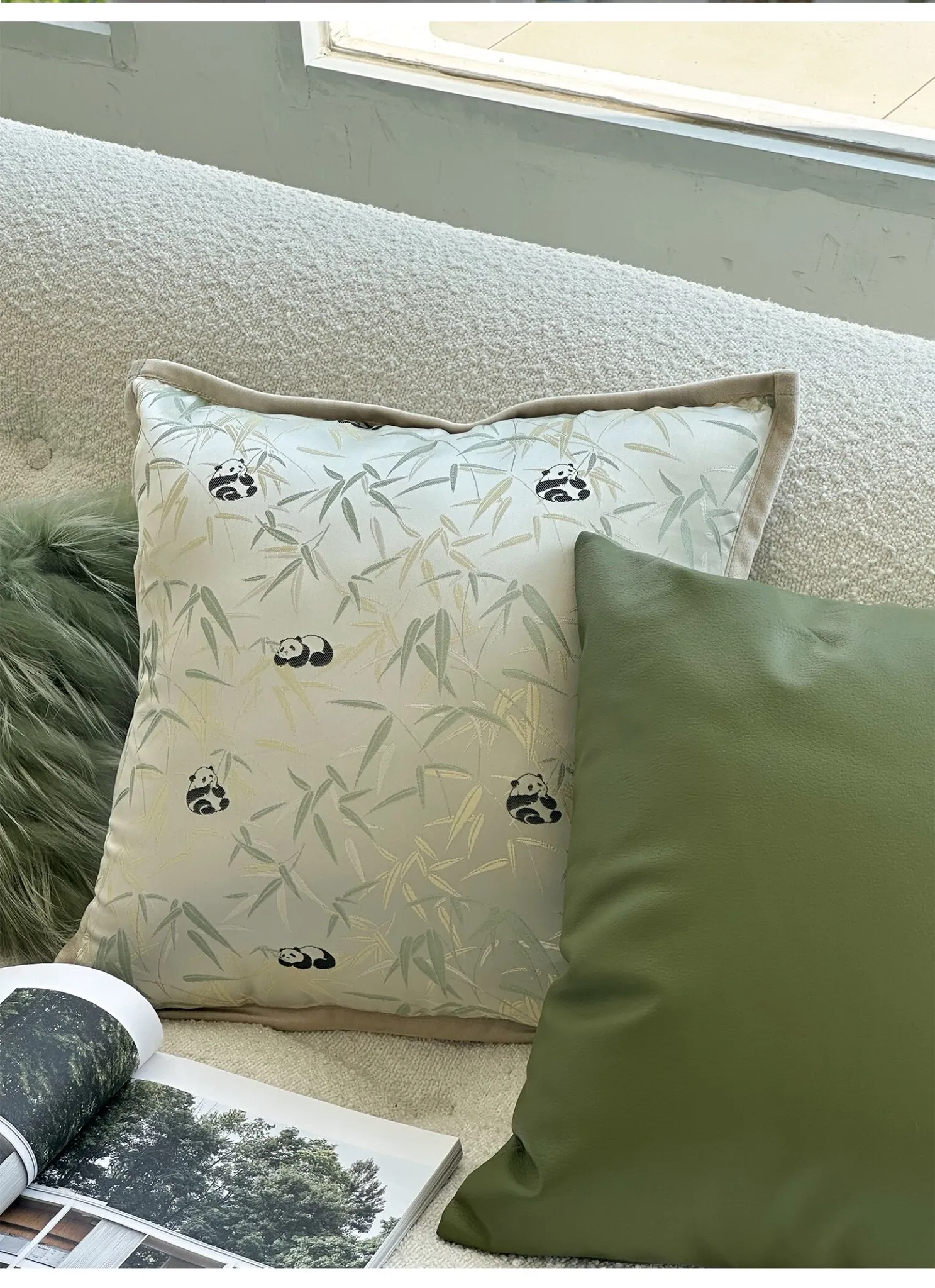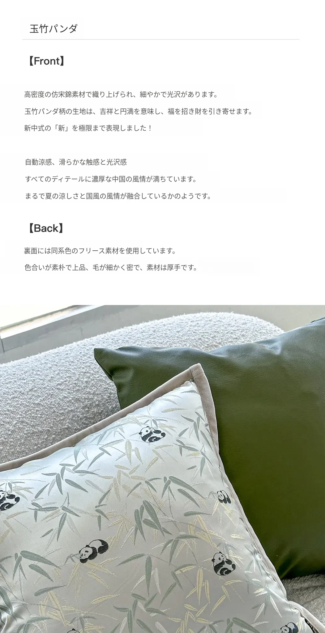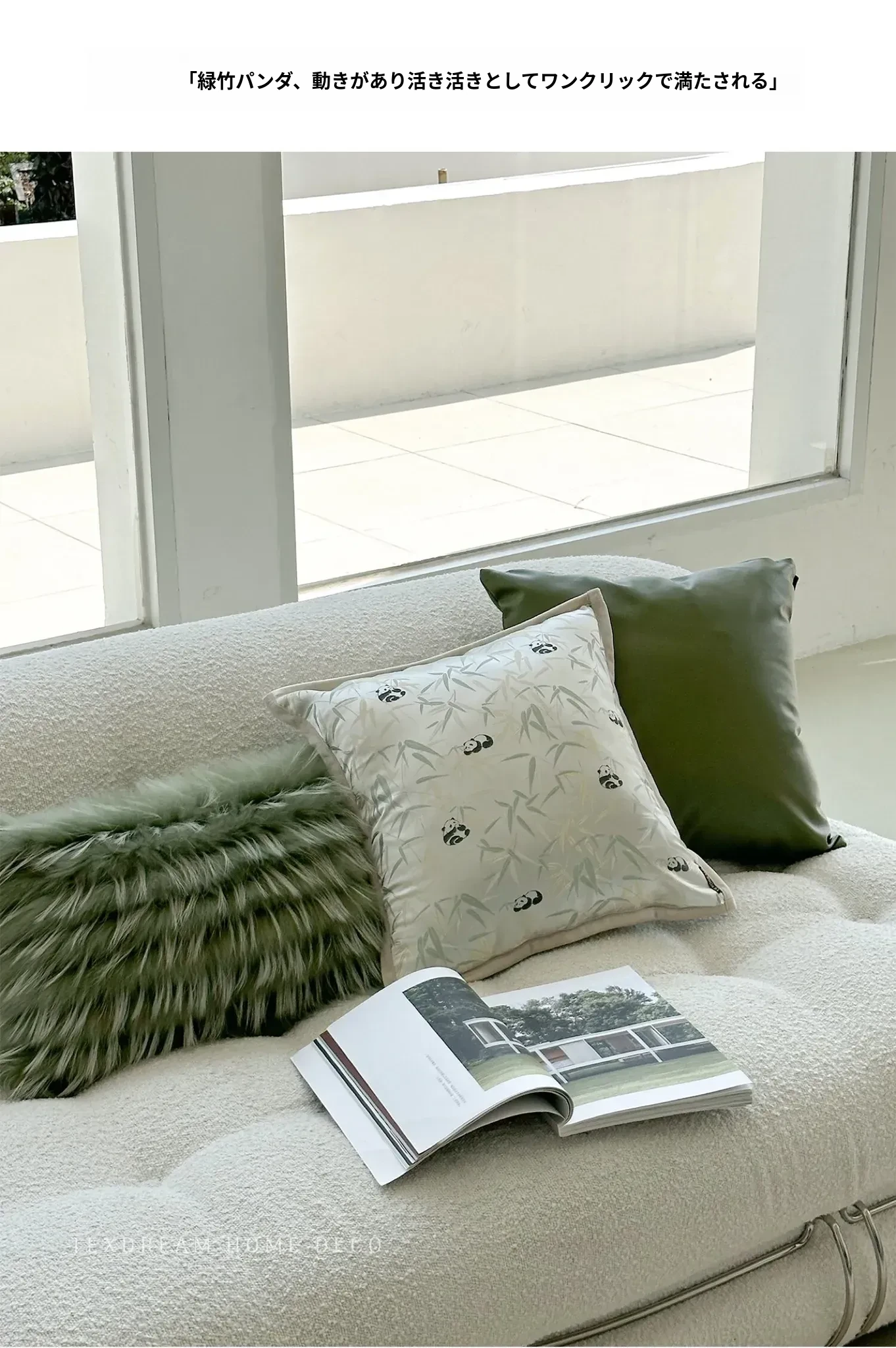 TEXDREAMのスタイル 緑の竹とパンダの刺繍ソファクッションカバー 新中式禅の雰囲気を演出するグリーンのヘッドボードクッションカバー
