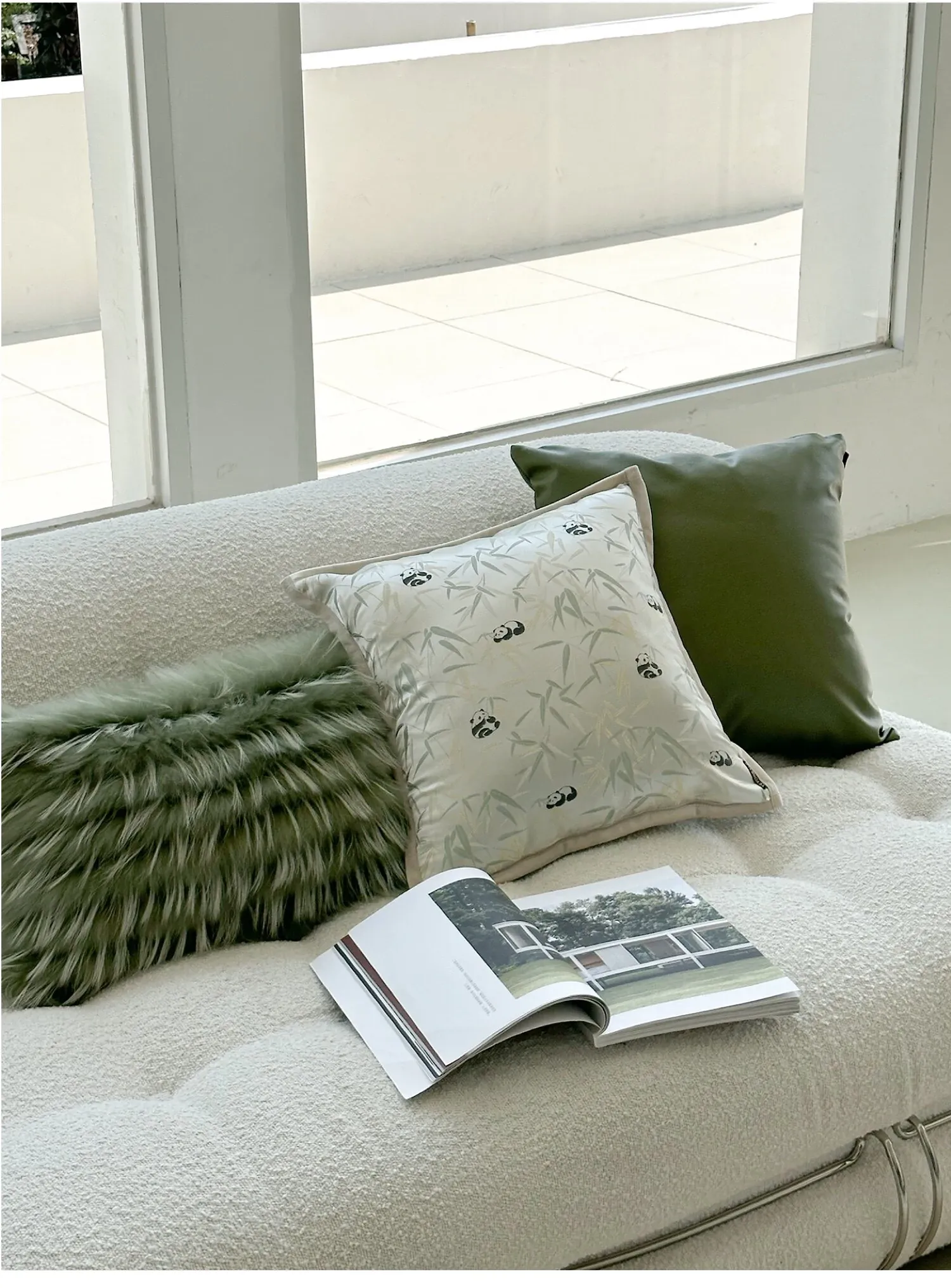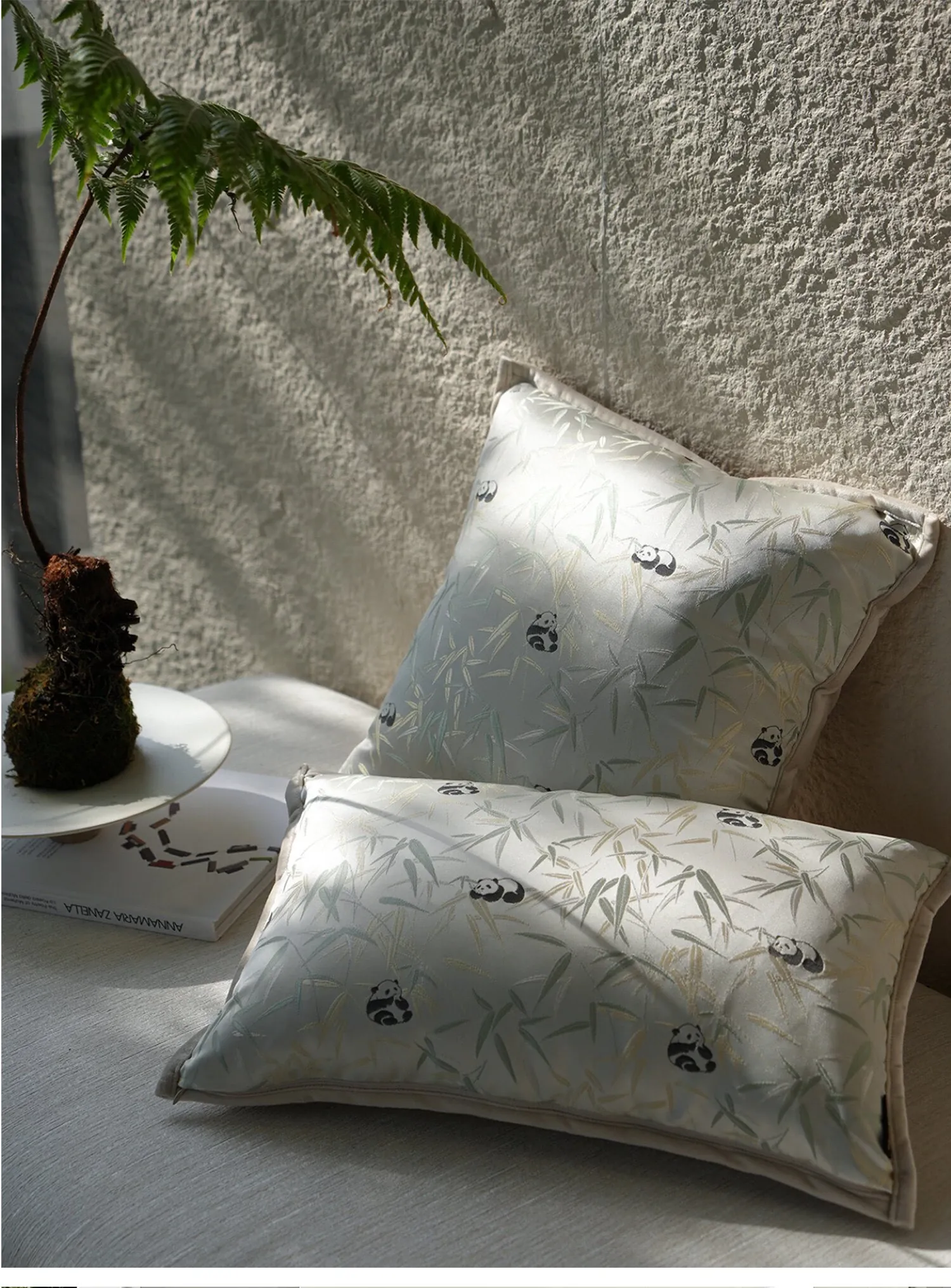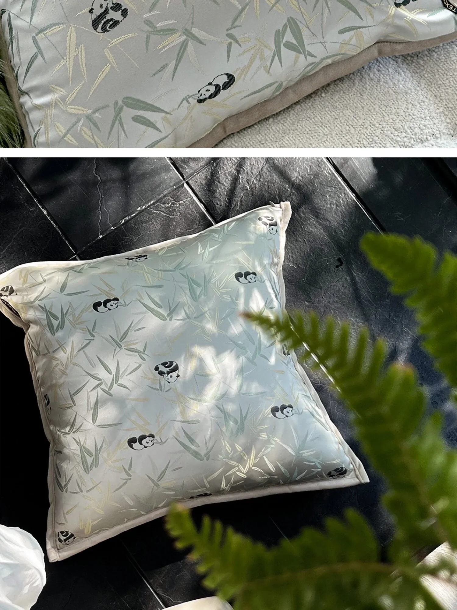 TEXDREAMのスタイル 緑の竹とパンダの刺繍ソファクッションカバー 新中式禅の雰囲気を演出するグリーンのヘッドボードクッションカバー