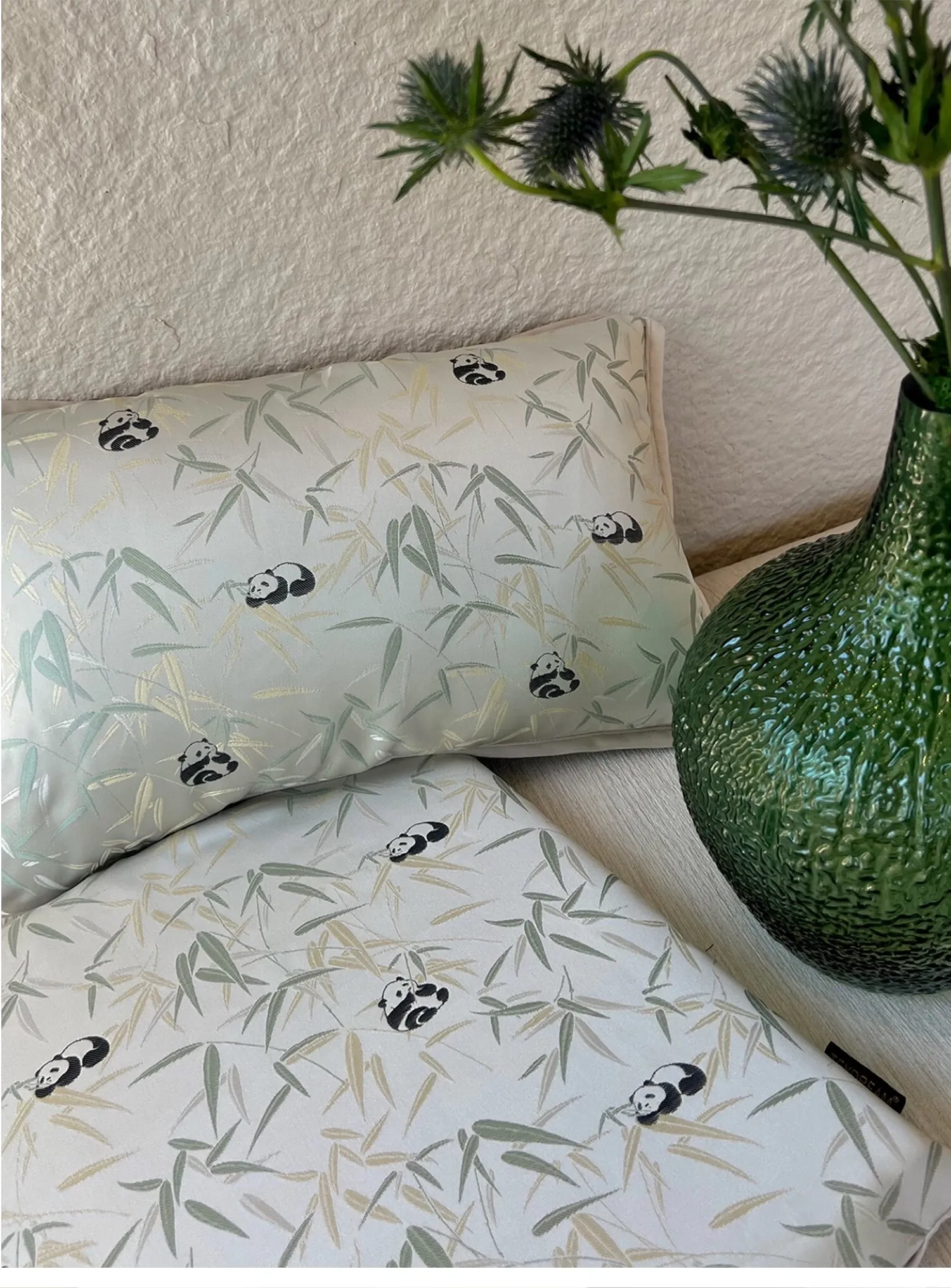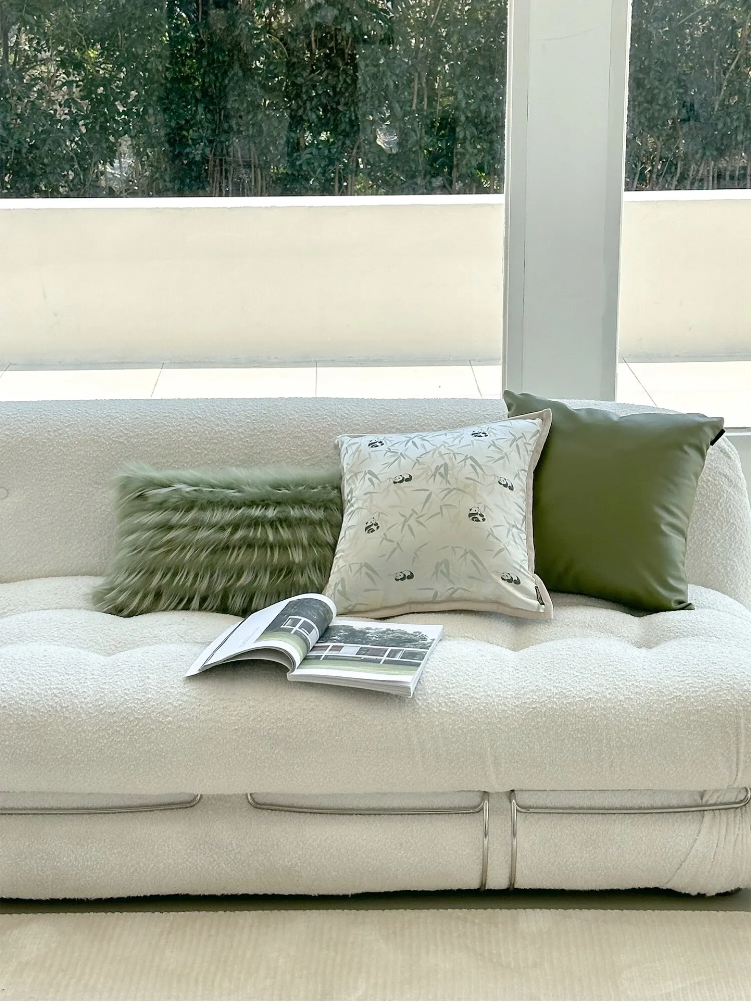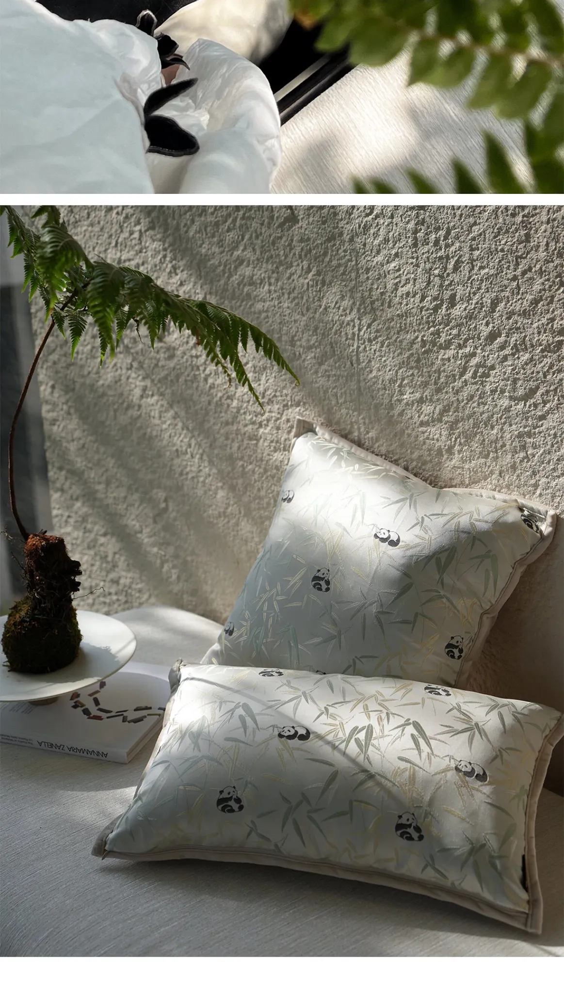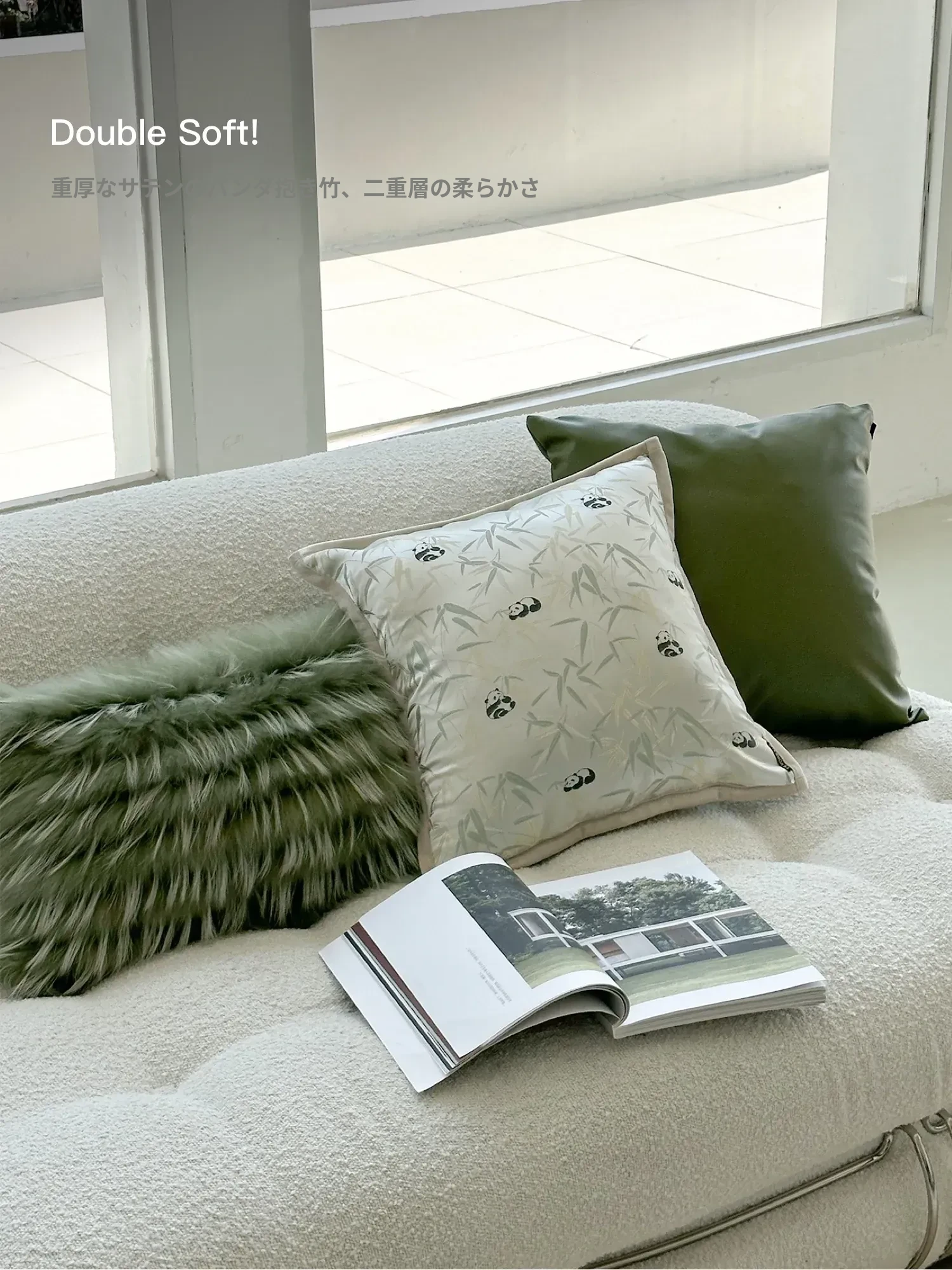 TEXDREAMのスタイル 緑の竹とパンダの刺繍ソファクッションカバー 新中式禅の雰囲気を演出するグリーンのヘッドボードクッションカバー