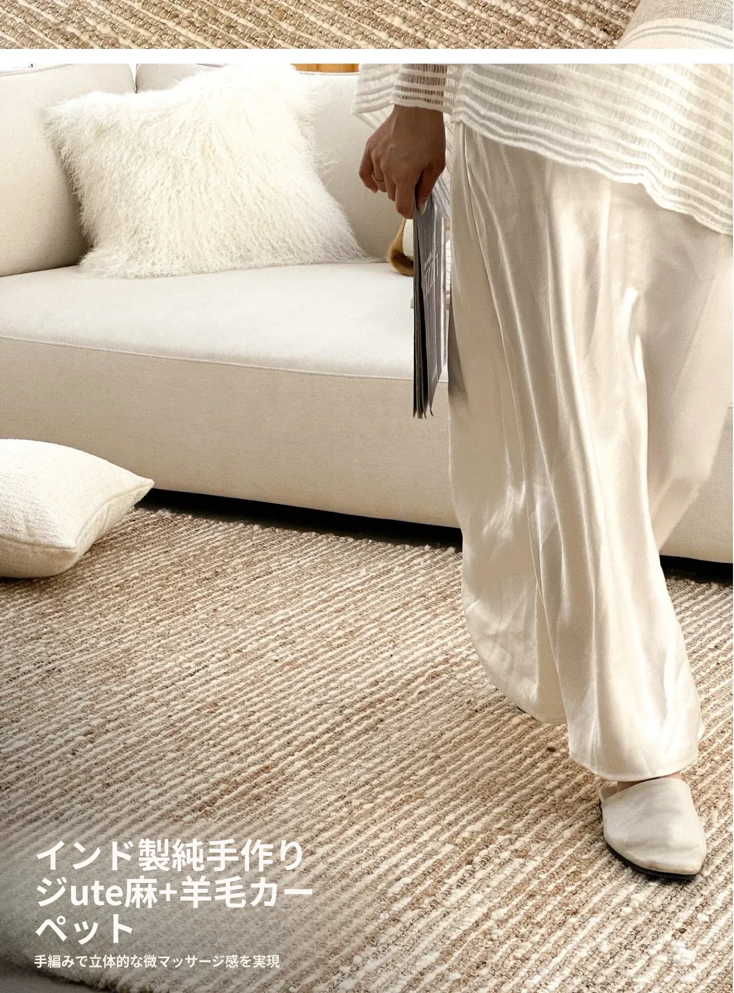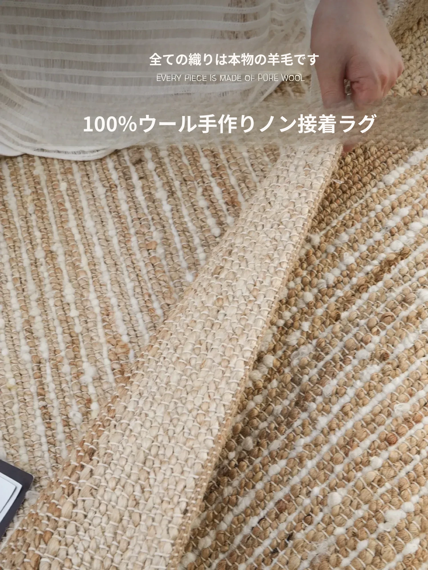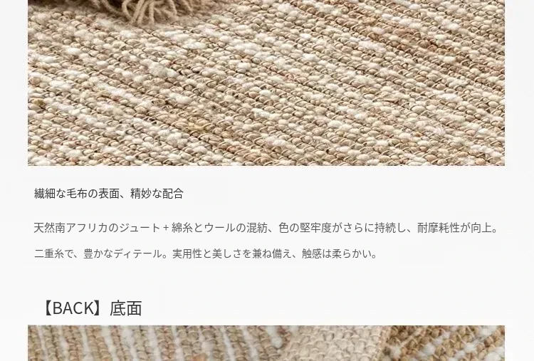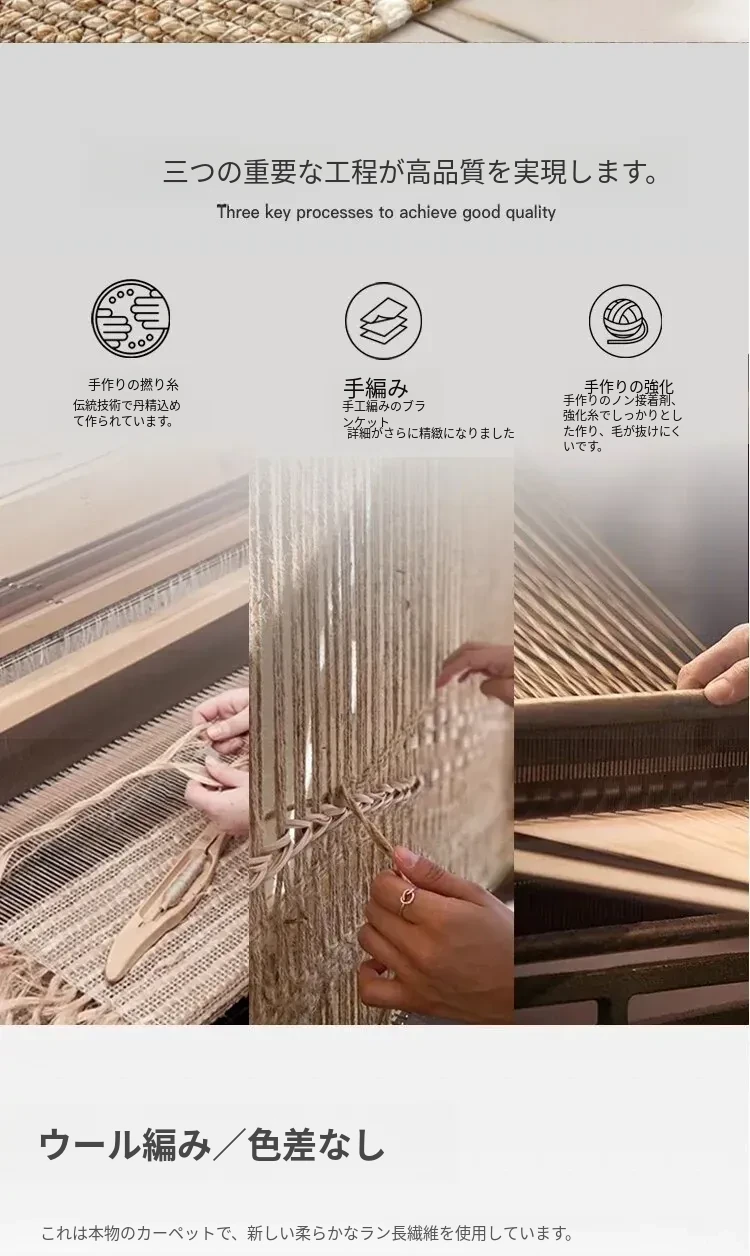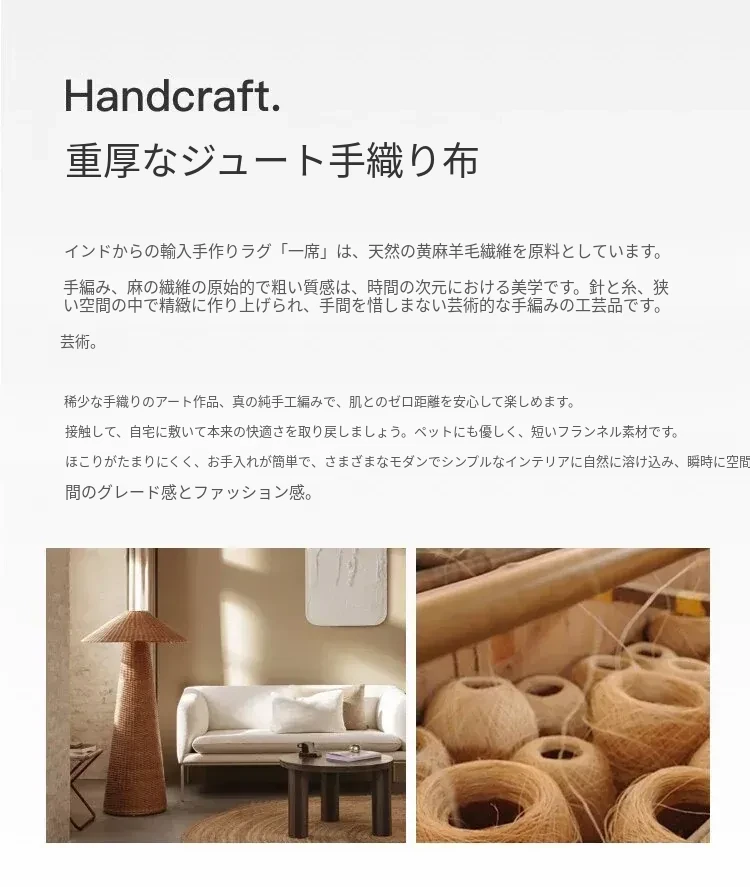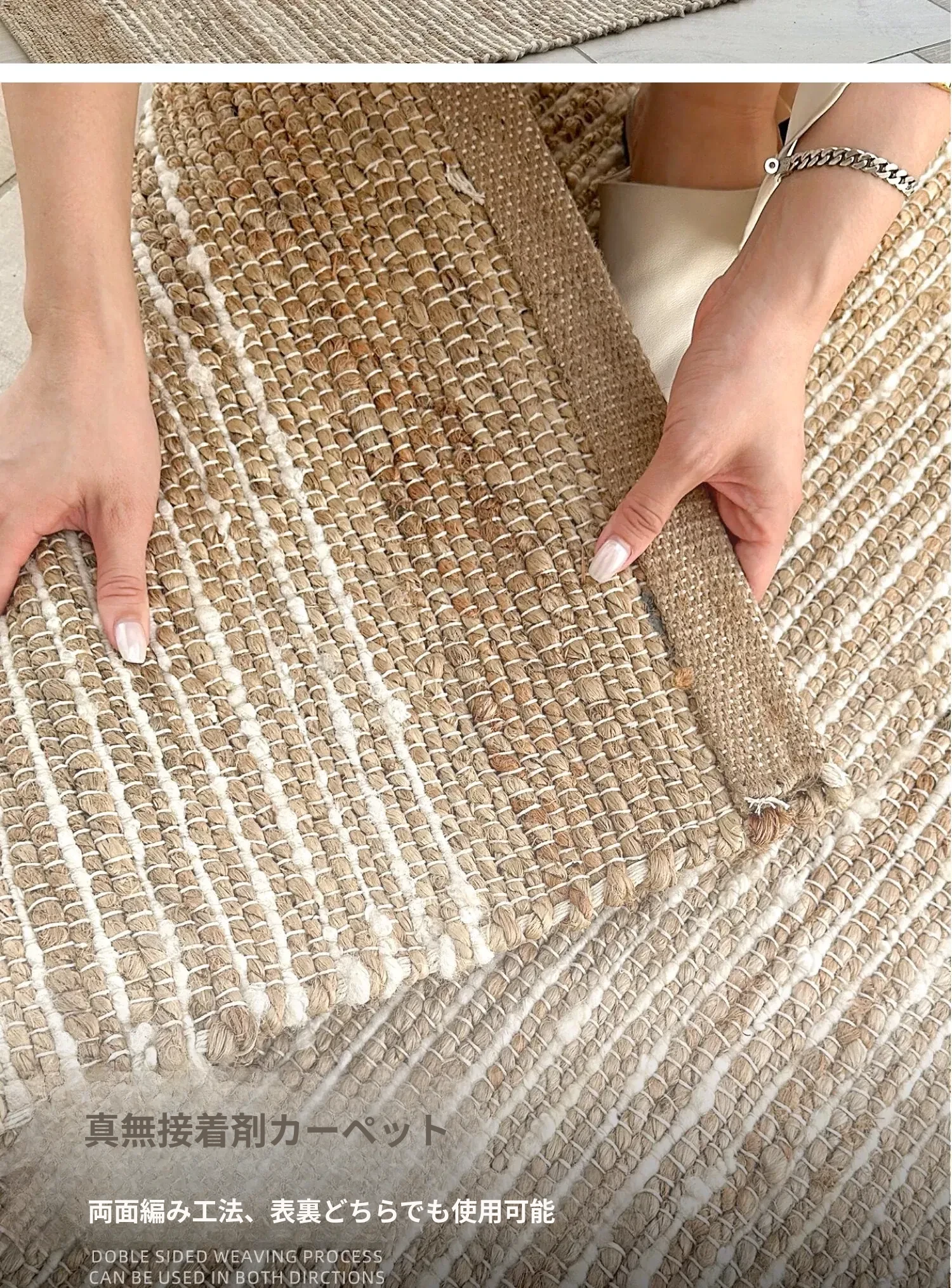TEXDREAMのこだわり 手作りノーグルー黄麻ラグ フランス風侘び寂びデザイン リビングソファー用・ベッドサイドマットに最適!天然素材で心地よい空間を演出します。