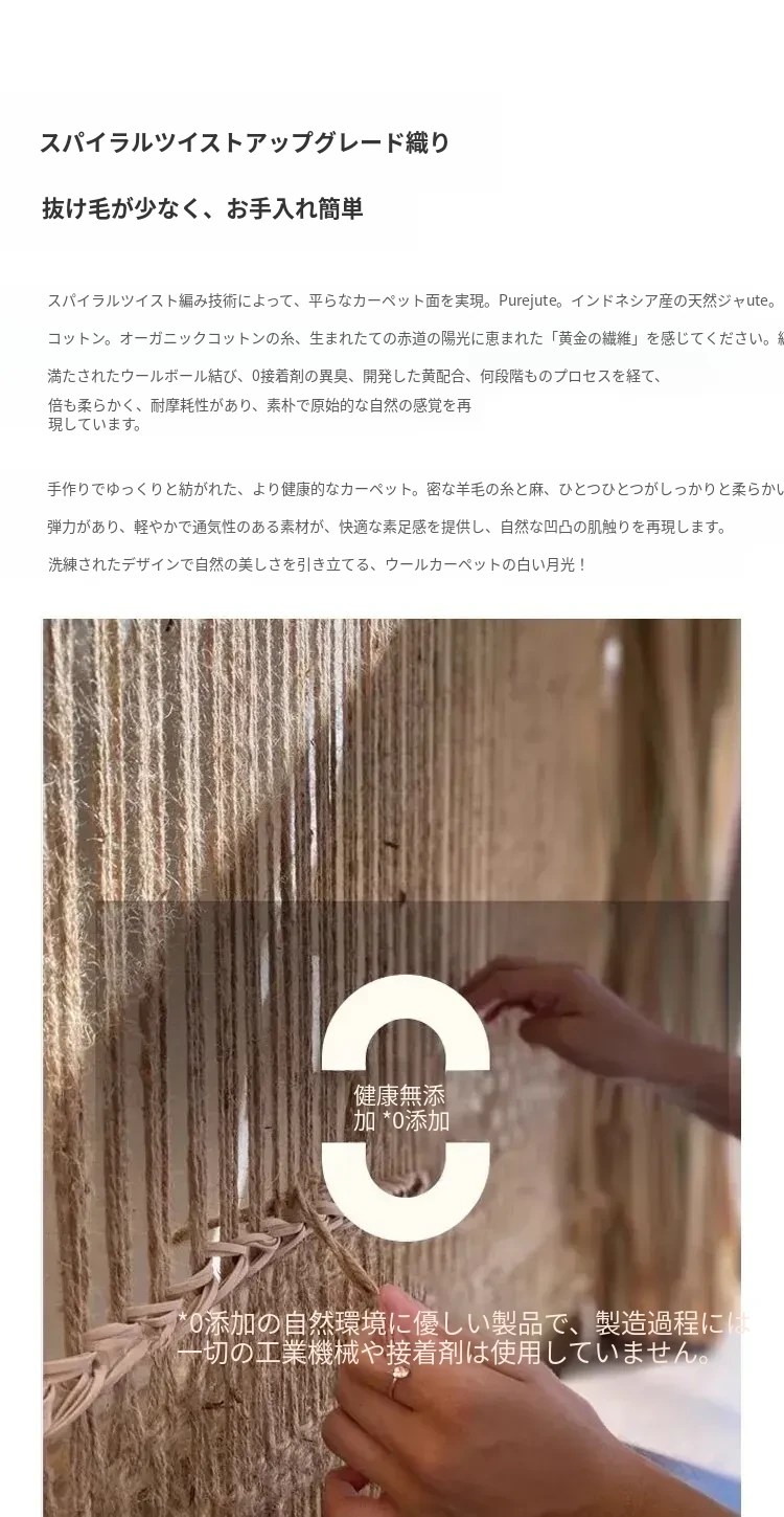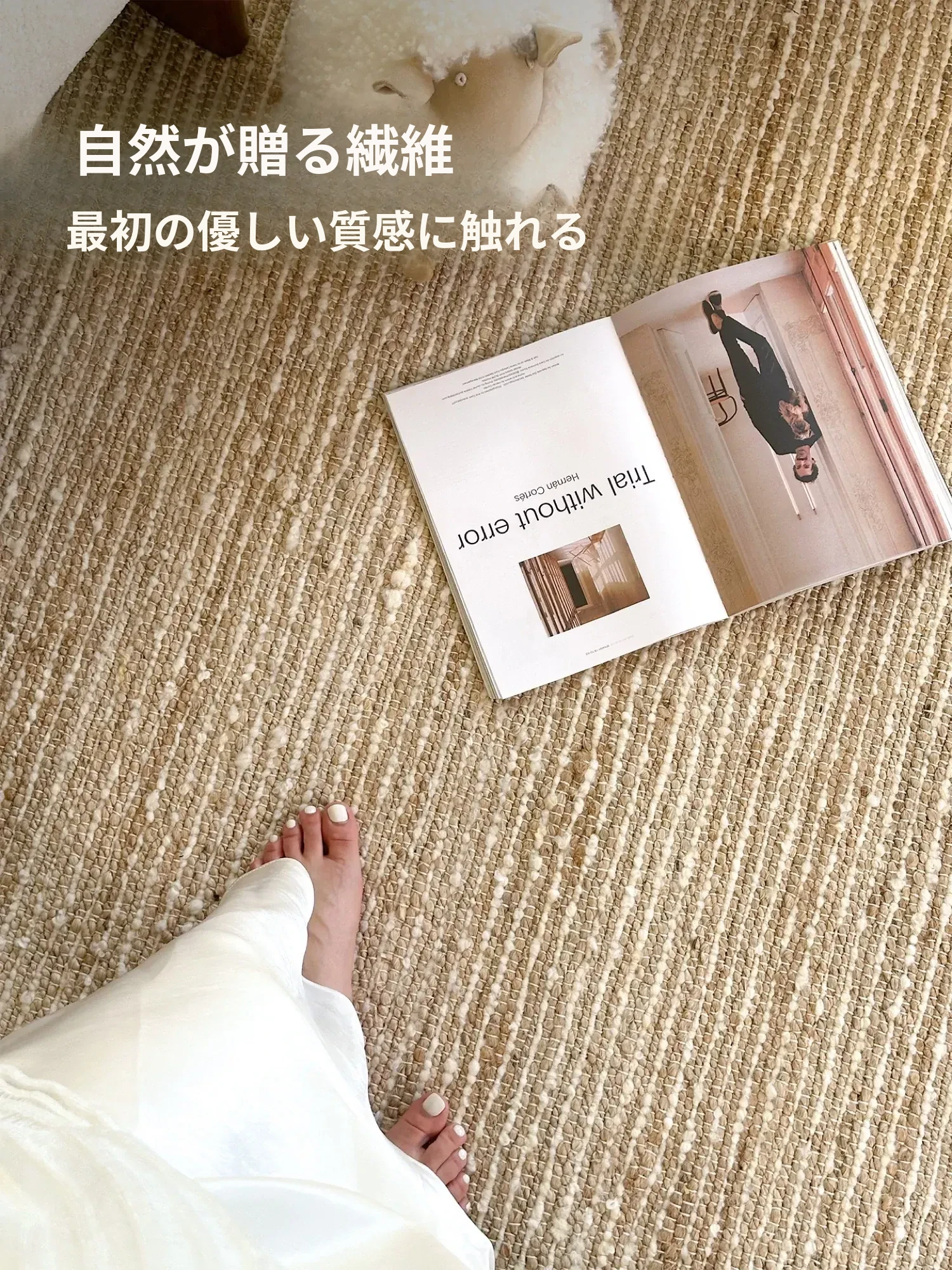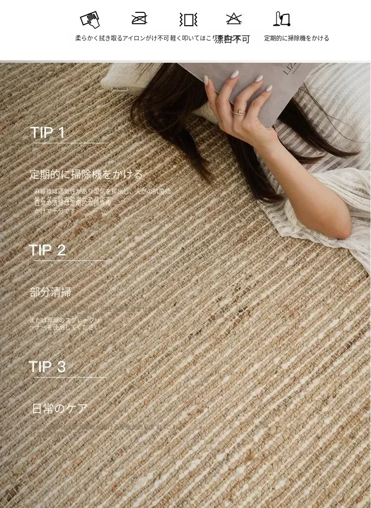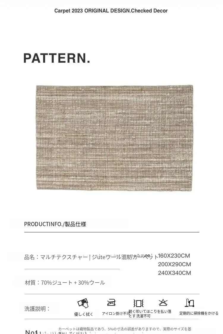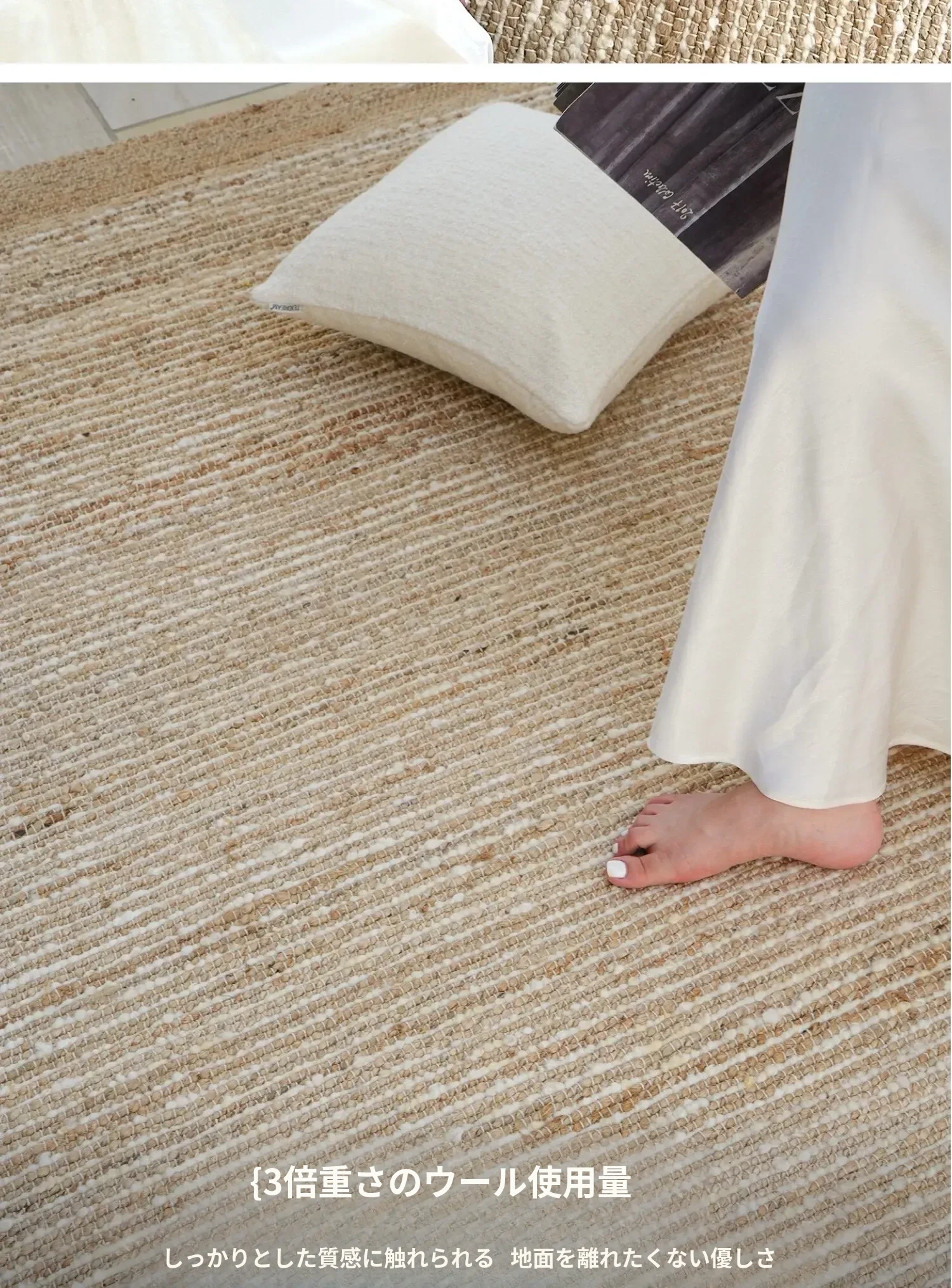 TEXDREAMのこだわり 手作りノーグルー黄麻ラグ フランス風侘び寂びデザイン リビングソファー用・ベッドサイドマットに最適!天然素材で心地よい空間を演出します。