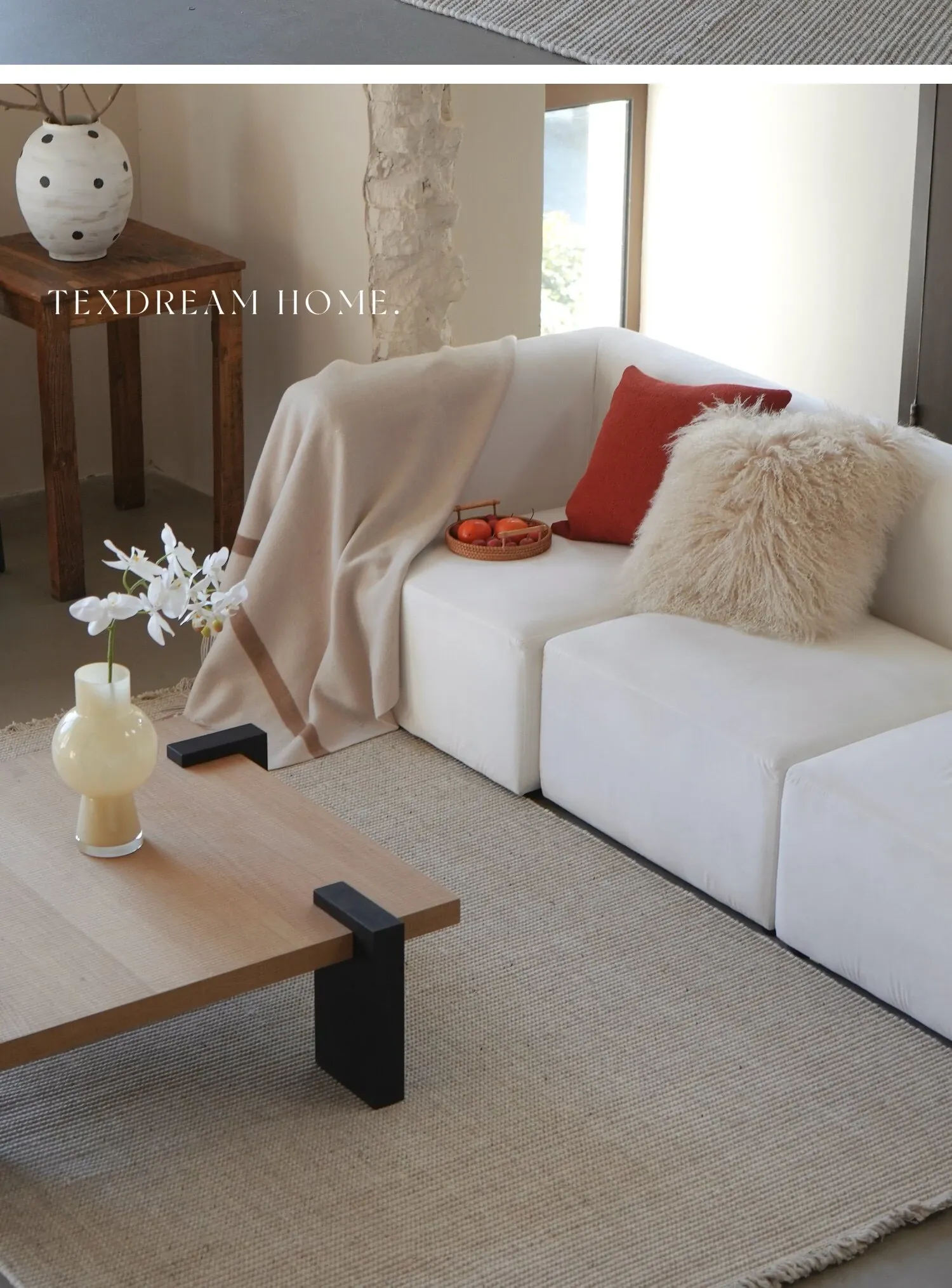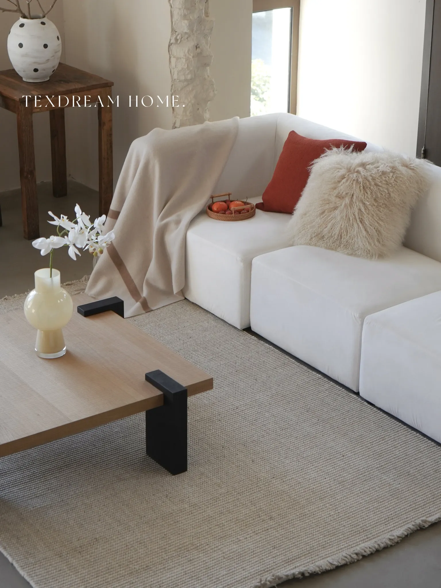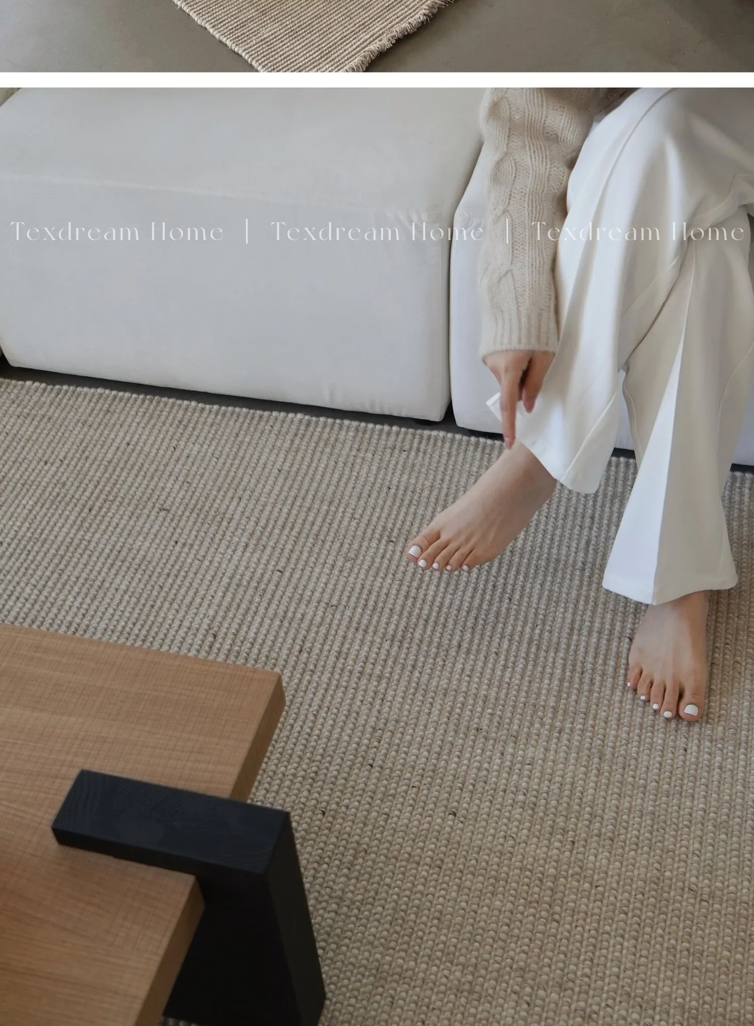 Texdreamのスタイル 無添加手織りウールラグ - 重厚感のあるテクスチャーが魅力のソファやリビングにぴったりのカーペット!