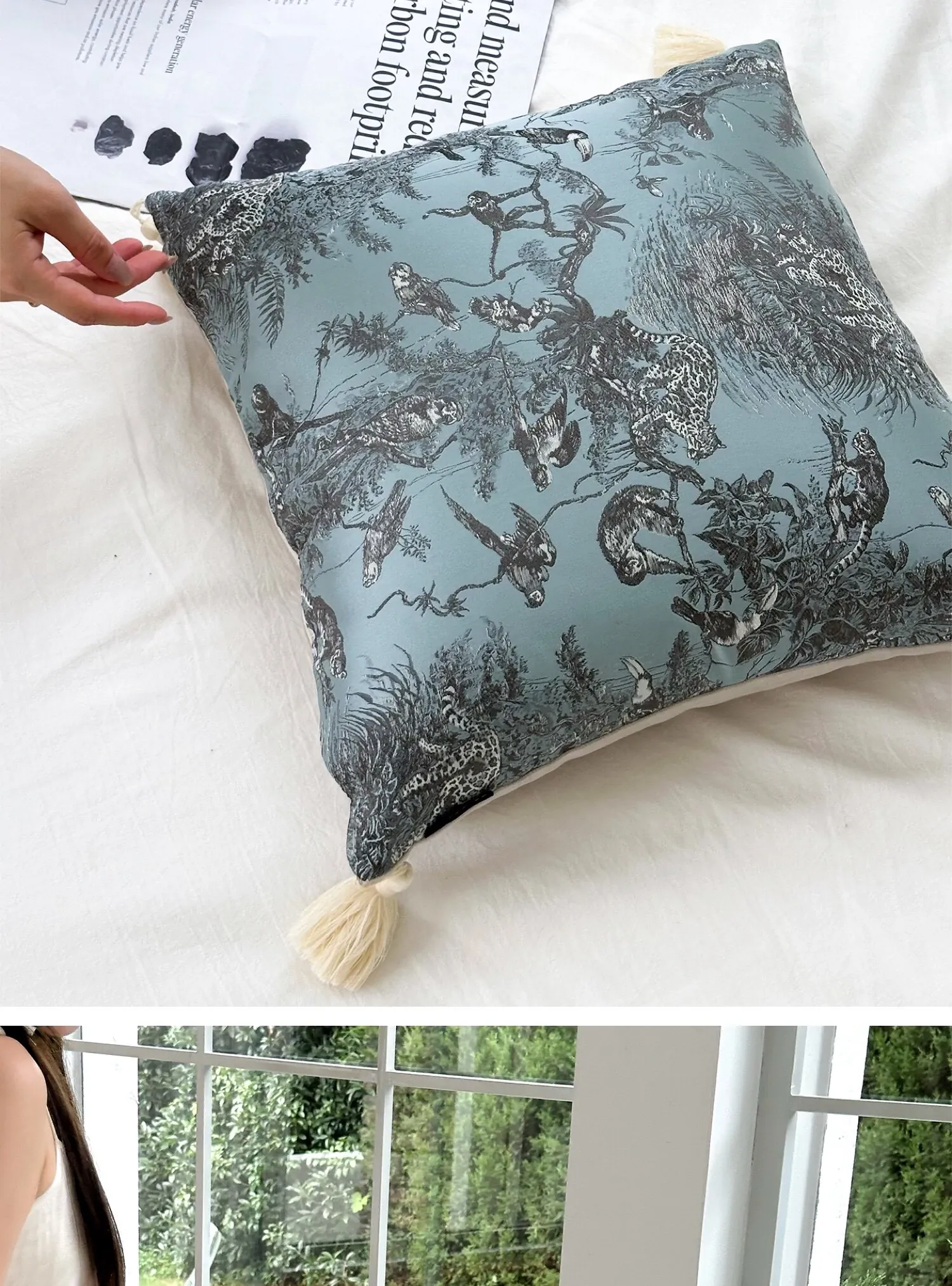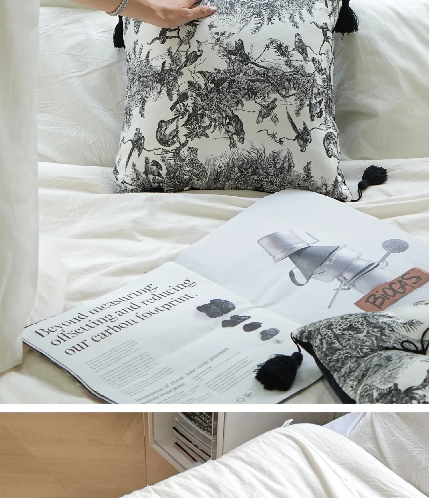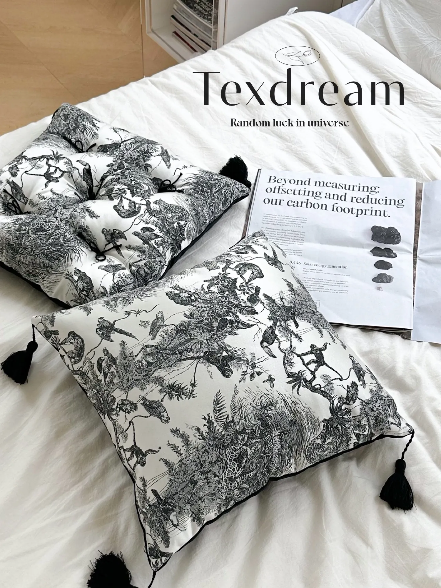 TEXDREAMのスタイル 水墨流しフリンジ モダンラグジュアリーソファクッション 高級サテン製ベッドヘッドクッション 窓辺のクッションで、洗練された空間を演出!