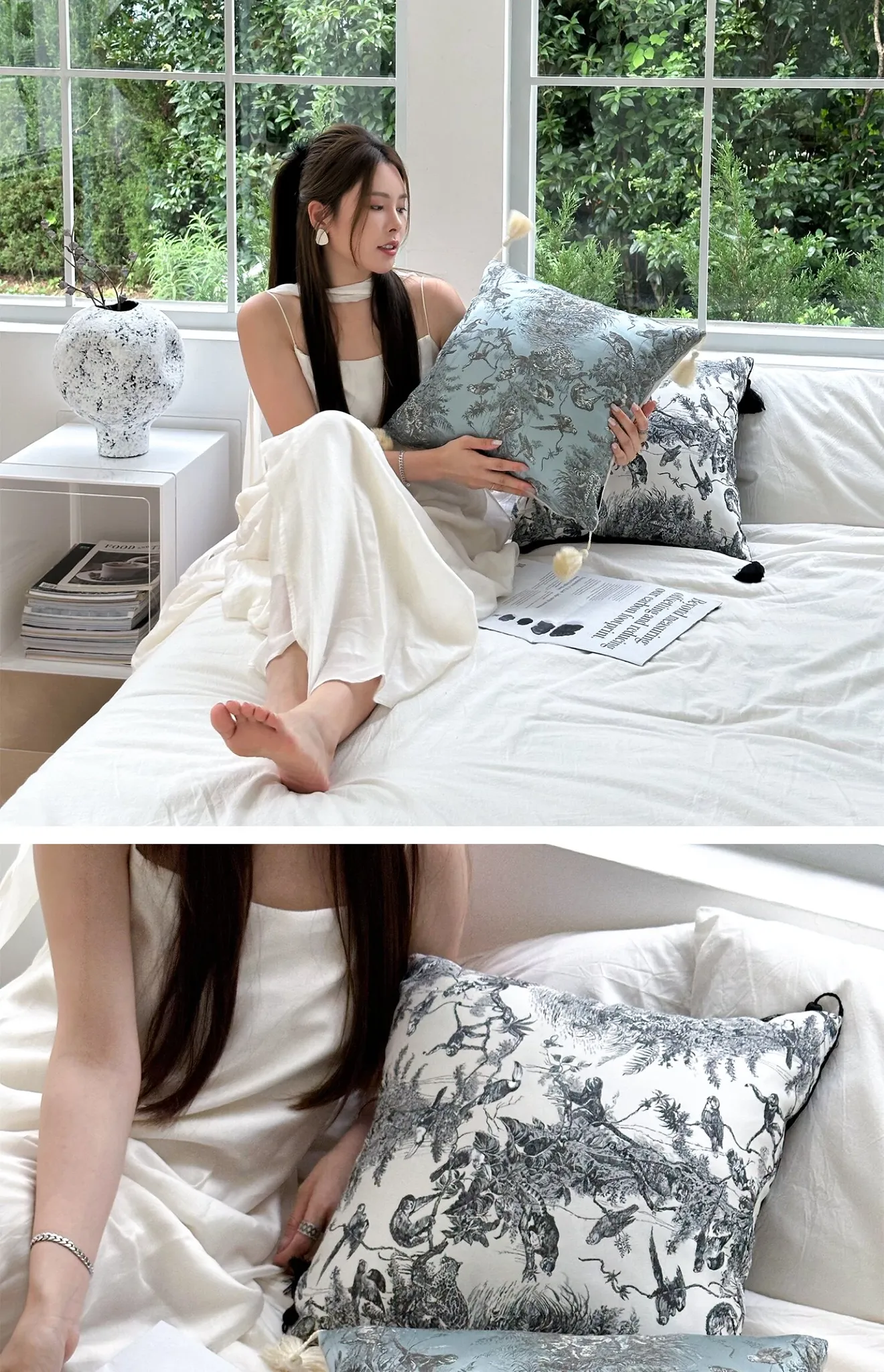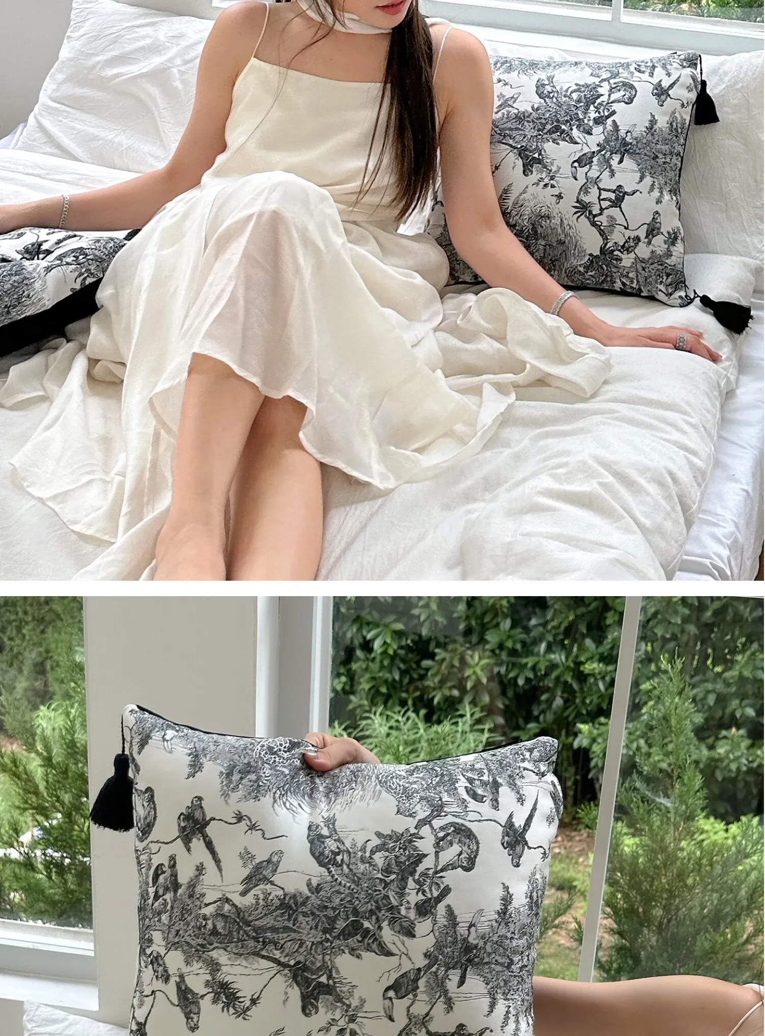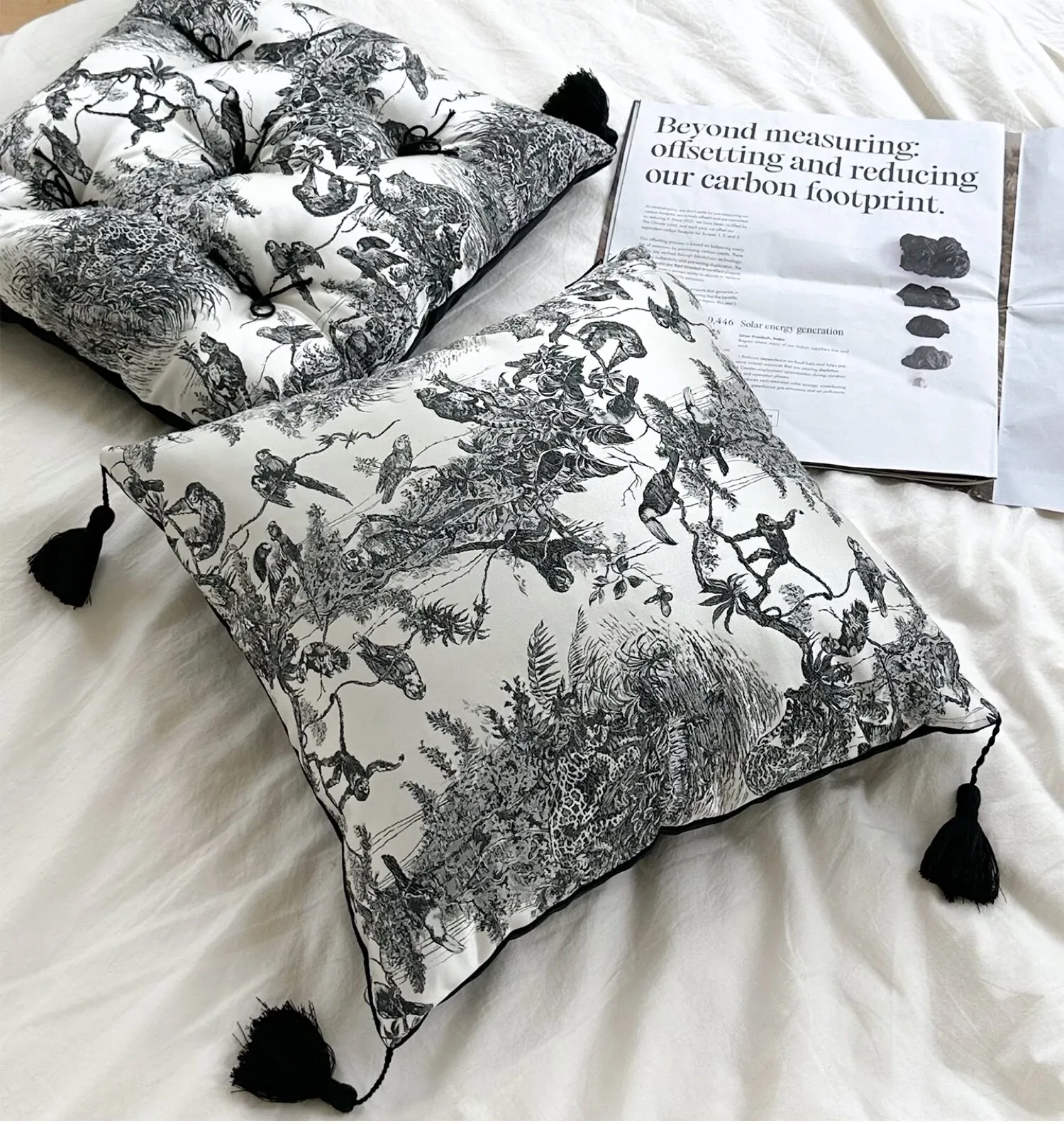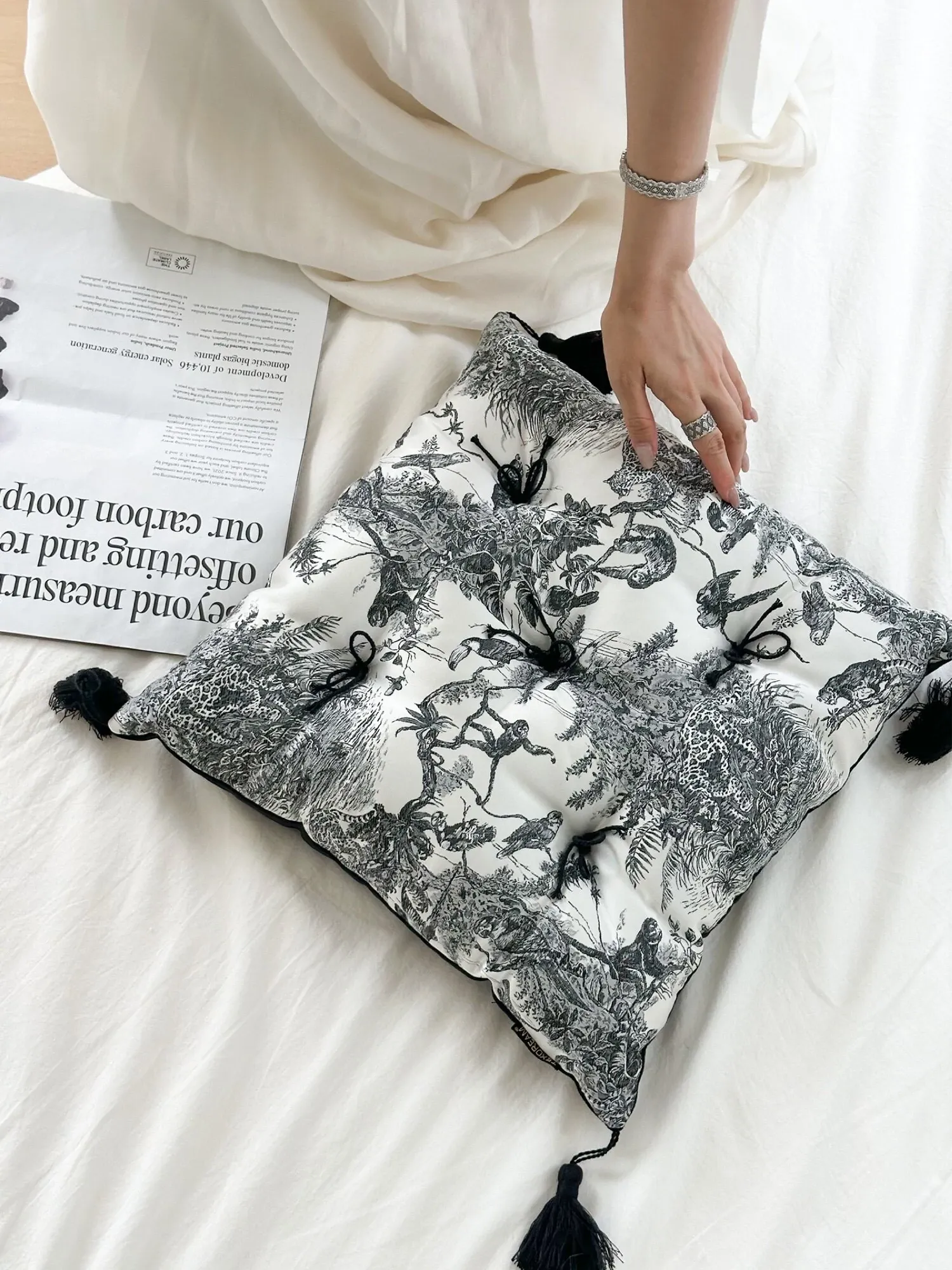 TEXDREAMのスタイル 水墨流しフリンジ モダンラグジュアリーソファクッション 高級サテン製ベッドヘッドクッション 窓辺のクッションで、洗練された空間を演出!