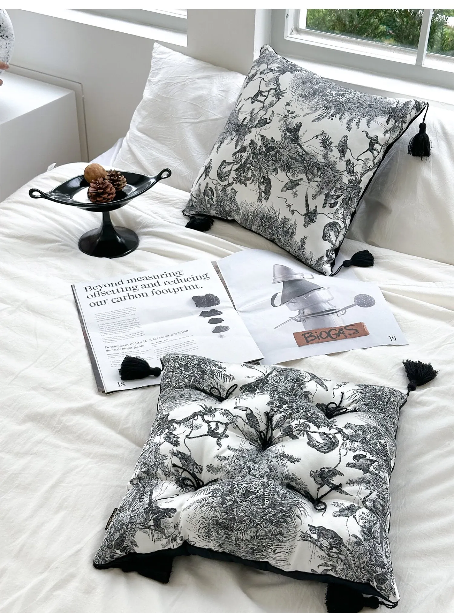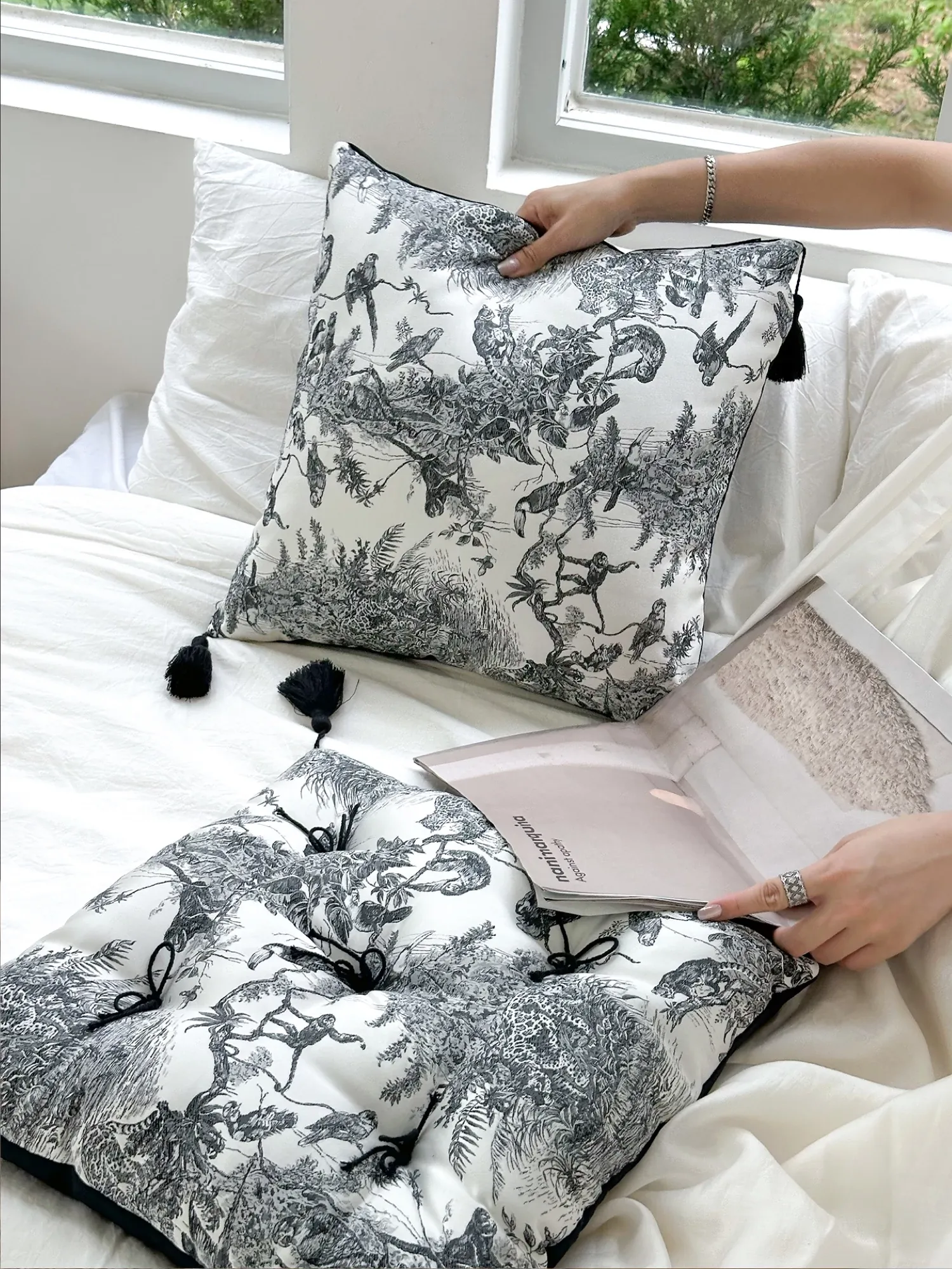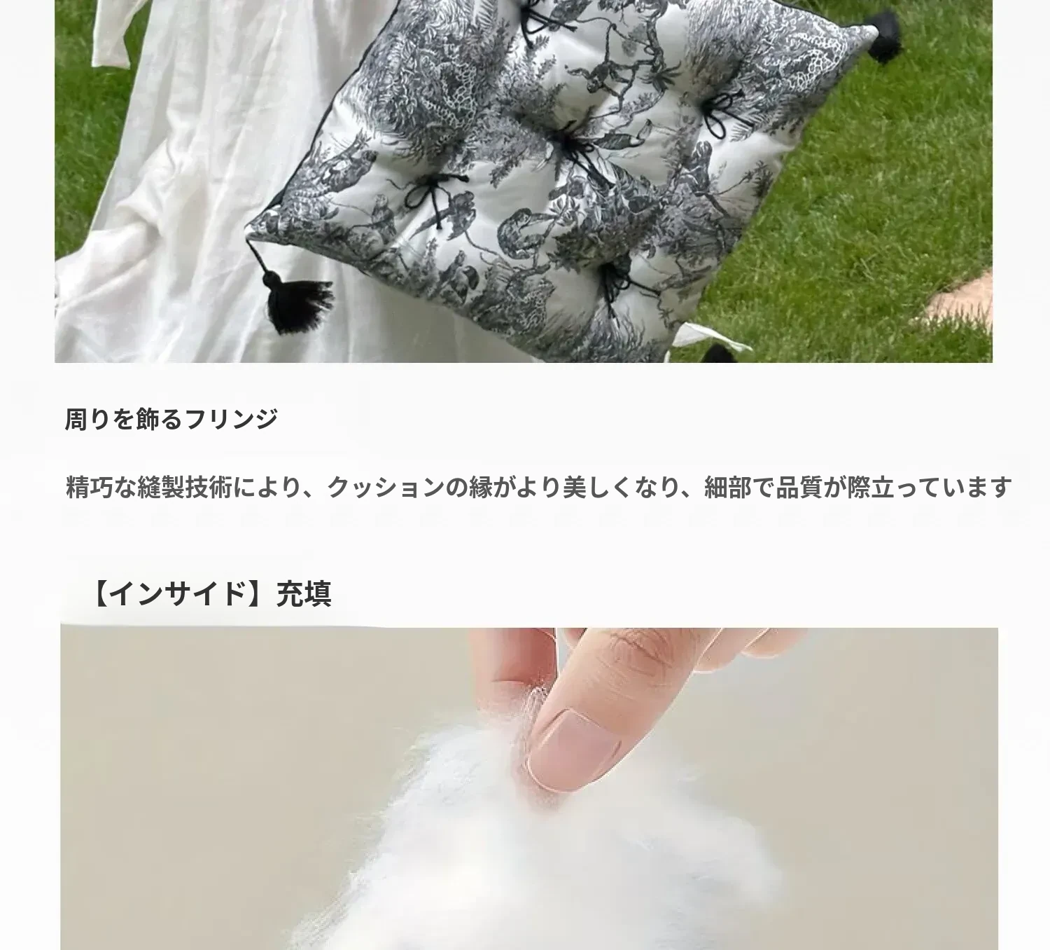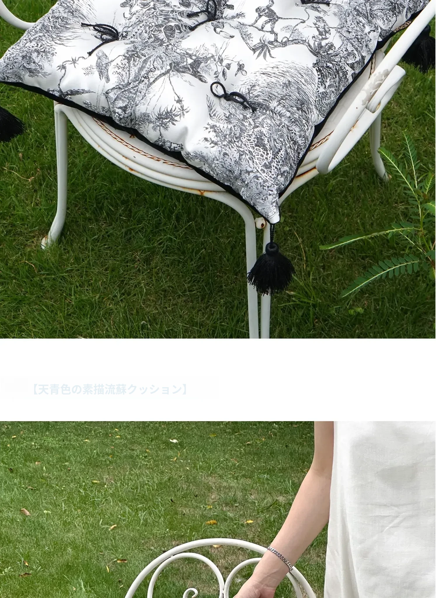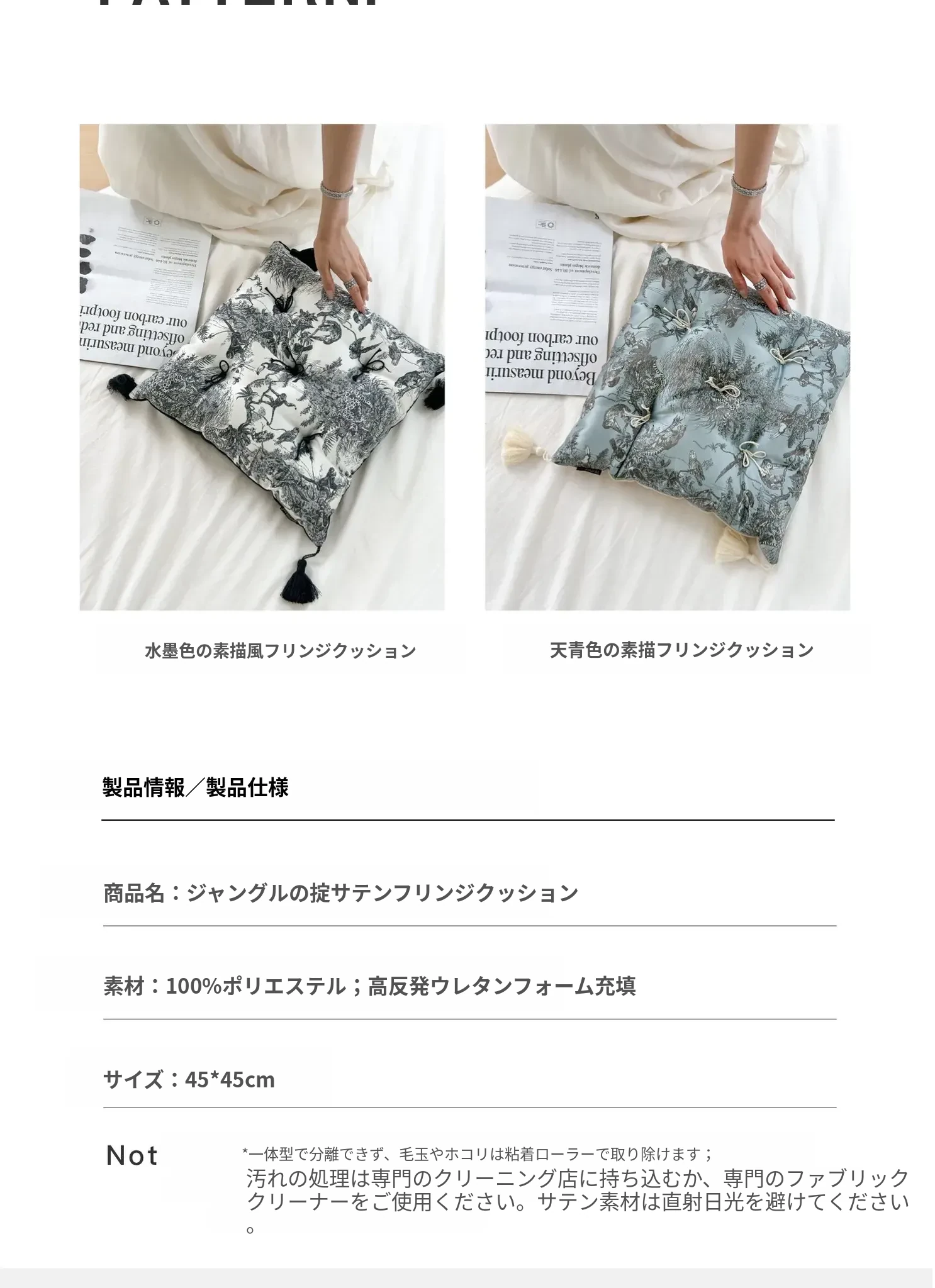 【水墨流蘇サテン座布団 | ブラック】