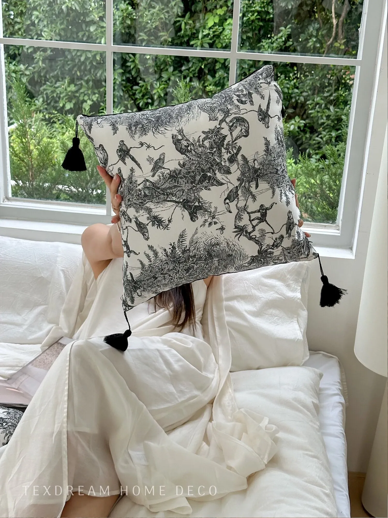 【水墨流蘇サテン抱き枕 | ブラック】