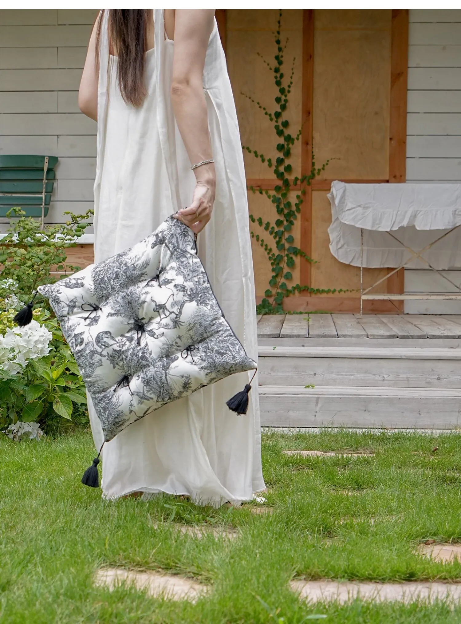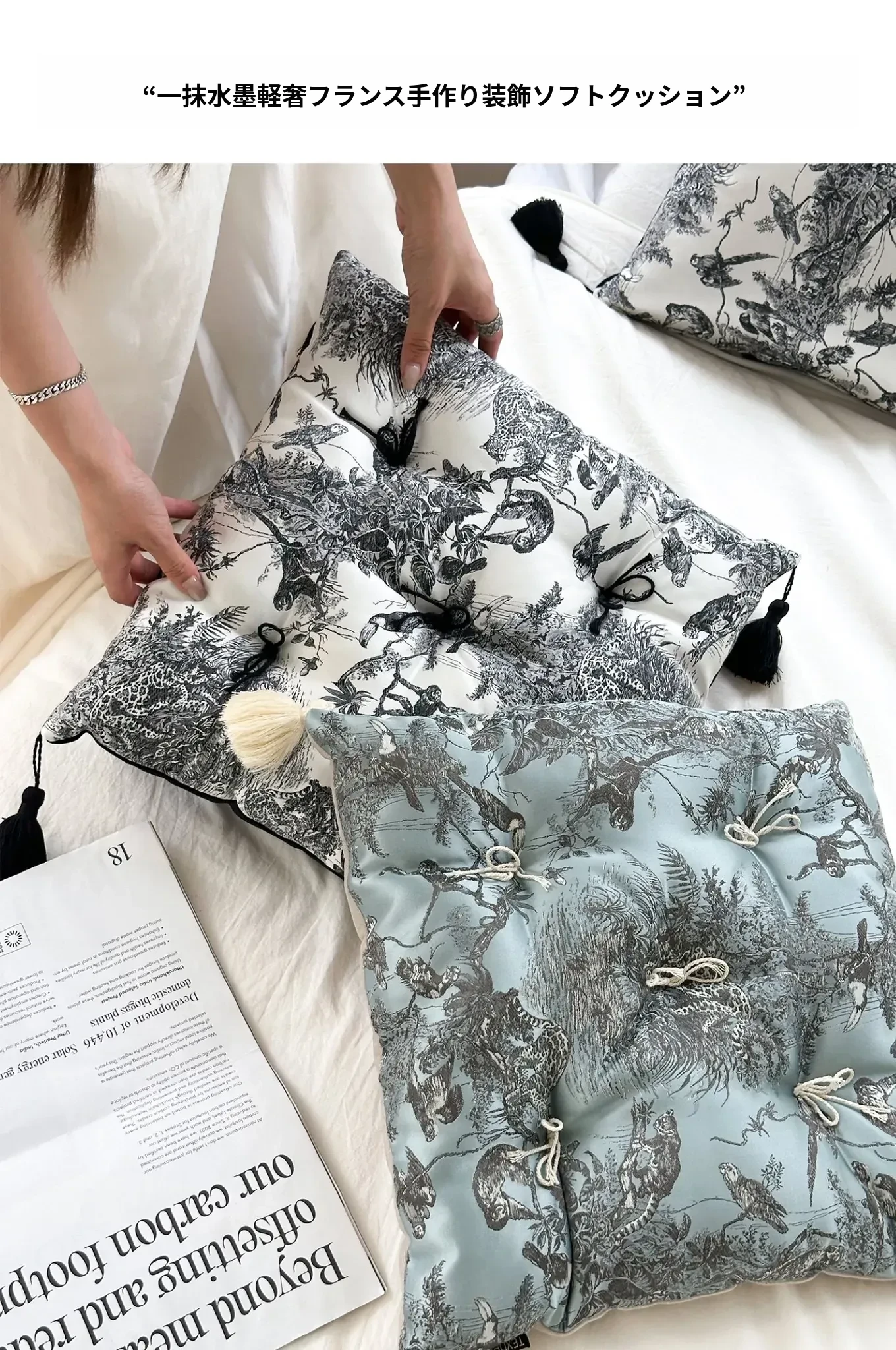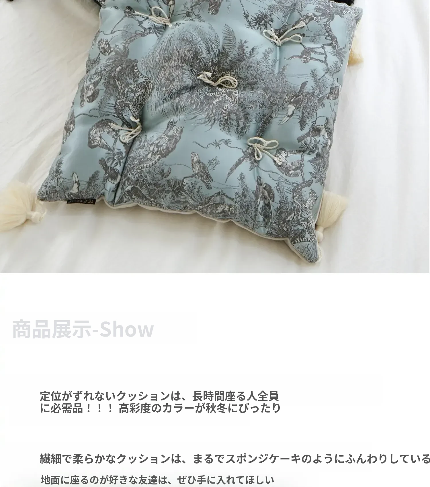 【水墨流蘇サテン座布団 | グリーン】
