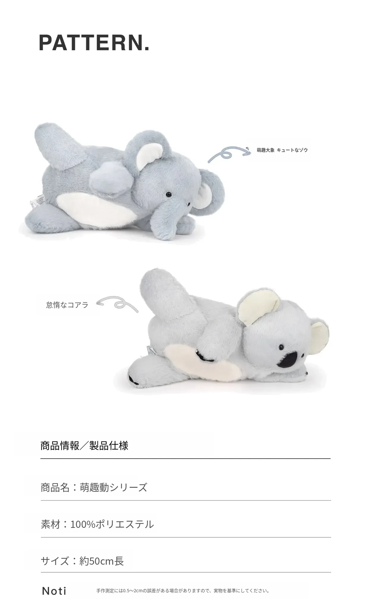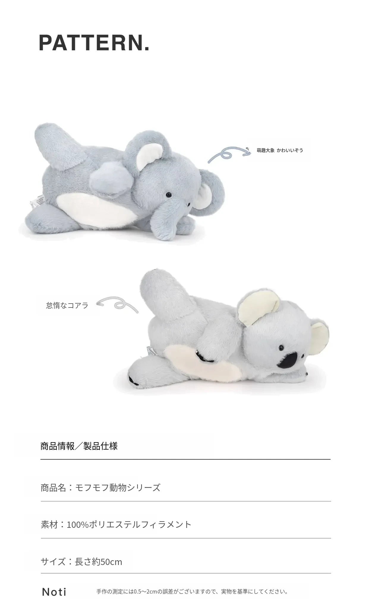 新バージョンのコアラ/象の色はグレー寄りですので、撮影前にご注意ください。