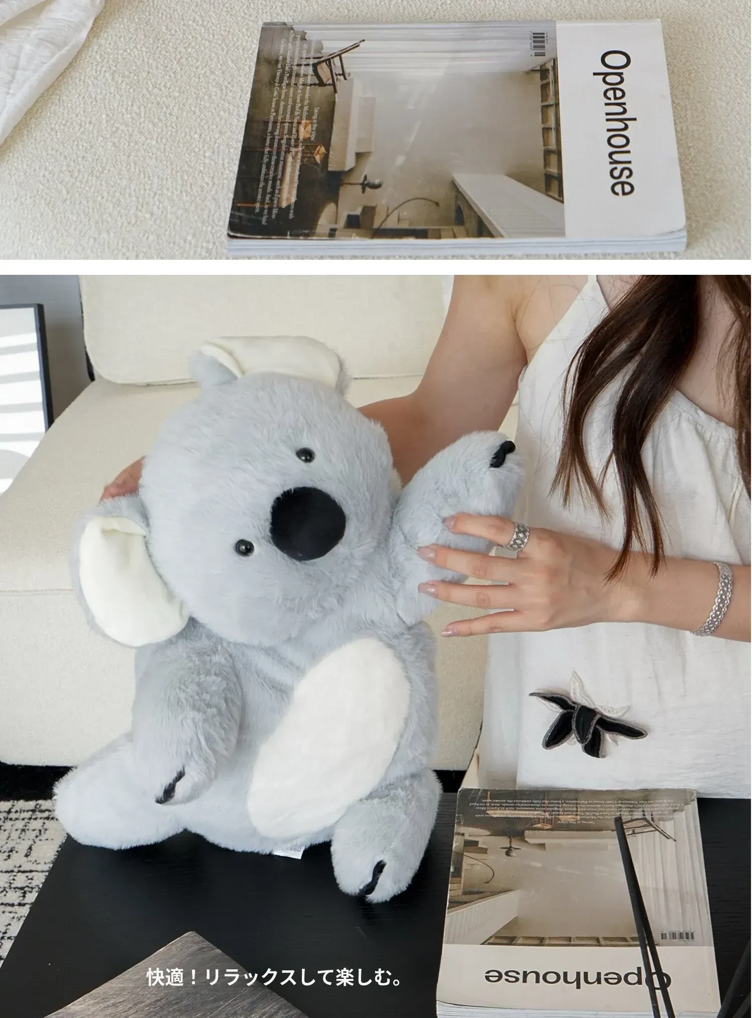 TEXDREAMスタイルのリラックスコアラぬいぐるみ - 高級感あふれるソファクッションとして、贈り物にも最適!あなたのリビングに癒しをプラス。