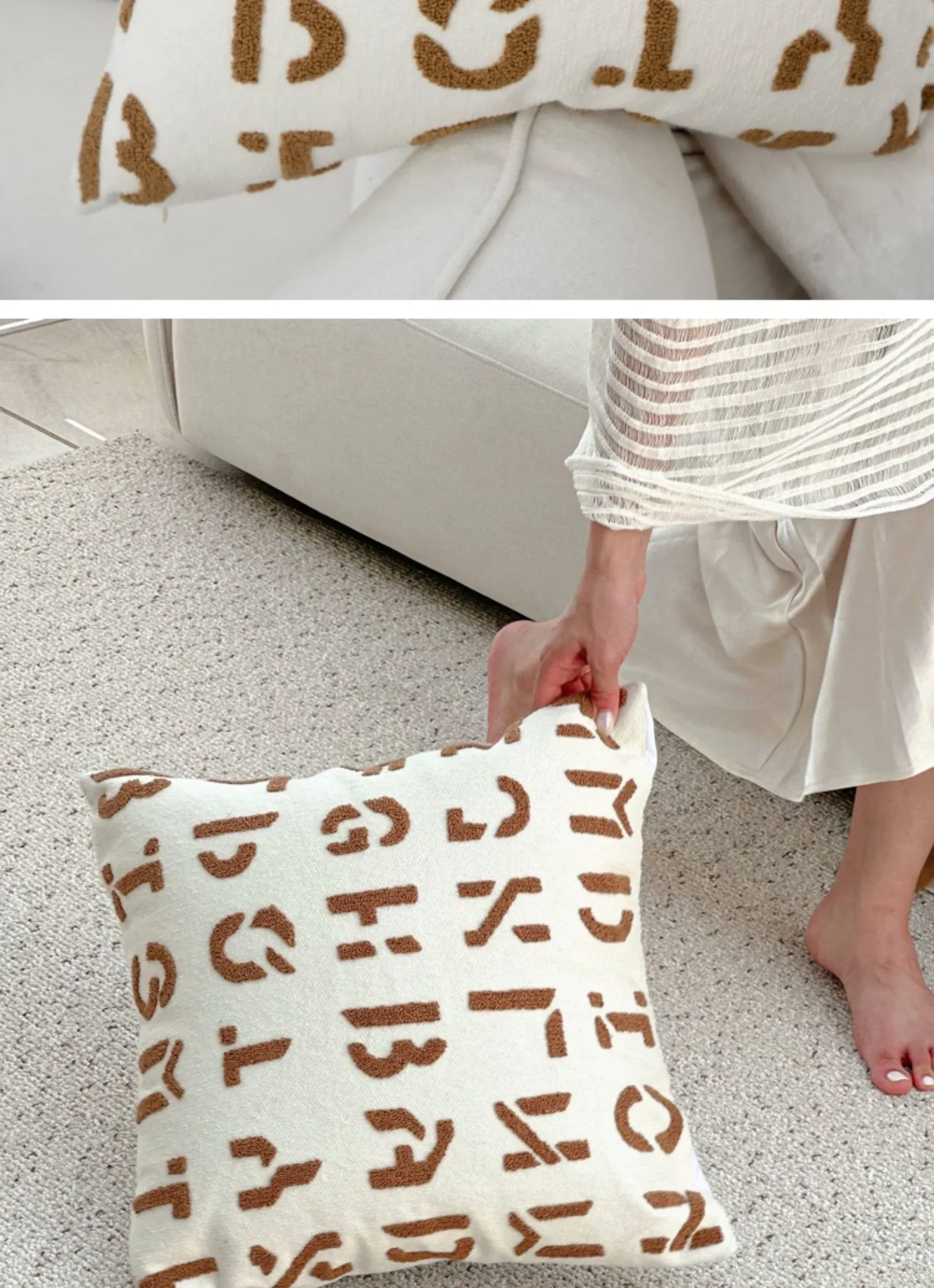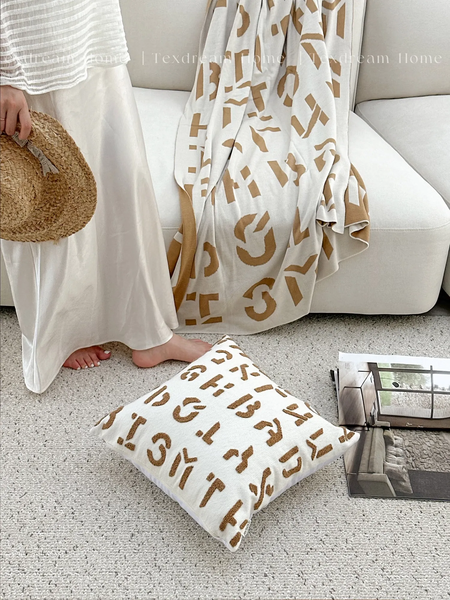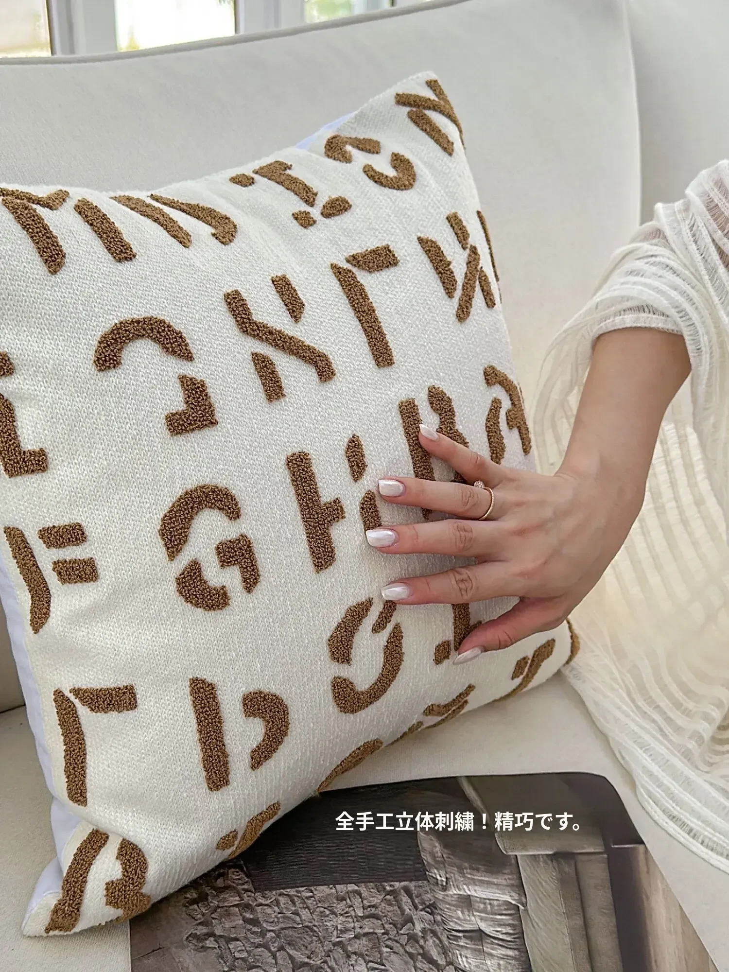 TEXDREAMのスタイリッシュな刺繍クッション - モダンなラグジュアリー感漂うソファ用抱き枕、ベッドサイドにもぴったり!高級感あふれるカバーと中材付きで、心地よいひとときを演出します。