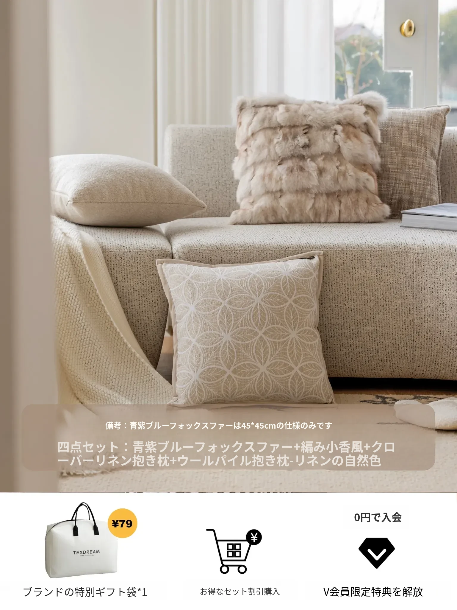 角枕 45*45cm【カバー+羽毛のような綿ピローインサート】
