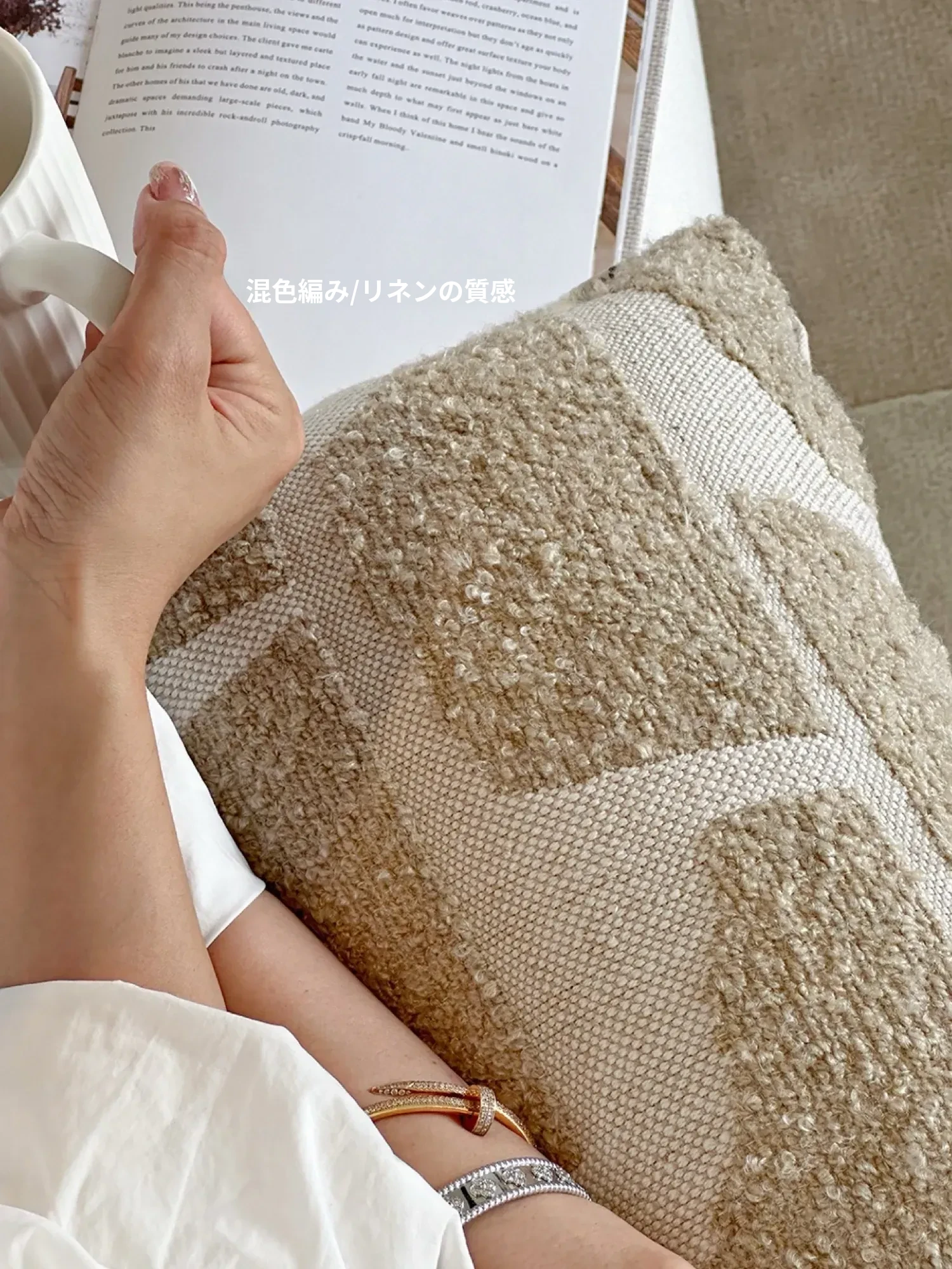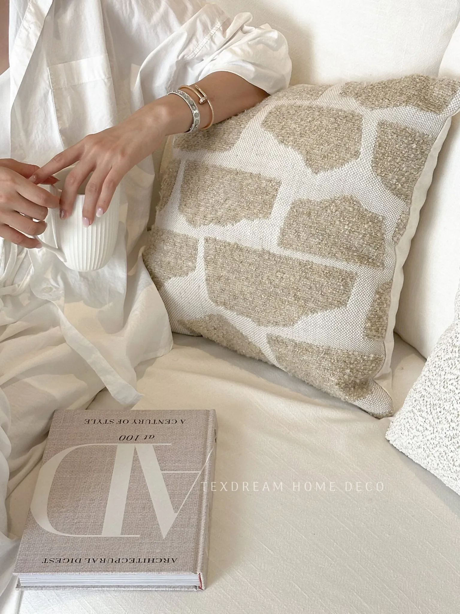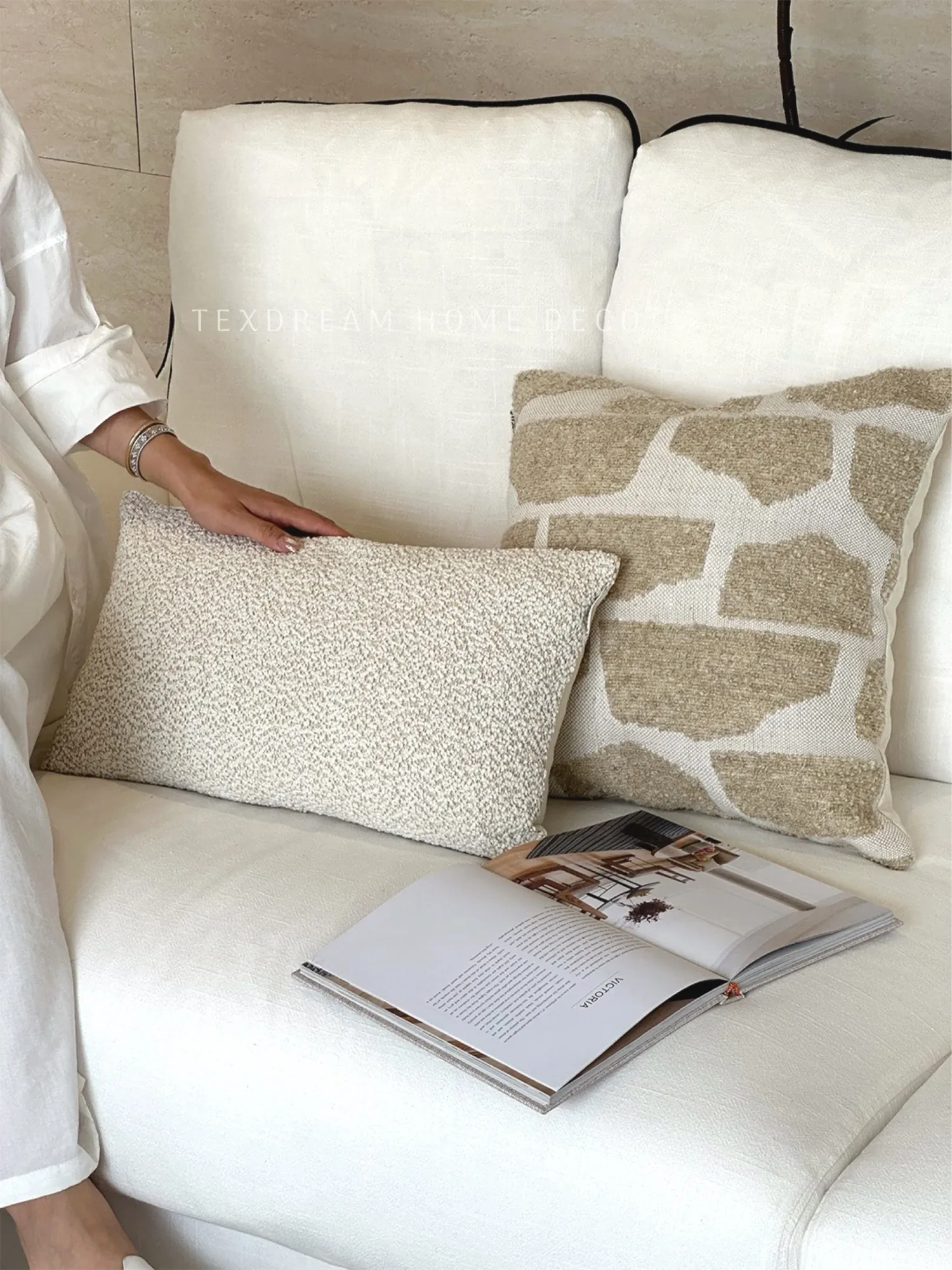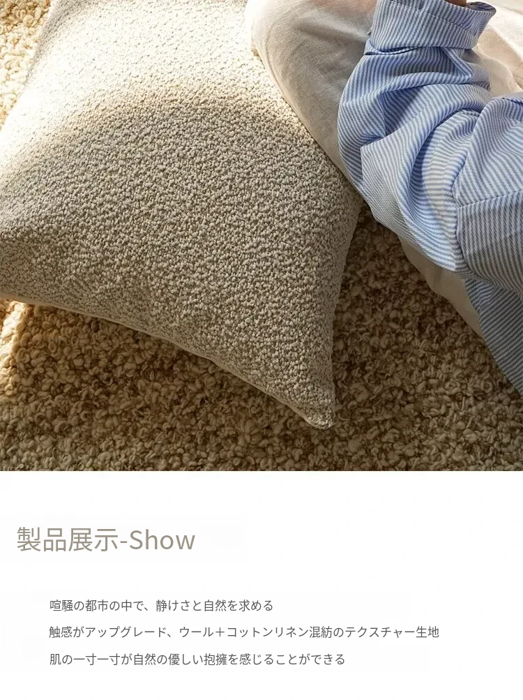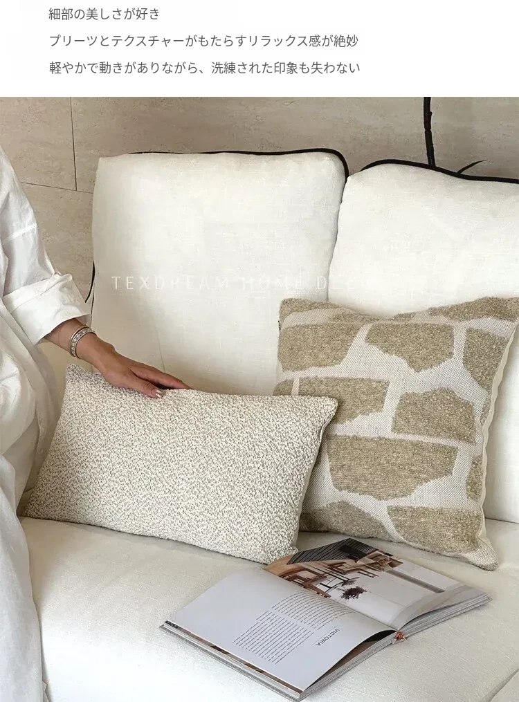 Texdreamのスタイル リネンテクスチャー抱き枕カバー - 侘寂の美しさを感じるフレンチアンティーク風デザイン。高級感あふれる窓辺やリビングソファにぴったり!