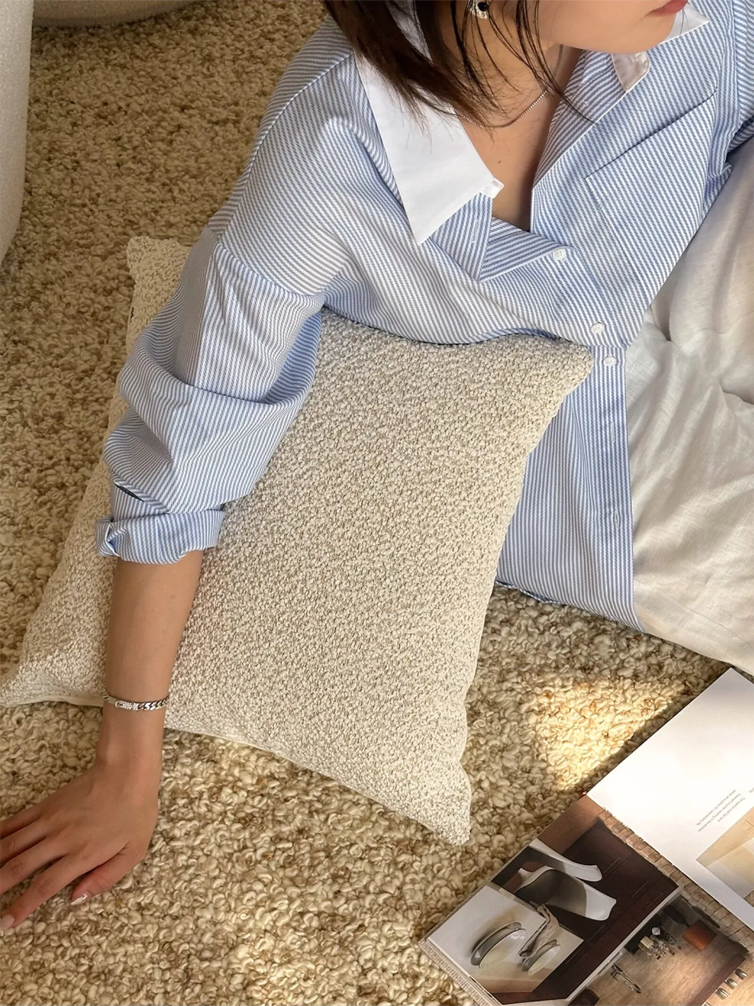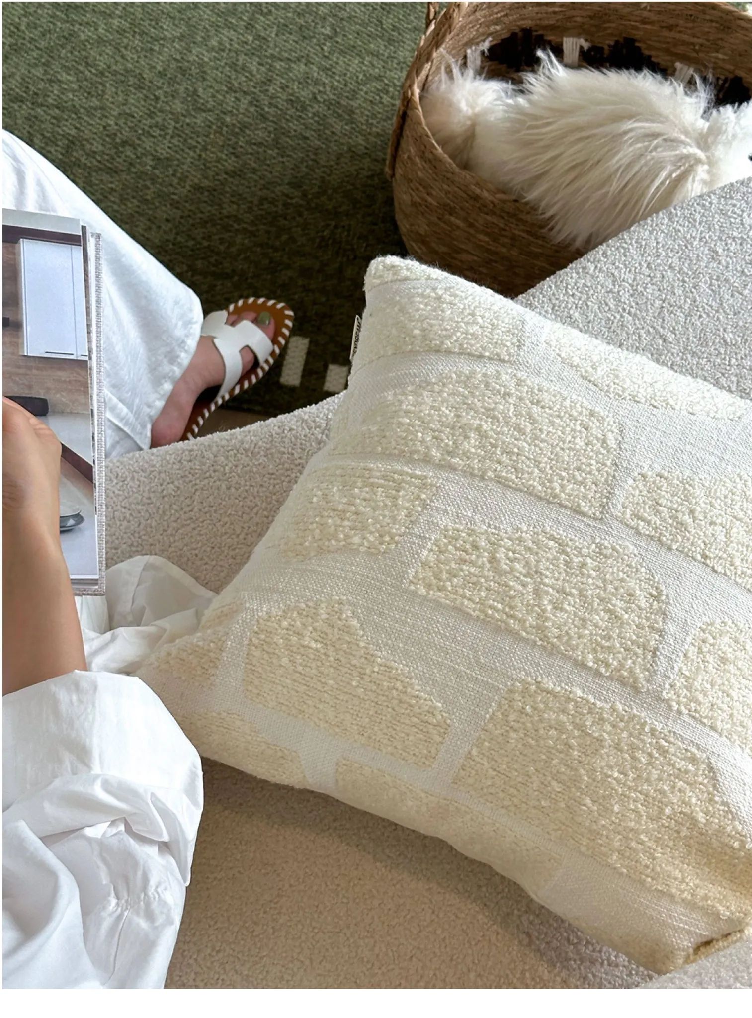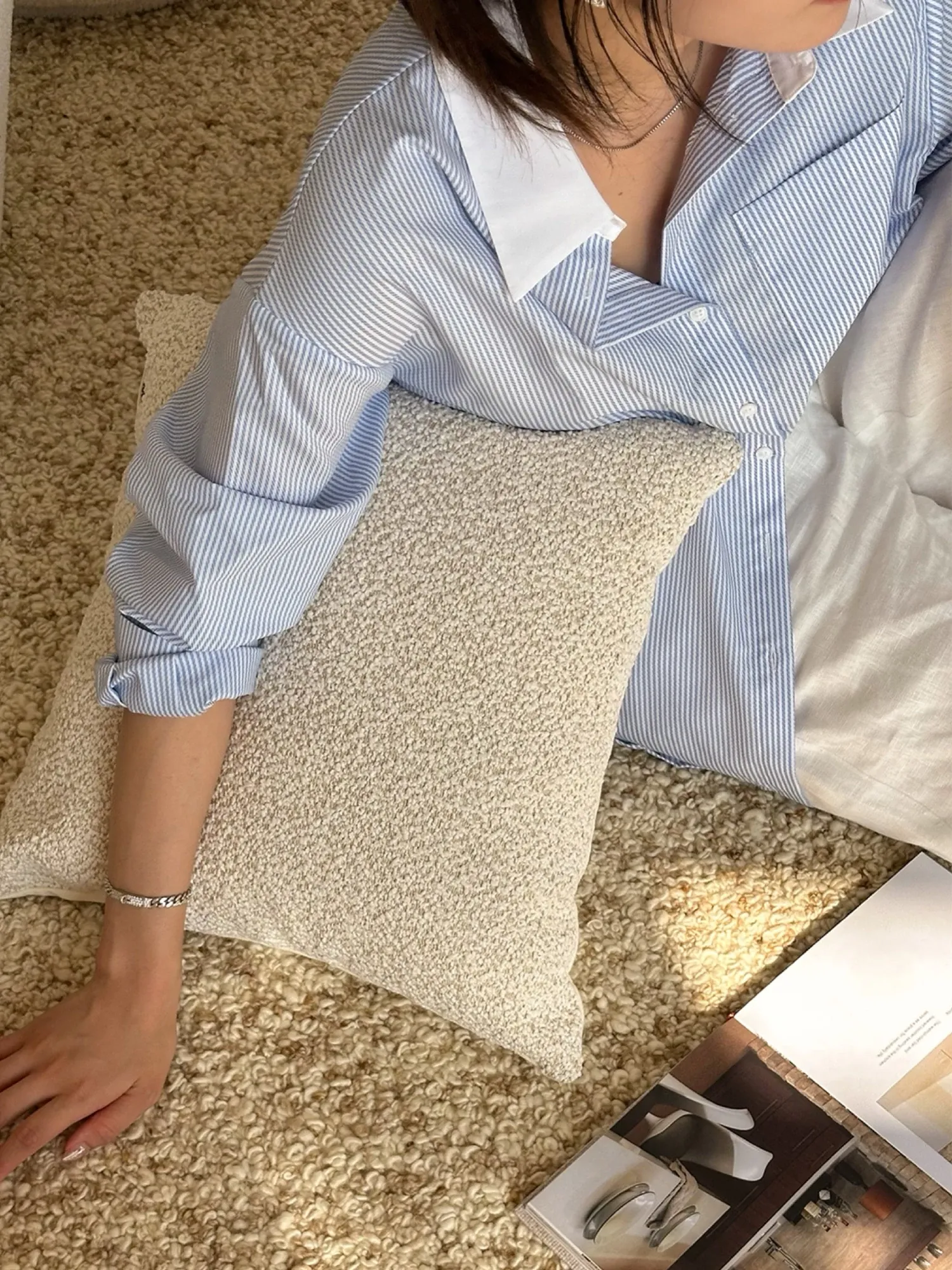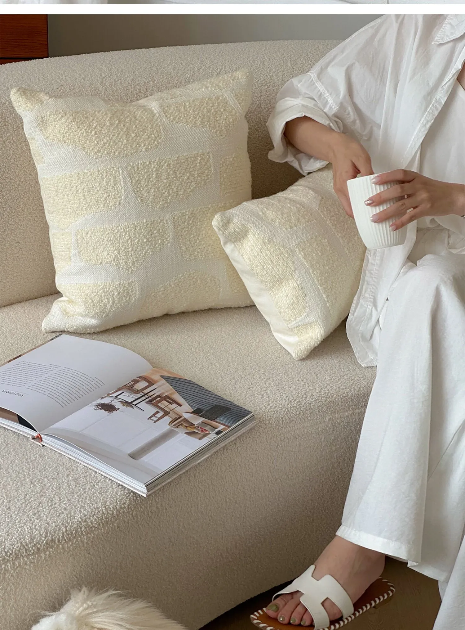Texdreamのスタイル リネンテクスチャー抱き枕カバー - 侘寂の美しさを感じるフレンチアンティーク風デザイン。高級感あふれる窓辺やリビングソファにぴったり!