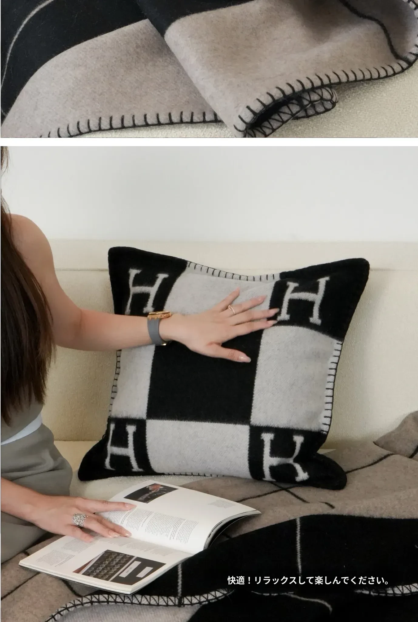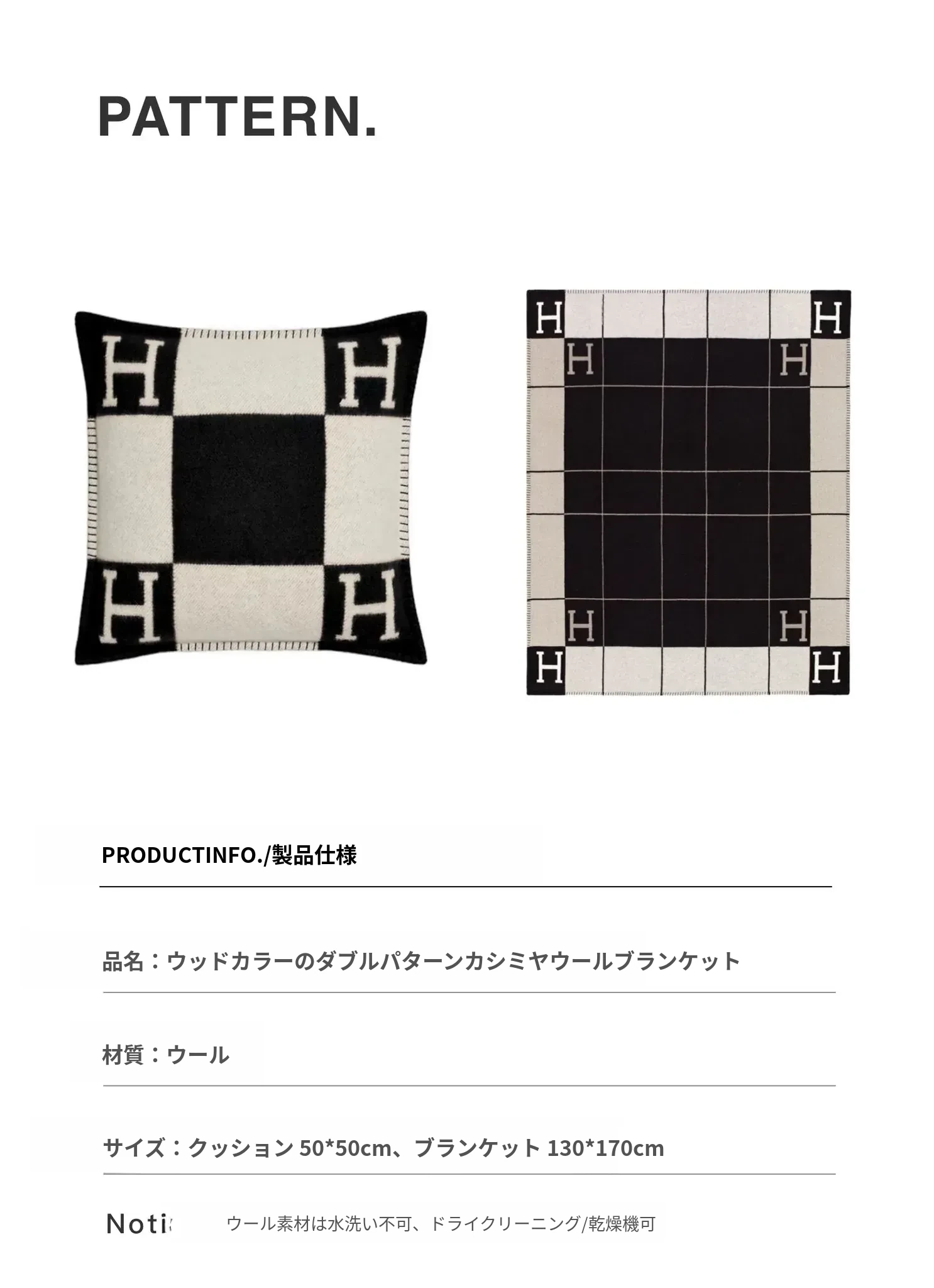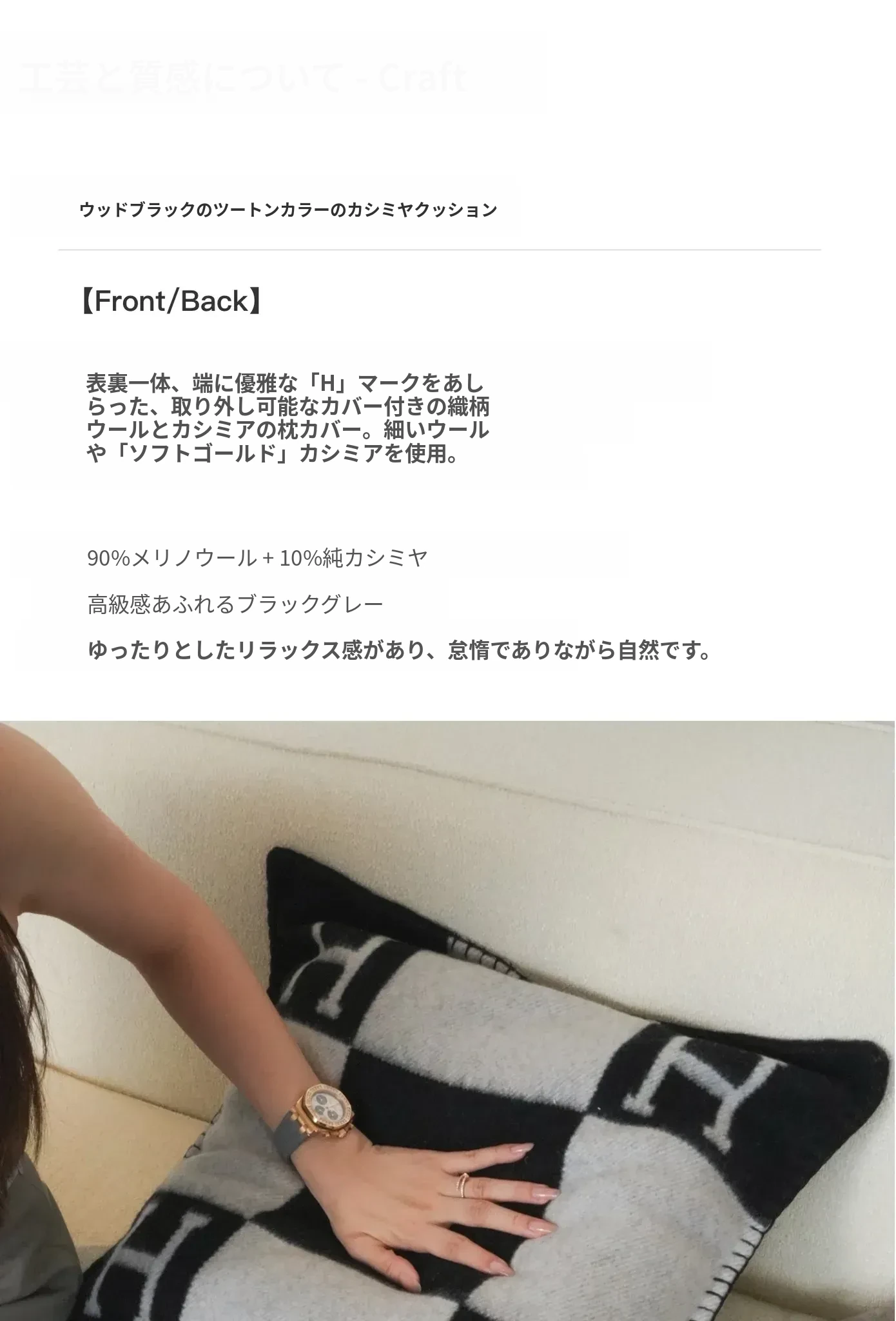 【ウッドブラック| Hカシミヤ2点セット】クッション+ブランケット