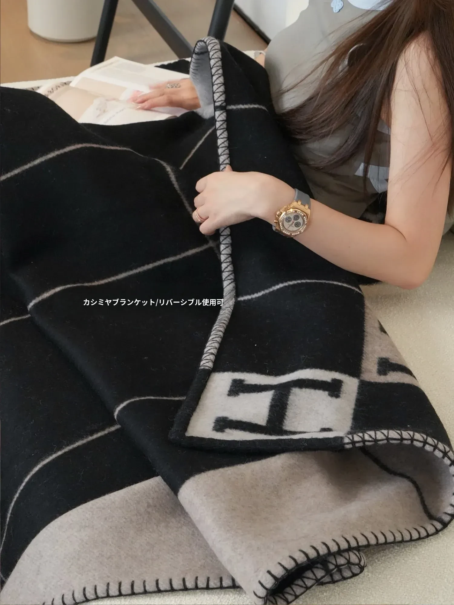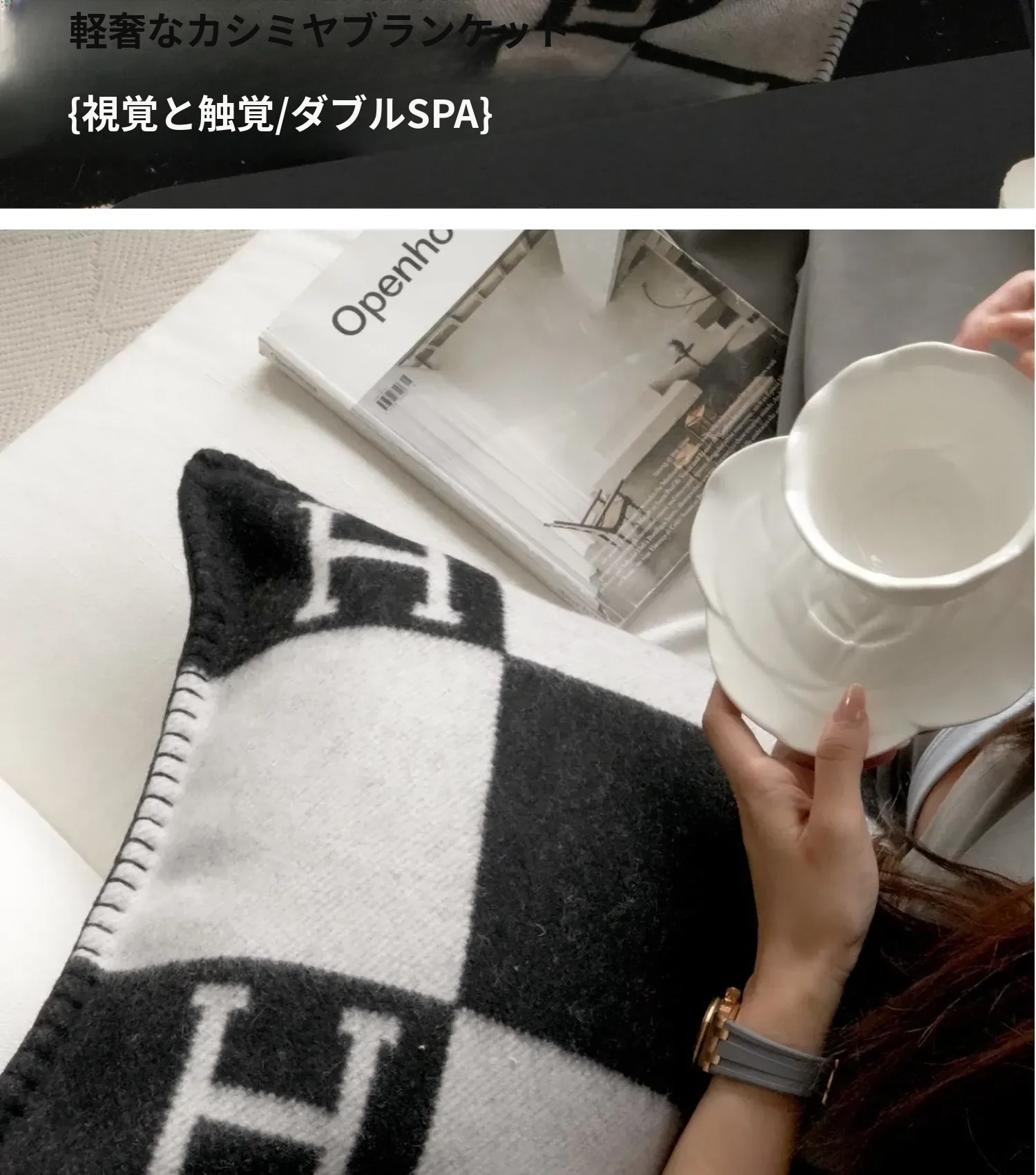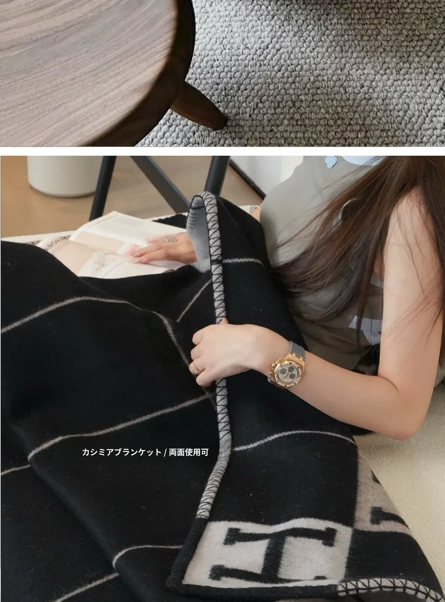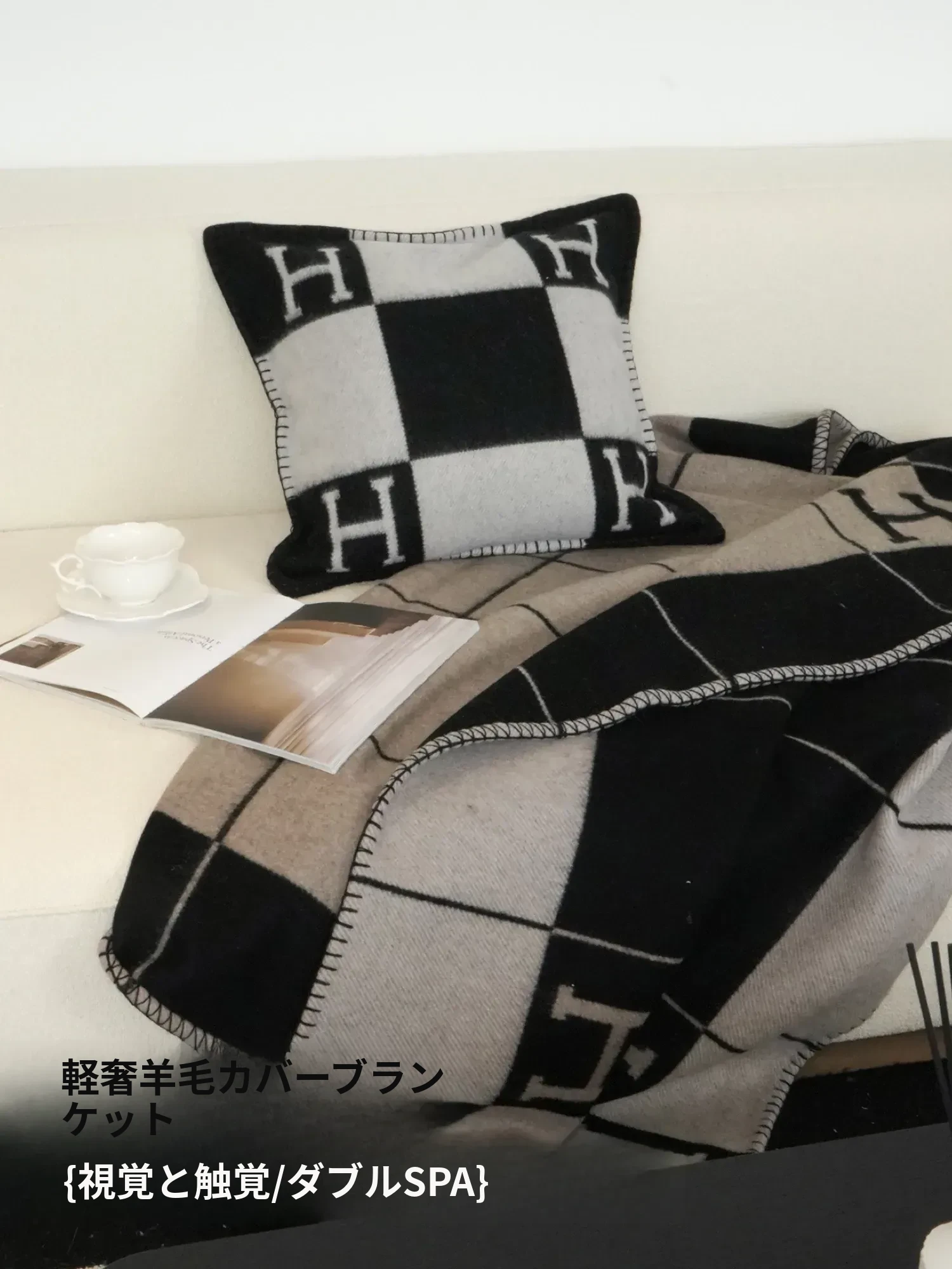 【ウッドブラック| Hカシミヤ2点セット】クッション+ブランケット