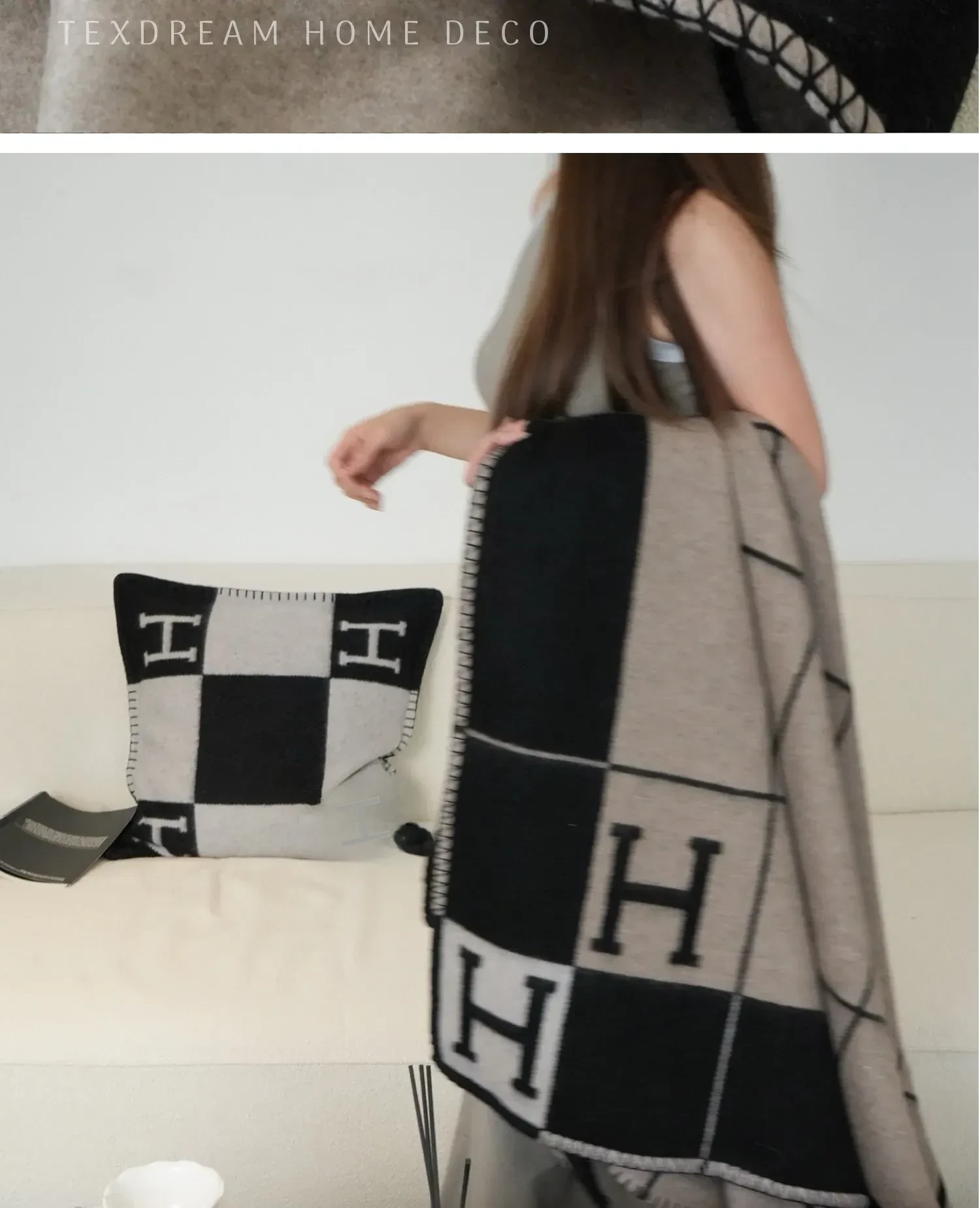 TEXDREAMエレガントなウッドブラックH 軽奢華風キャメルウールソファクッション・ハイエンドベッドヘッドクッション・ブランケット・お昼寝マットで快適なひとときを!