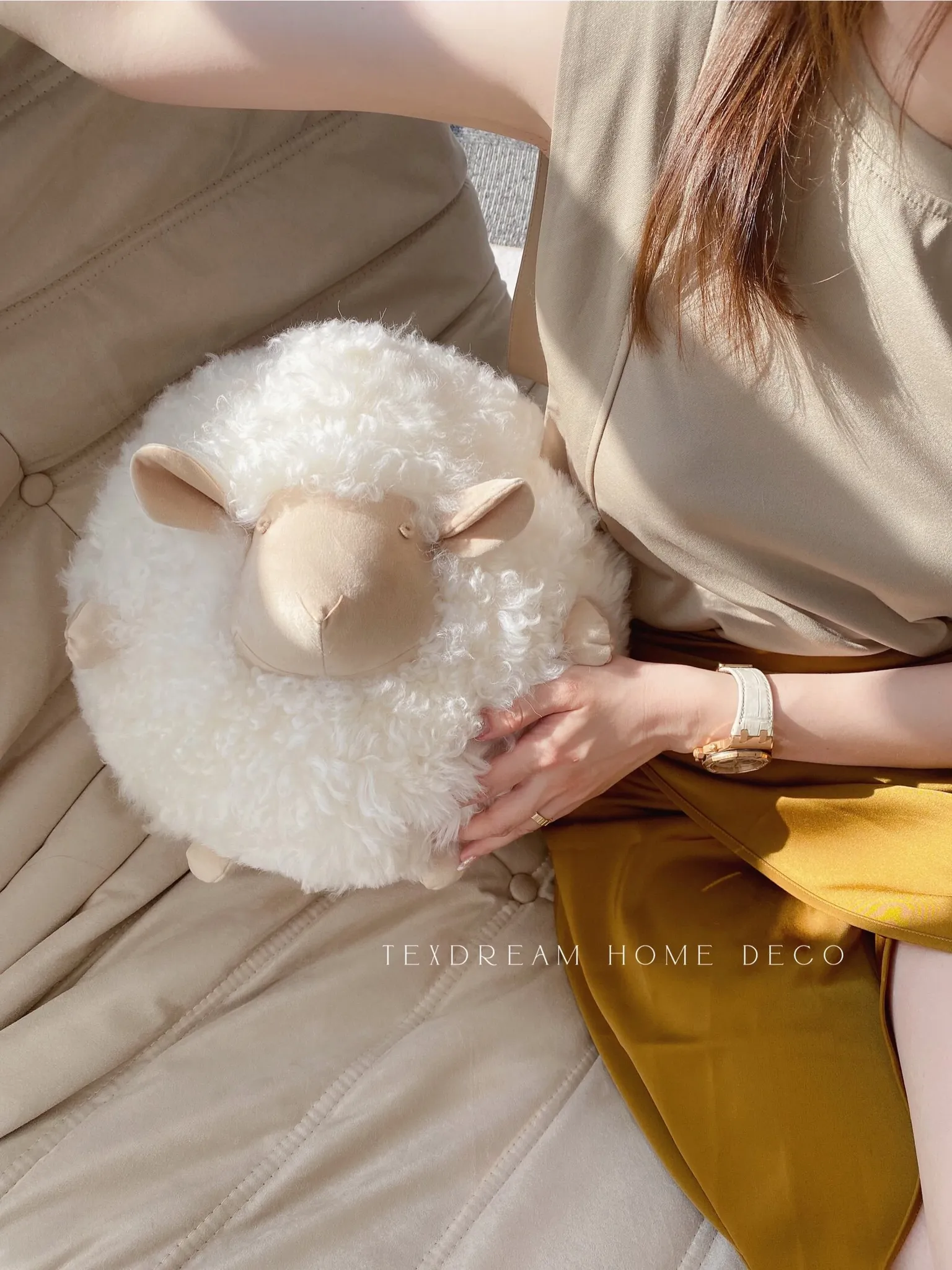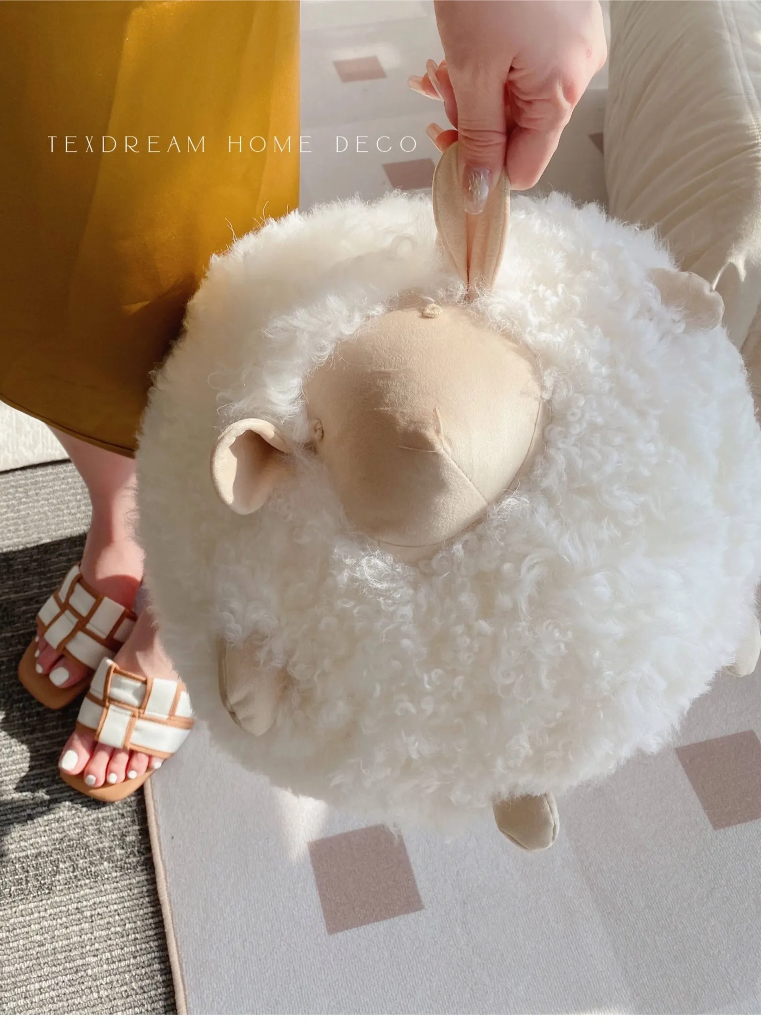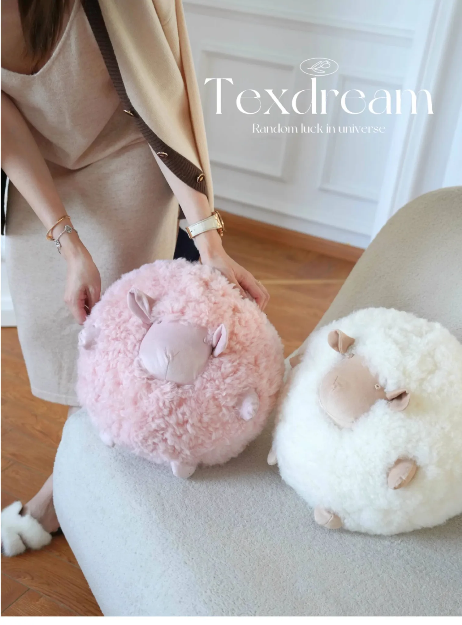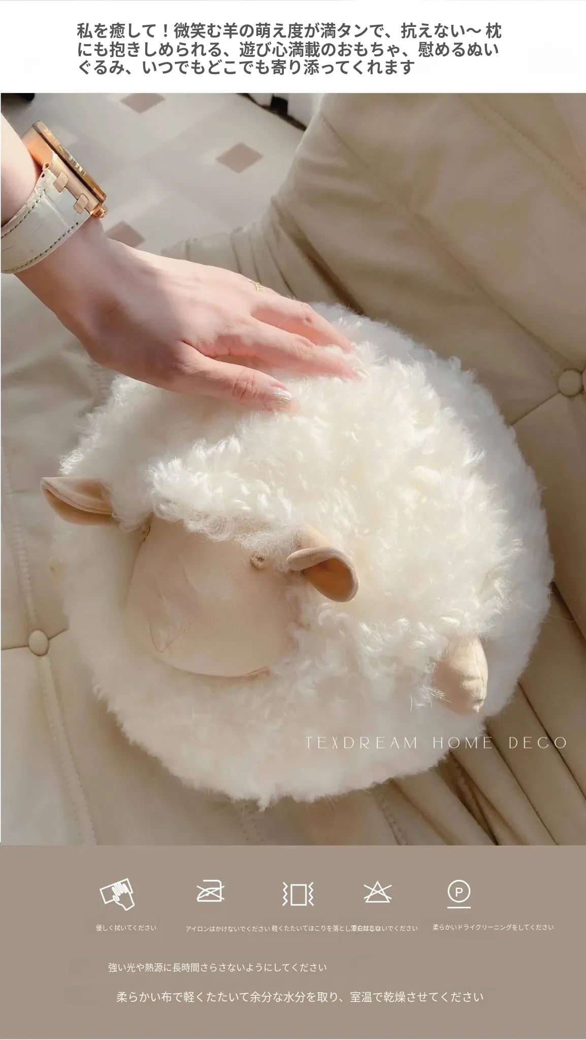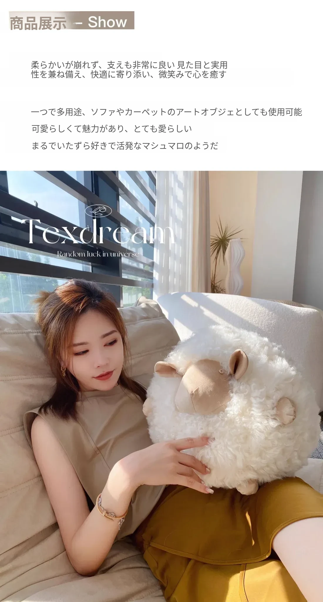 テックスドリームのマリーの子羊 可愛いキャラクターの真羊毛ラウンドクッション おしゃれなリビングのアクセントに最適!