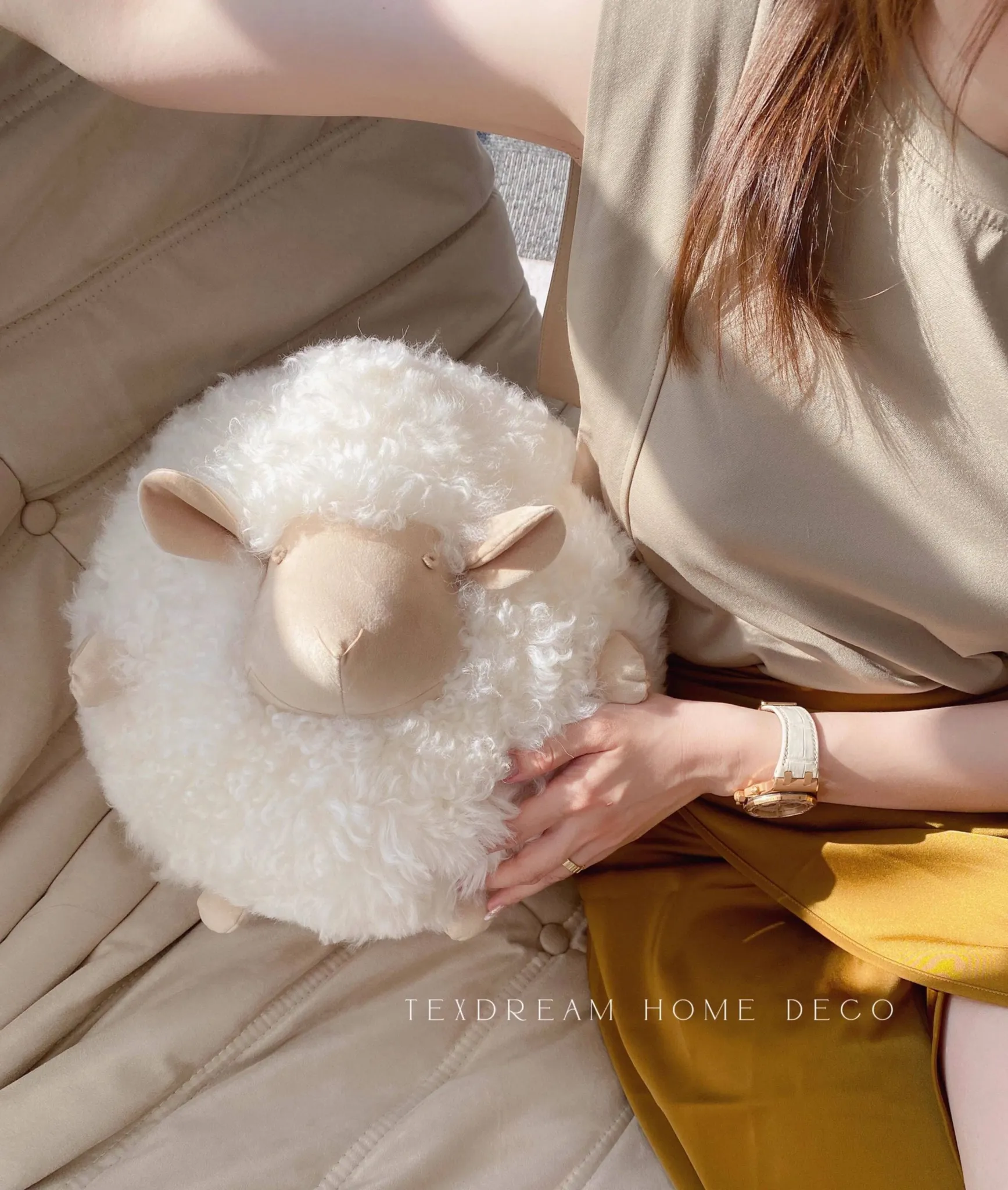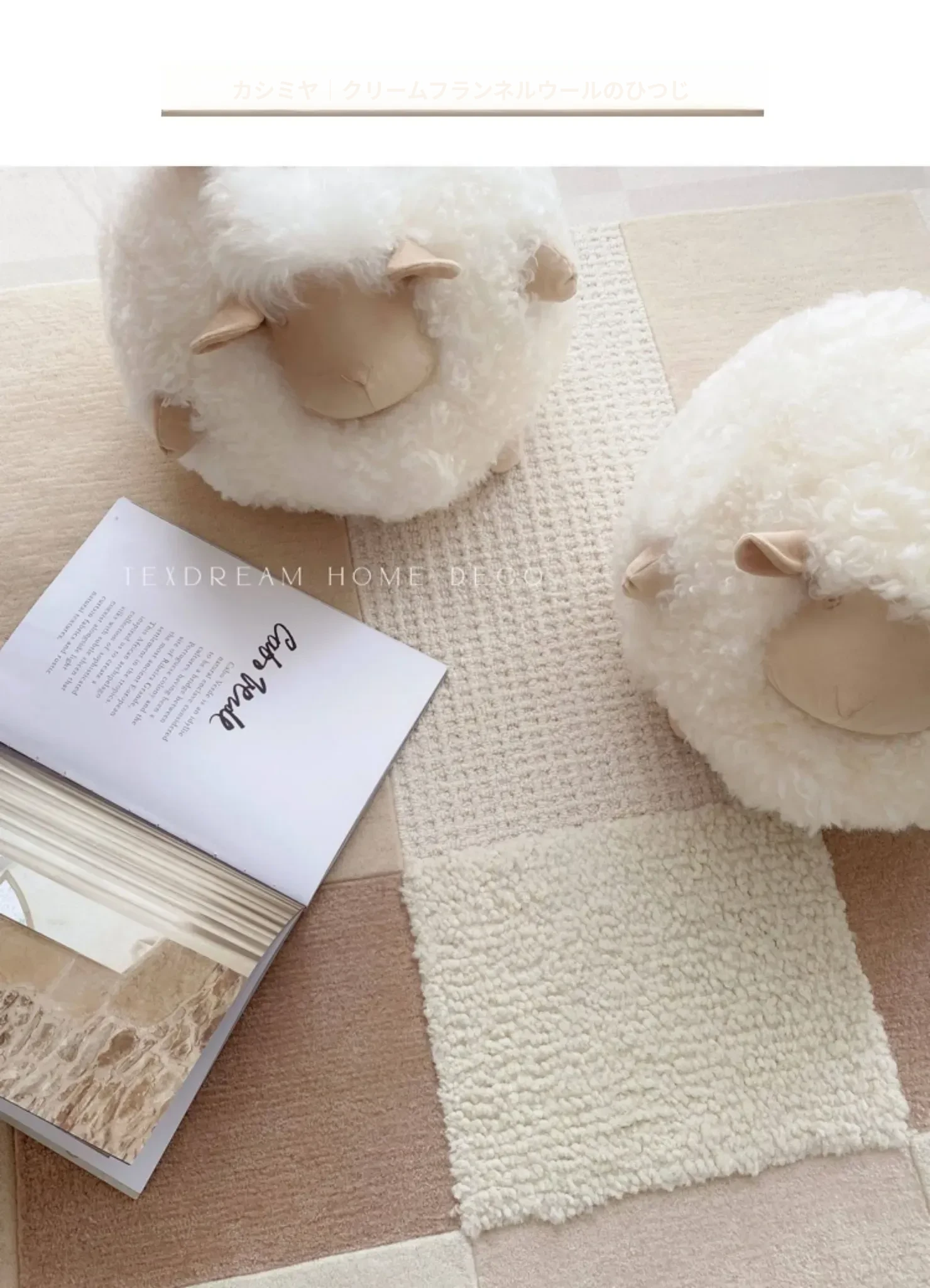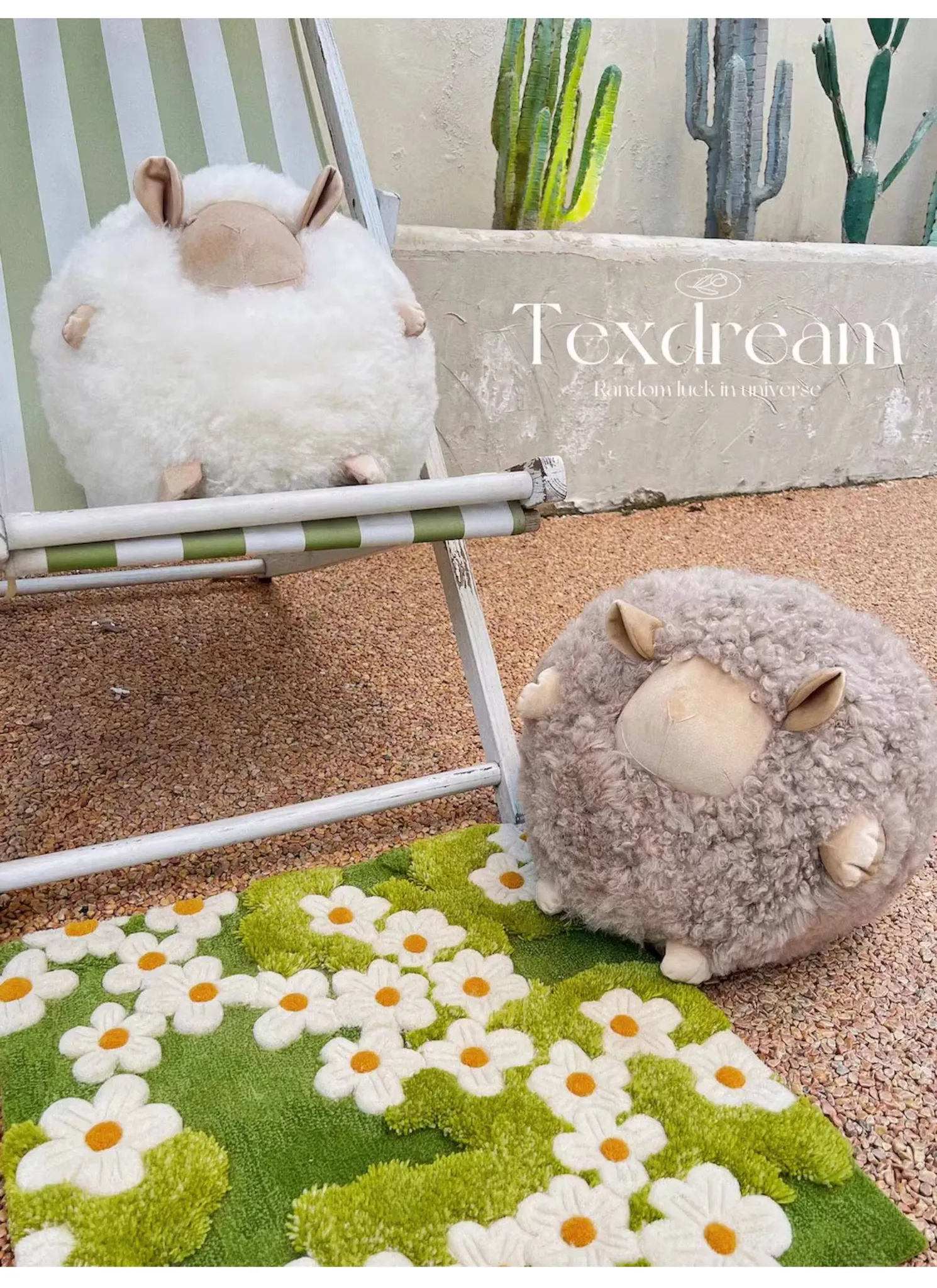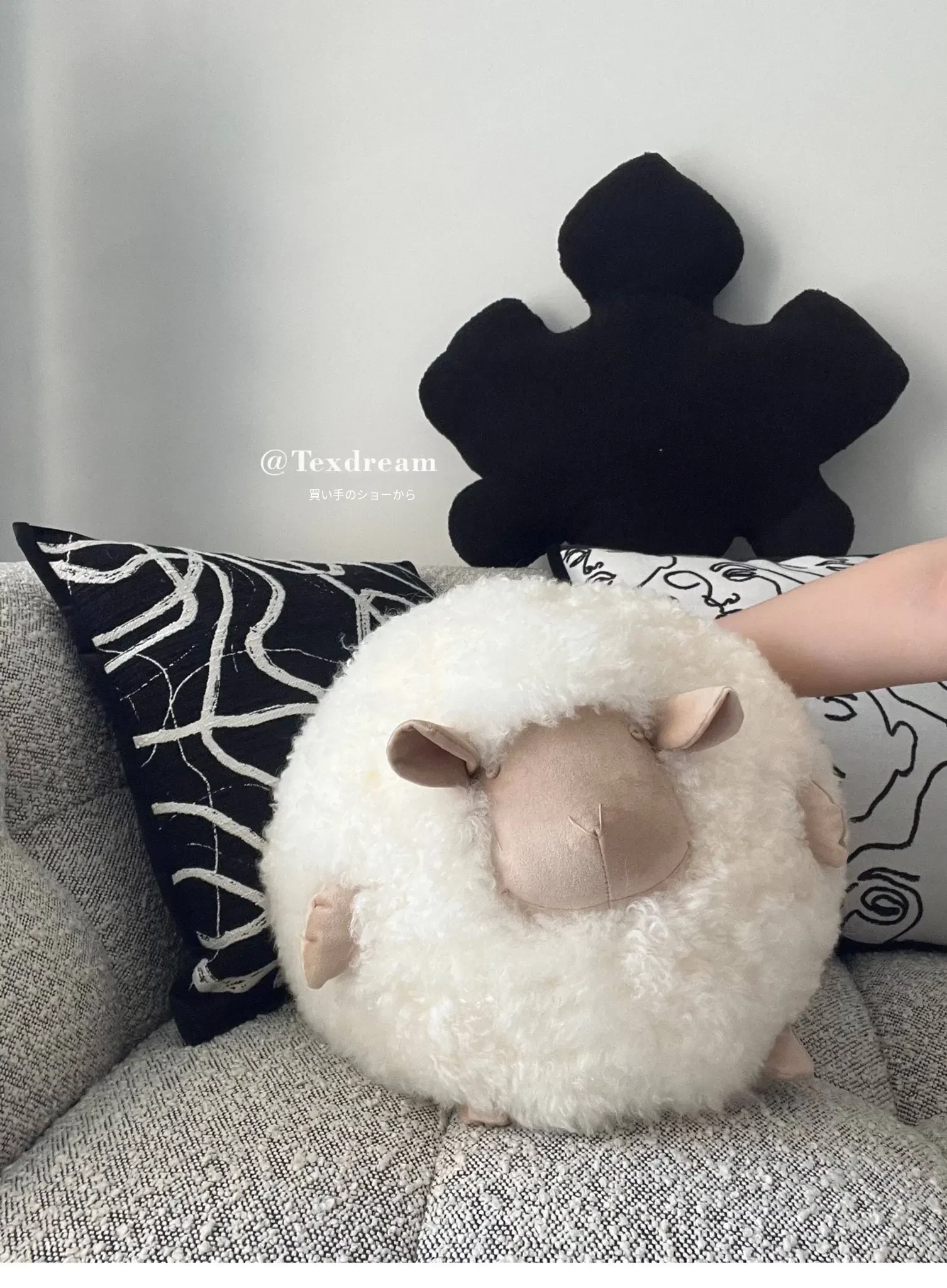 テックスドリームのマリーの子羊 可愛いキャラクターの真羊毛ラウンドクッション おしゃれなリビングのアクセントに最適!