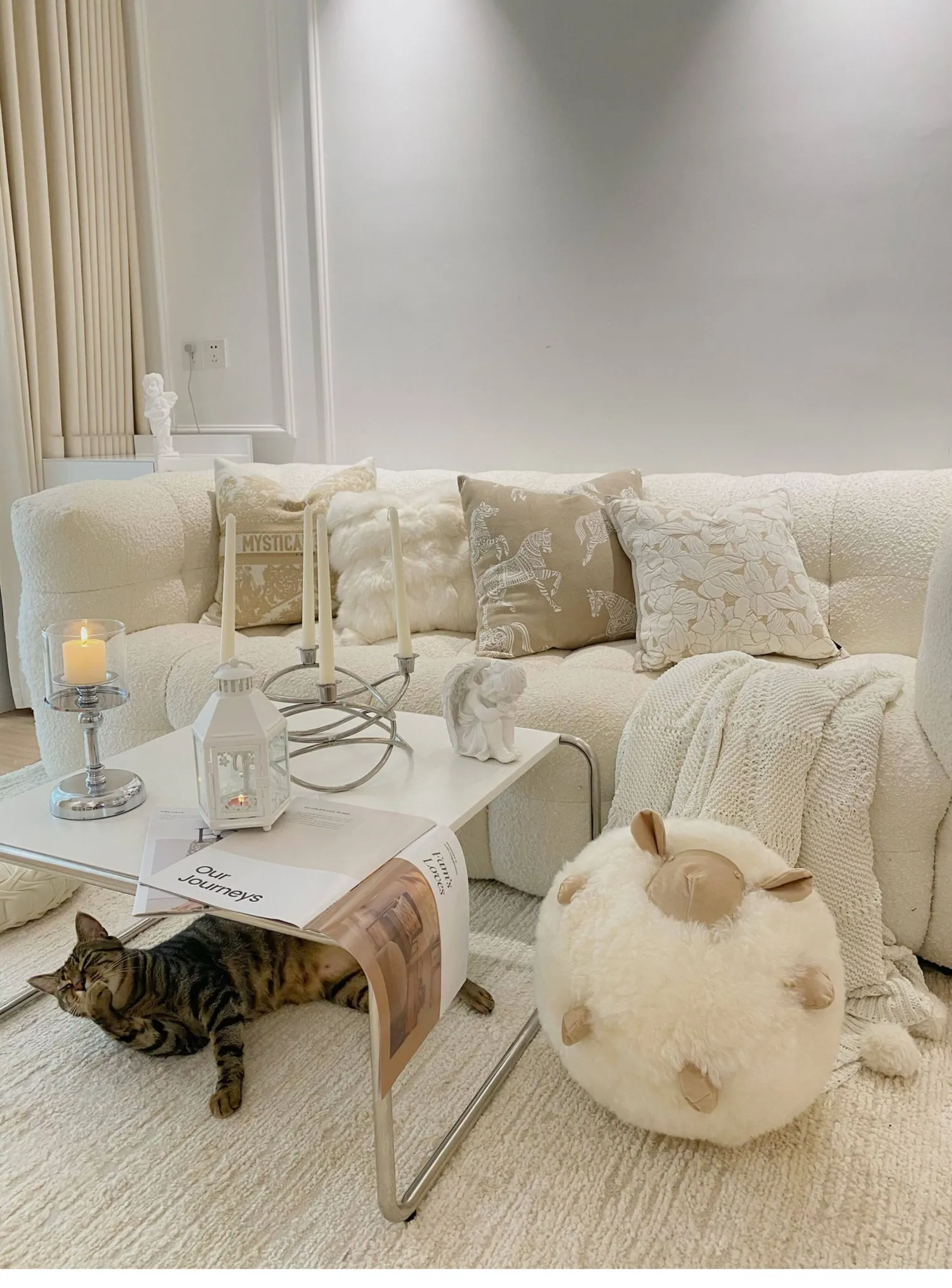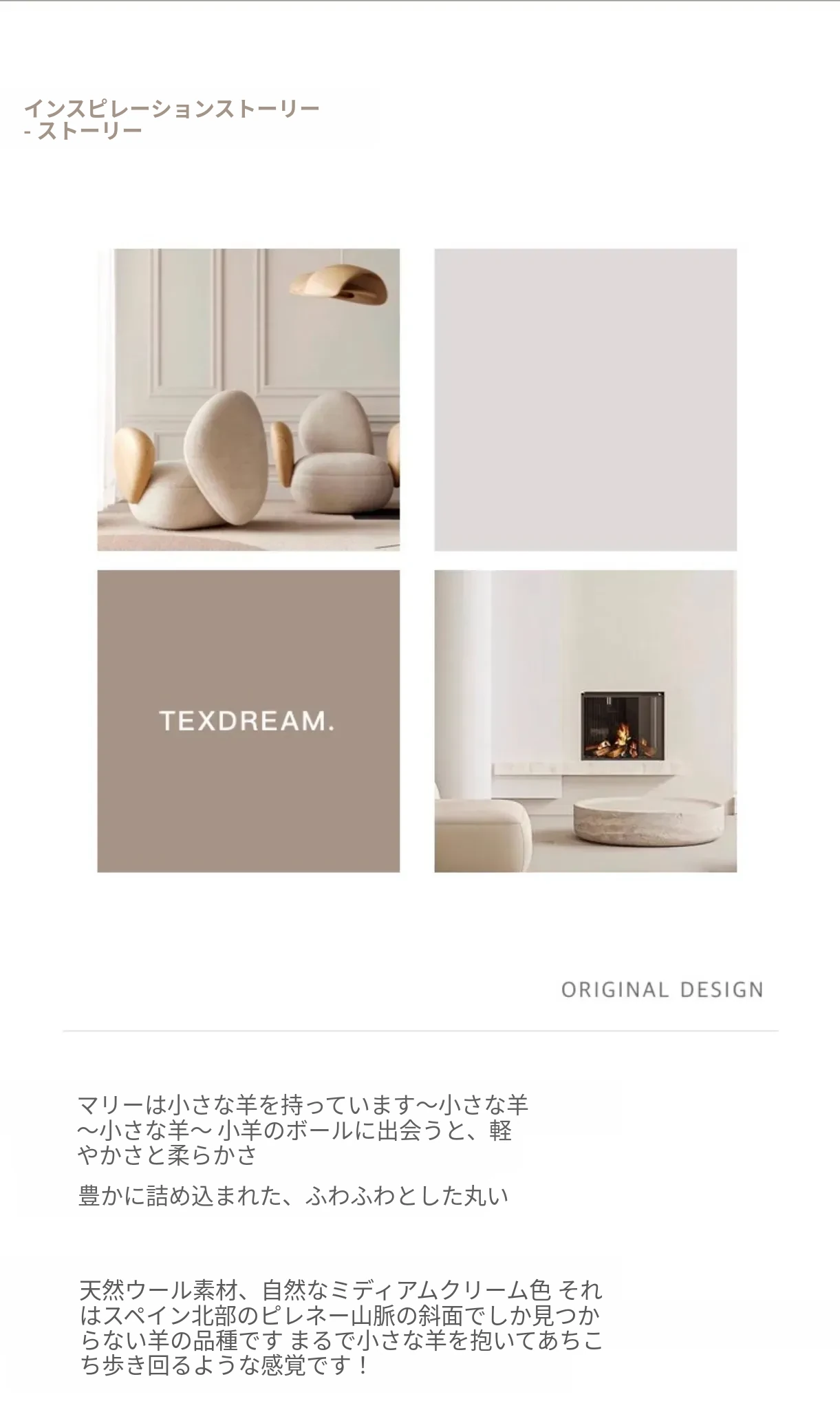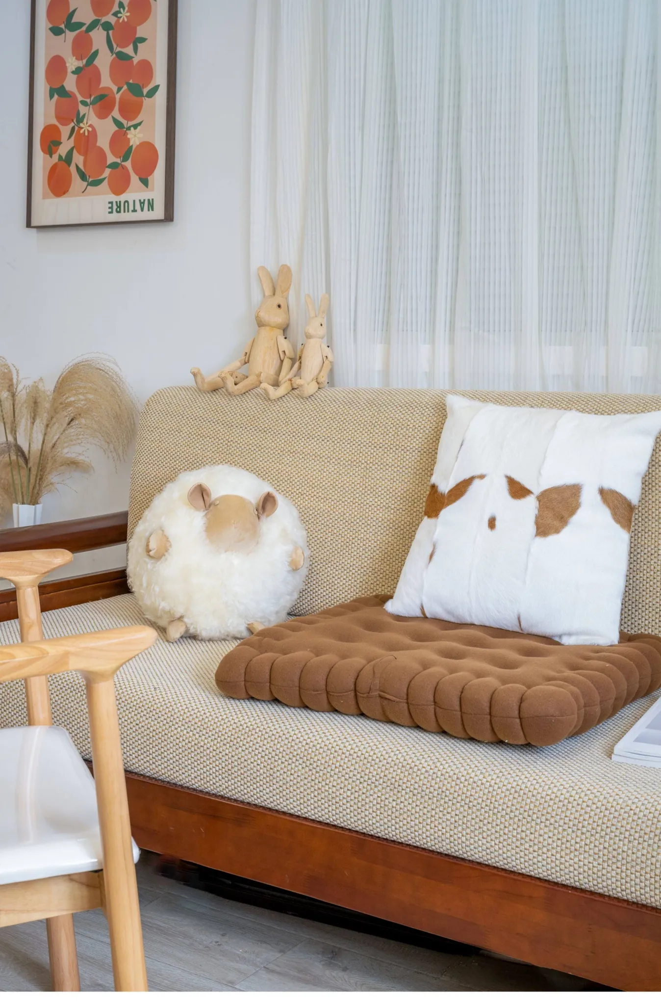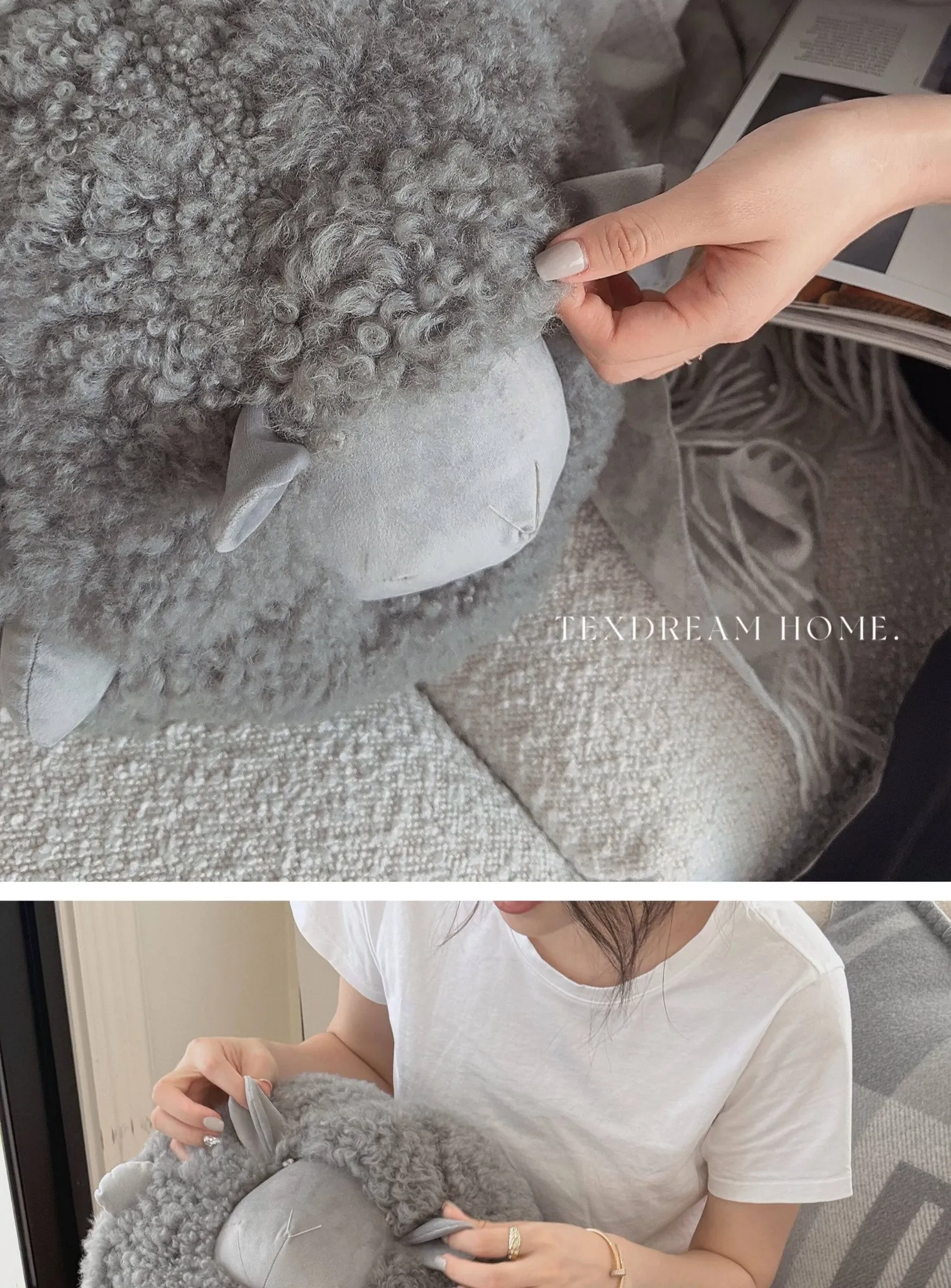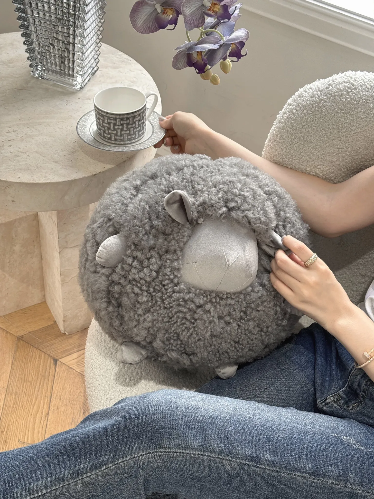 テックスドリームのマリーの子羊 可愛いキャラクターの真羊毛ラウンドクッション おしゃれなリビングのアクセントに最適!