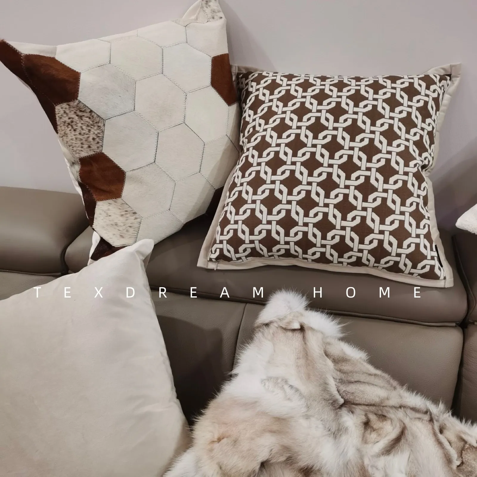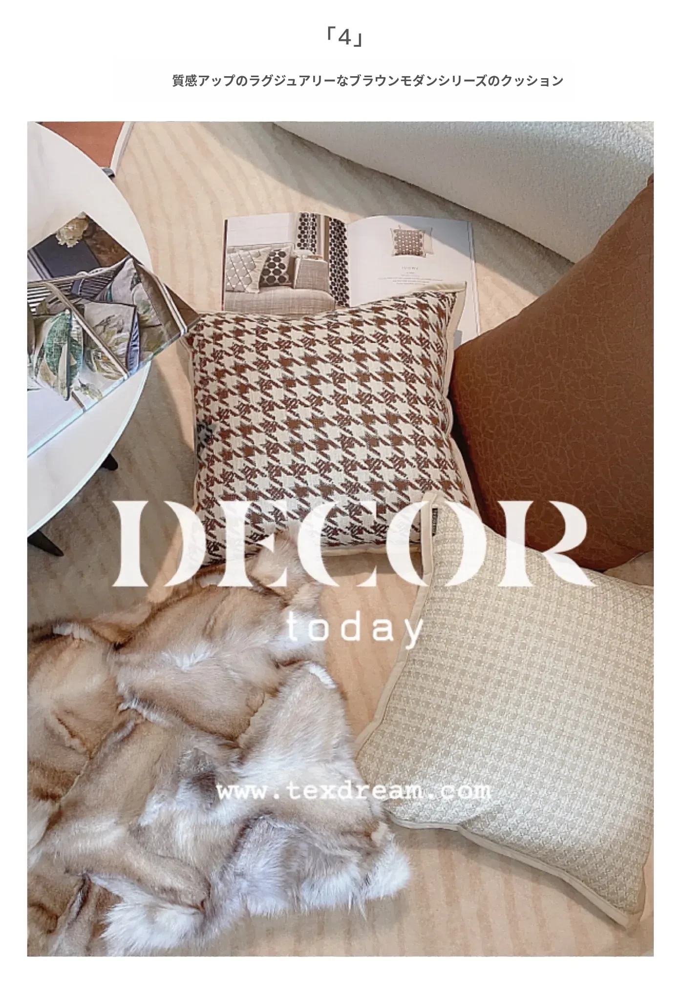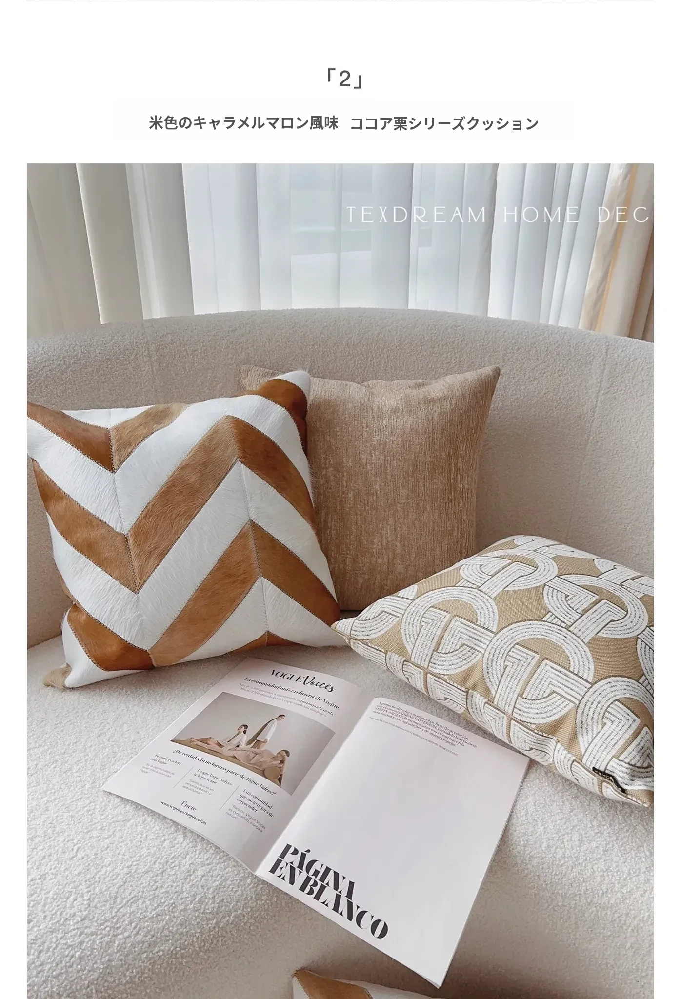 Texdreamのスタイル!ミルクティーブラウンのシンプルでモダンなサンプルルーム用リビングソファクッションカバー、クッション付きで快適さとスタイルを両立!