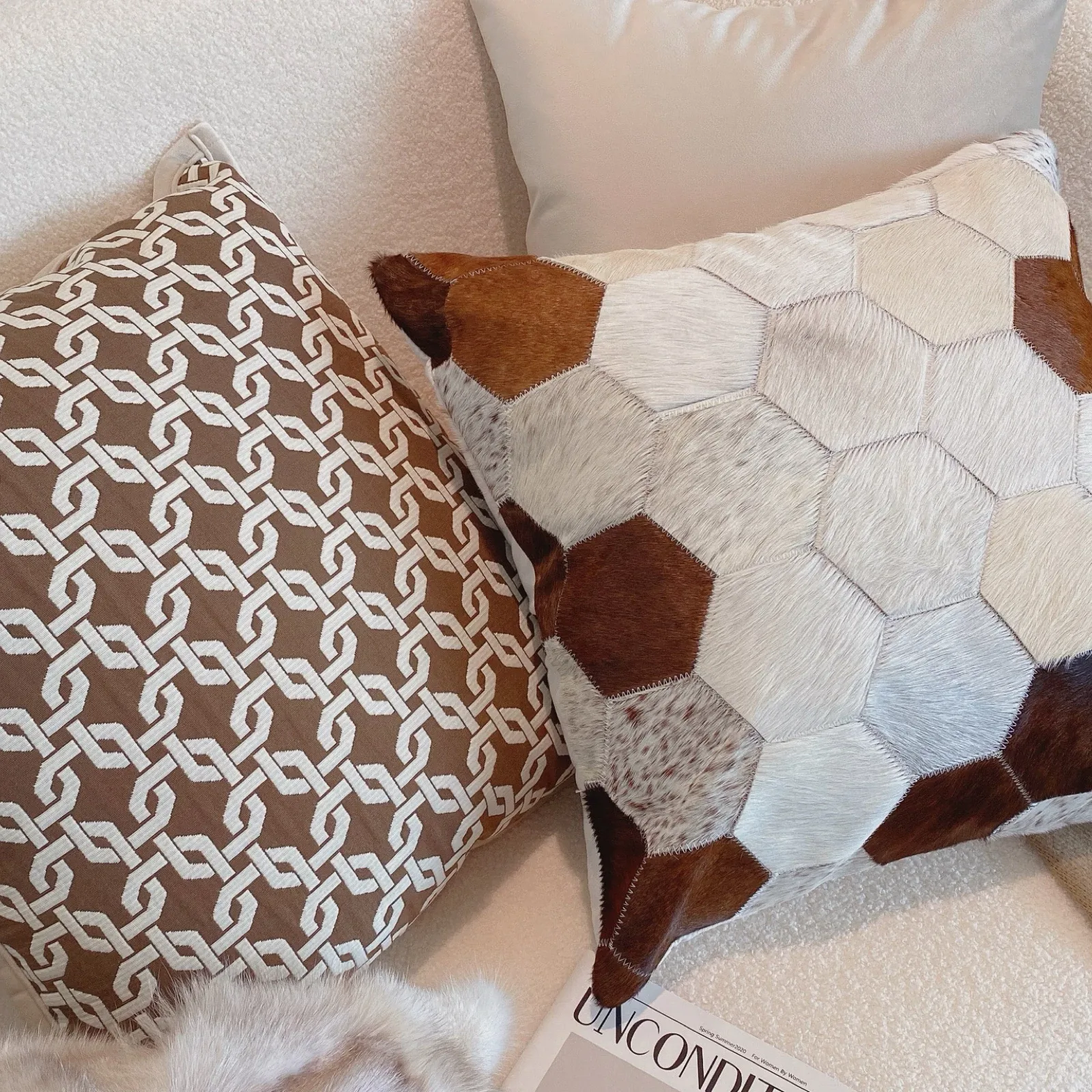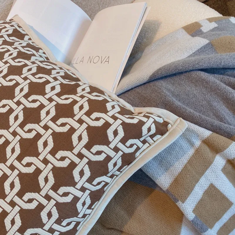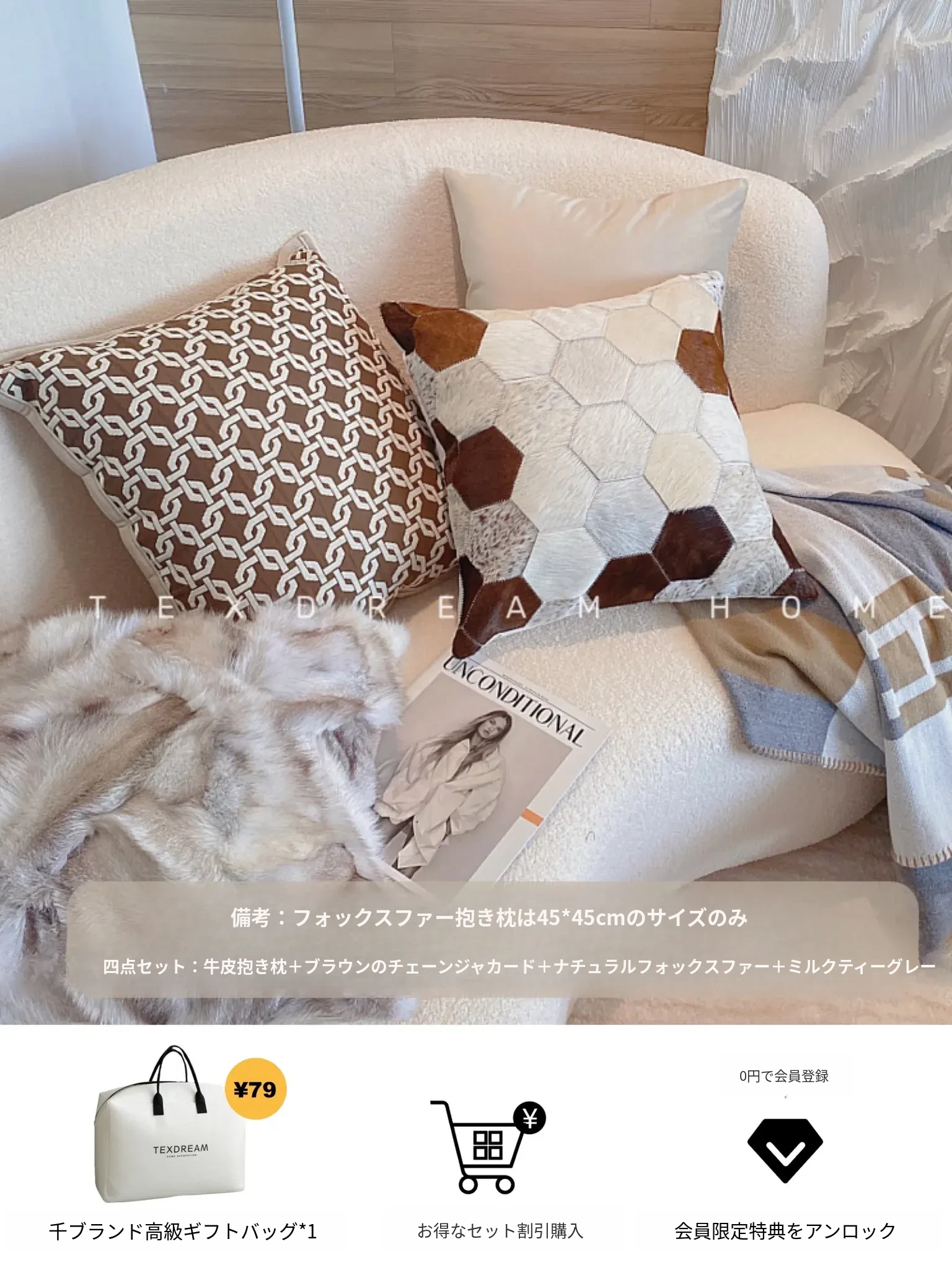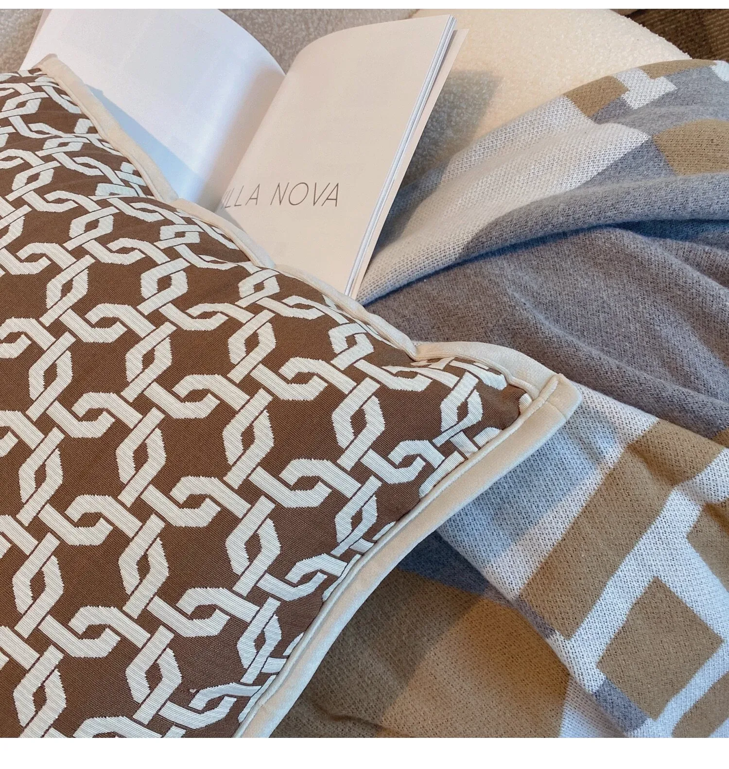 Texdreamのスタイル!ミルクティーブラウンのシンプルでモダンなサンプルルーム用リビングソファクッションカバー、クッション付きで快適さとスタイルを両立!