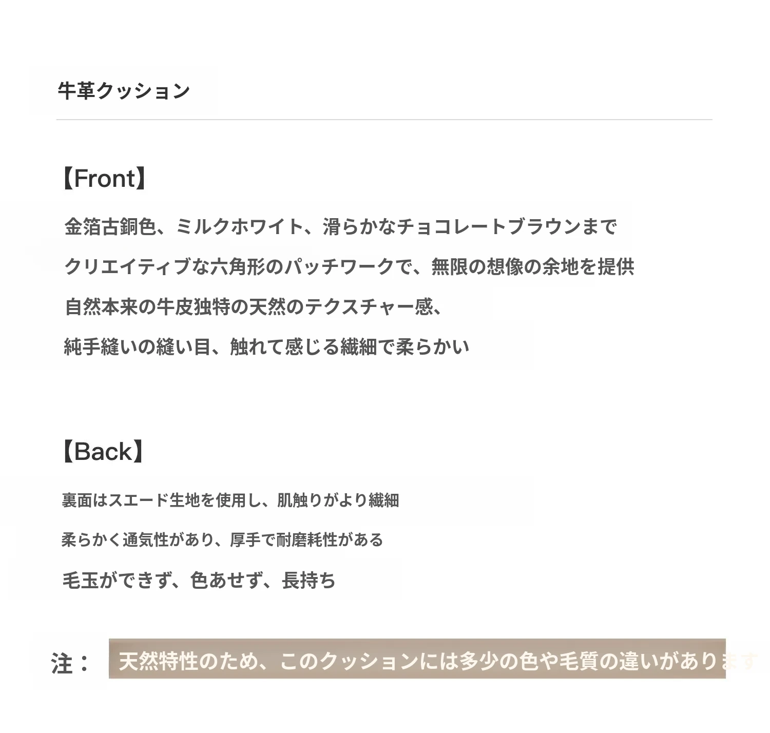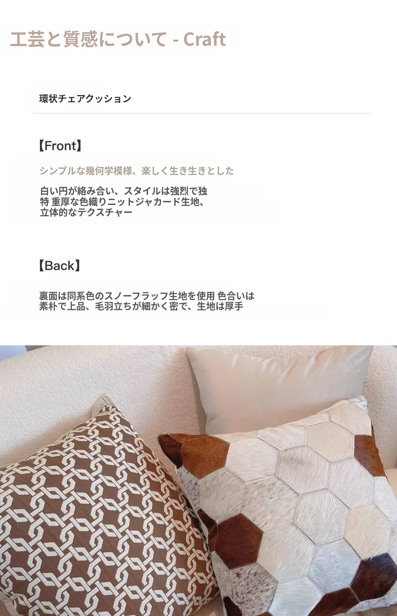 【クッションカバーの説明 | デフォルトのクッションはカバーより5cm大きい】