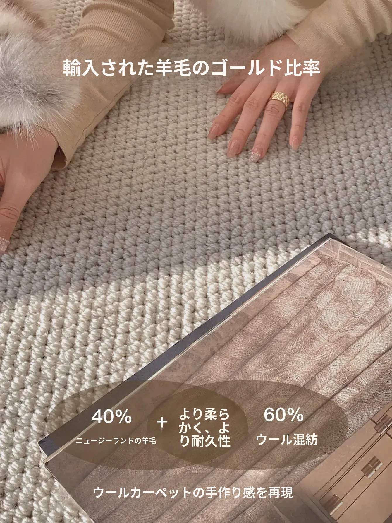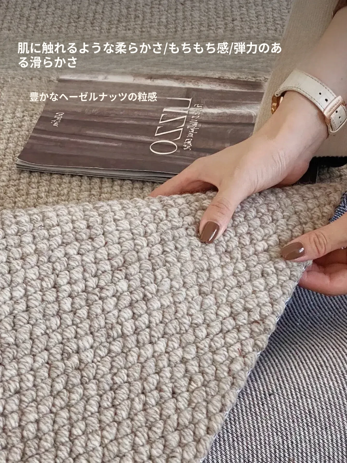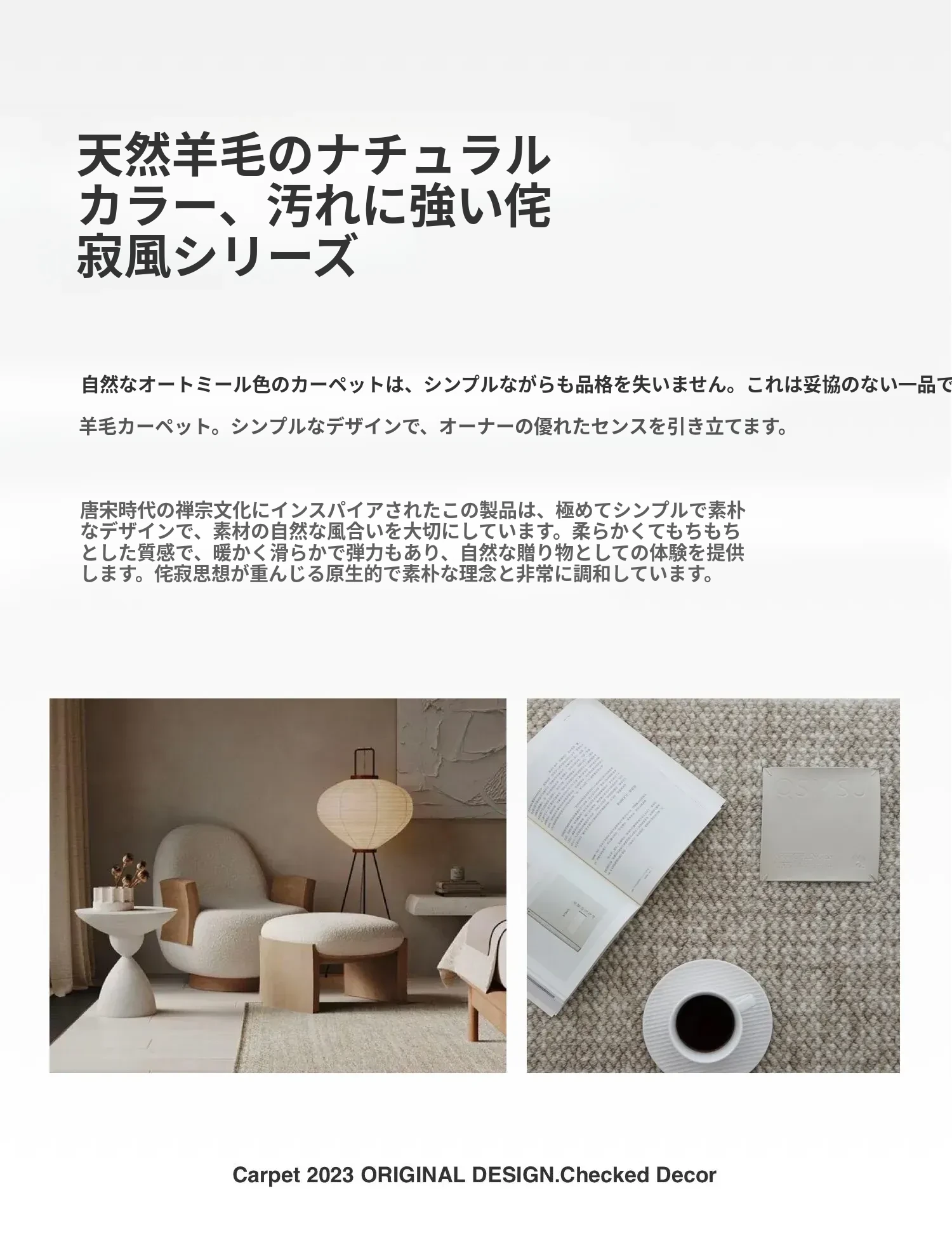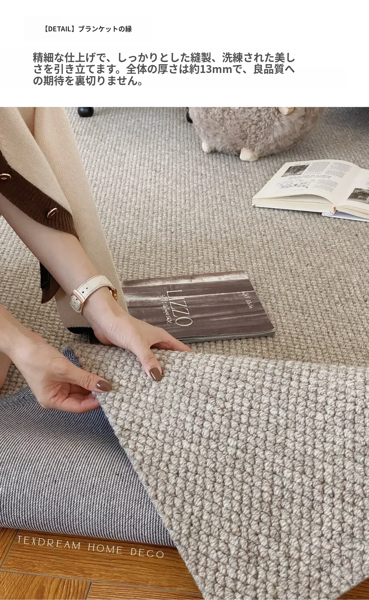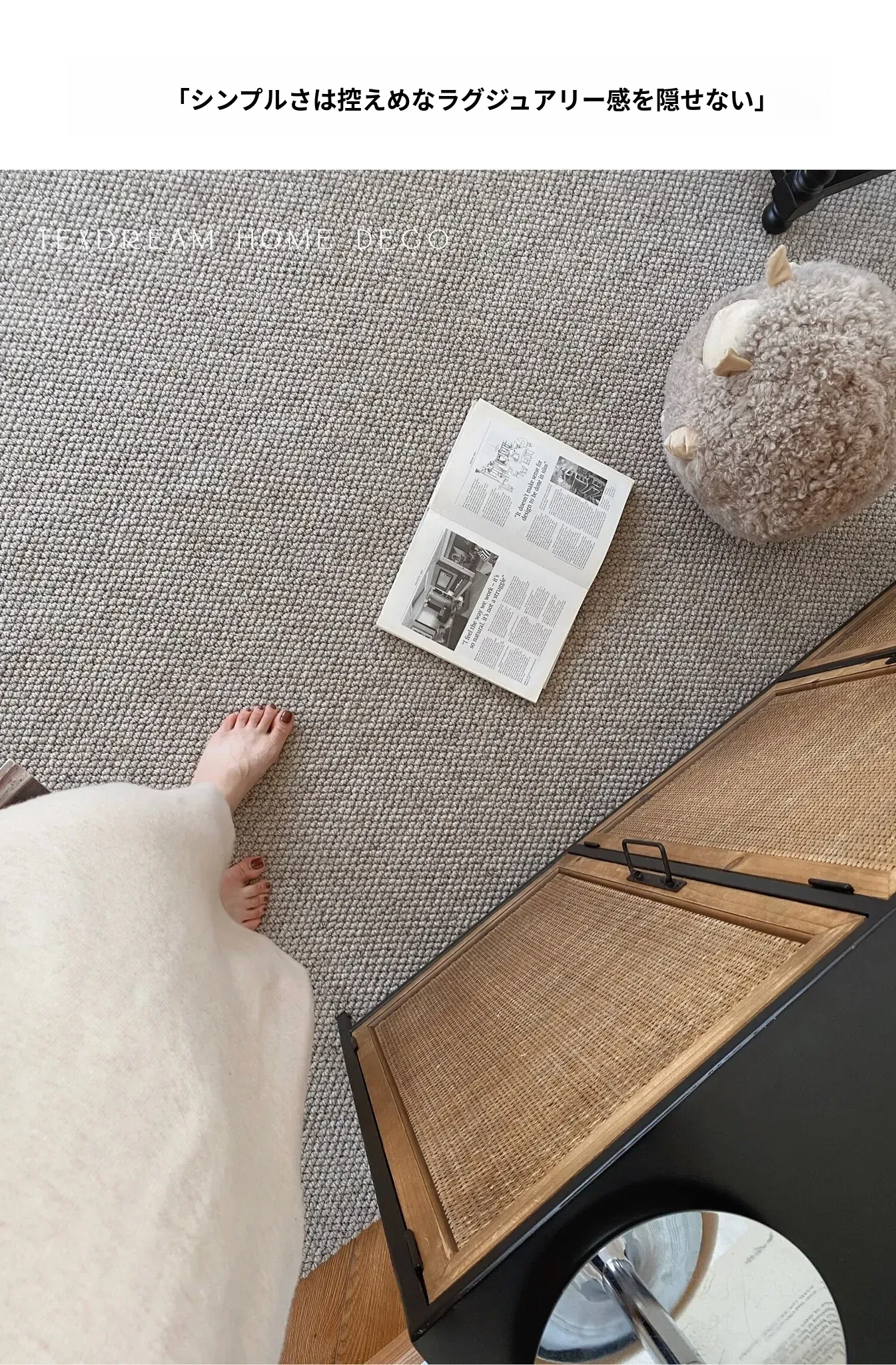 Texdreamのシンプルで洗練されたインポートウールラグ - 和の美を感じる侘び寂びデザイン、リビングや寝室にぴったりな高級感あふれる耐汚れマット!