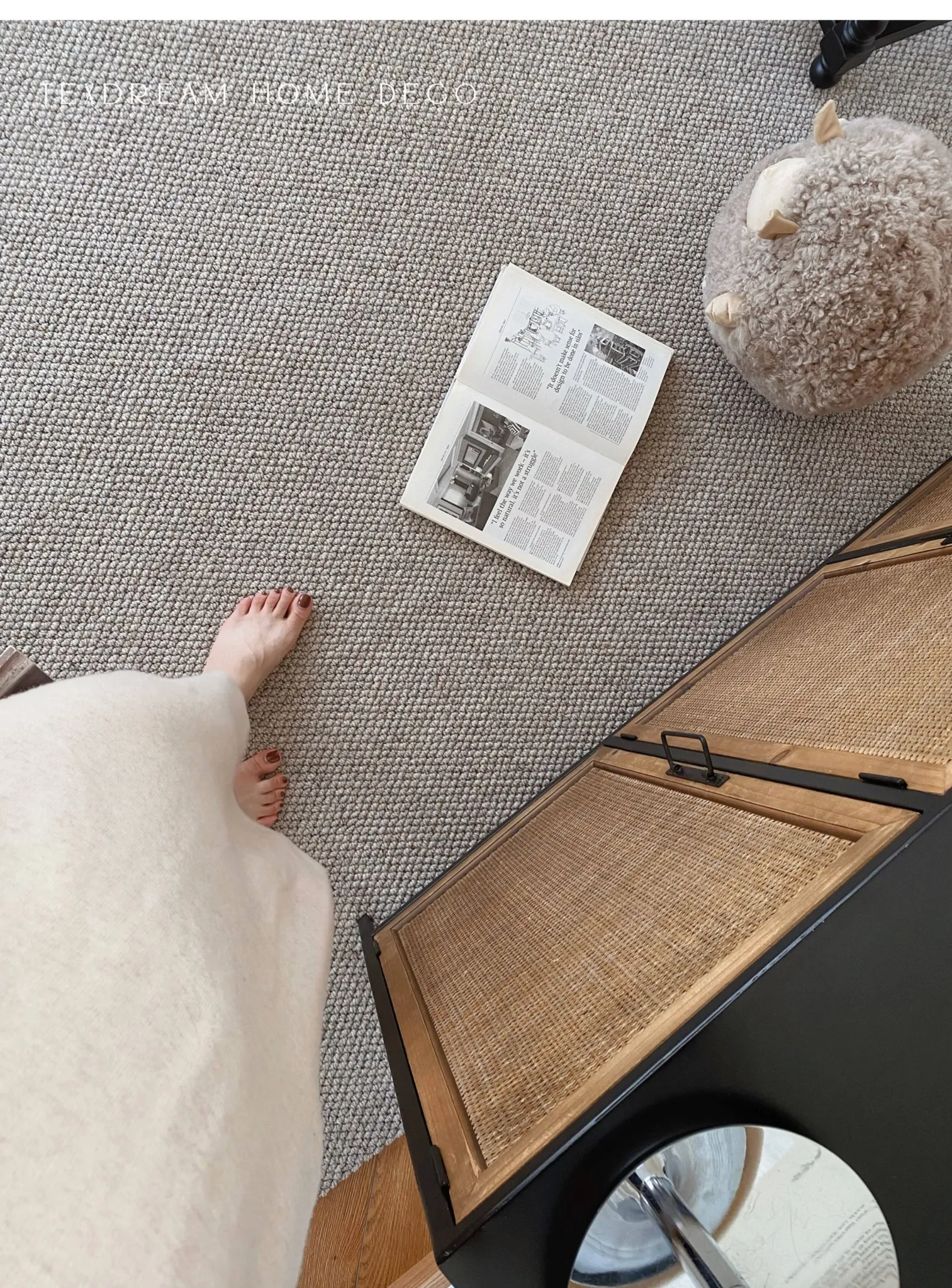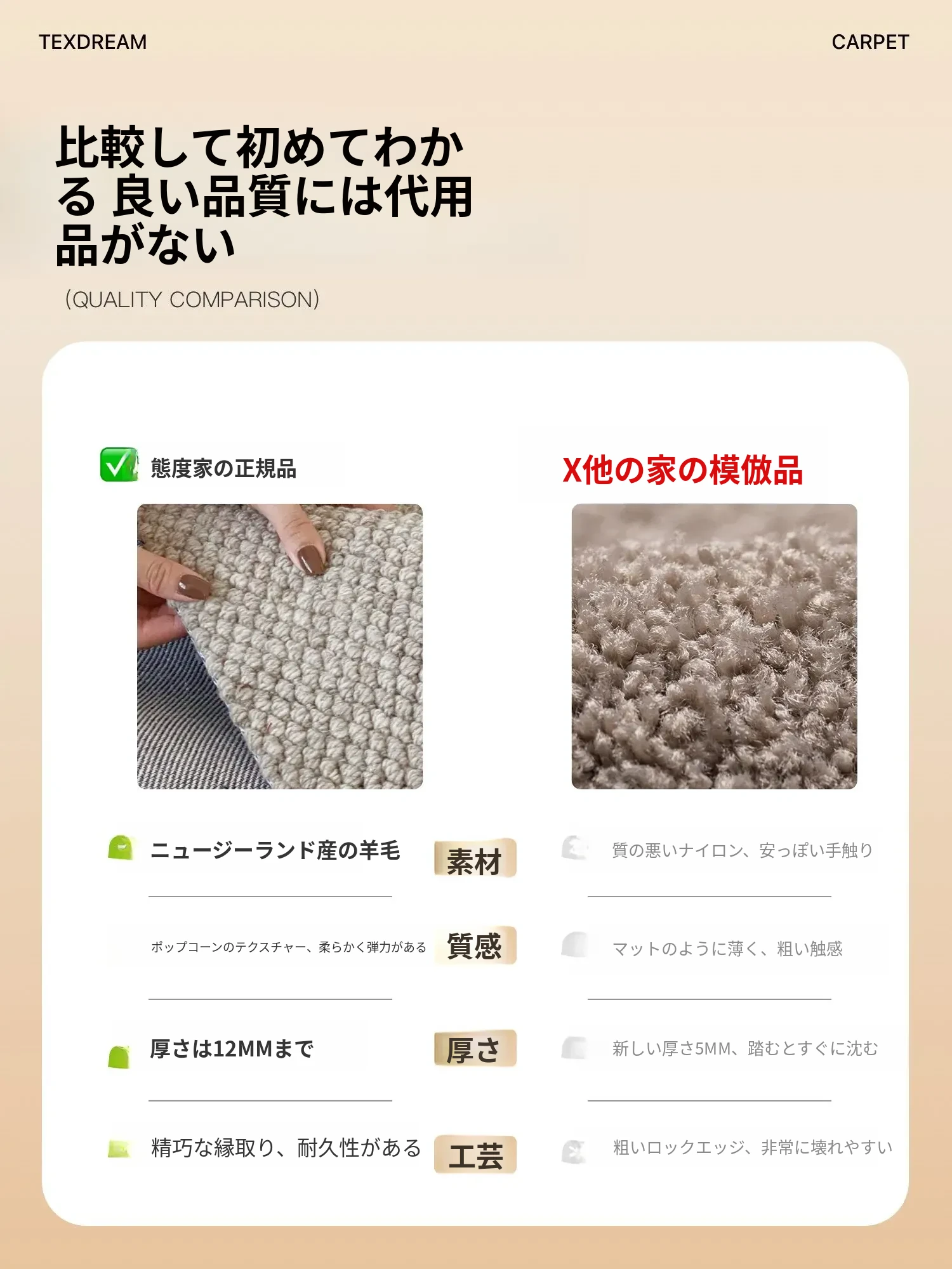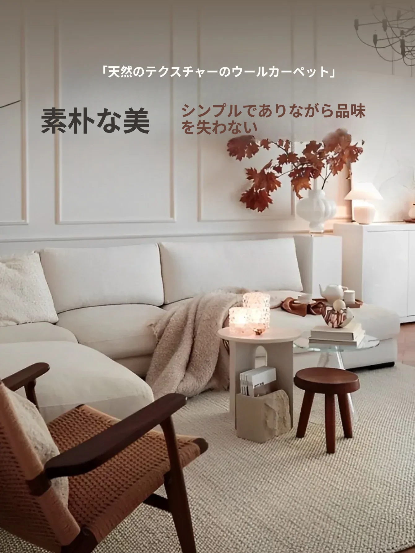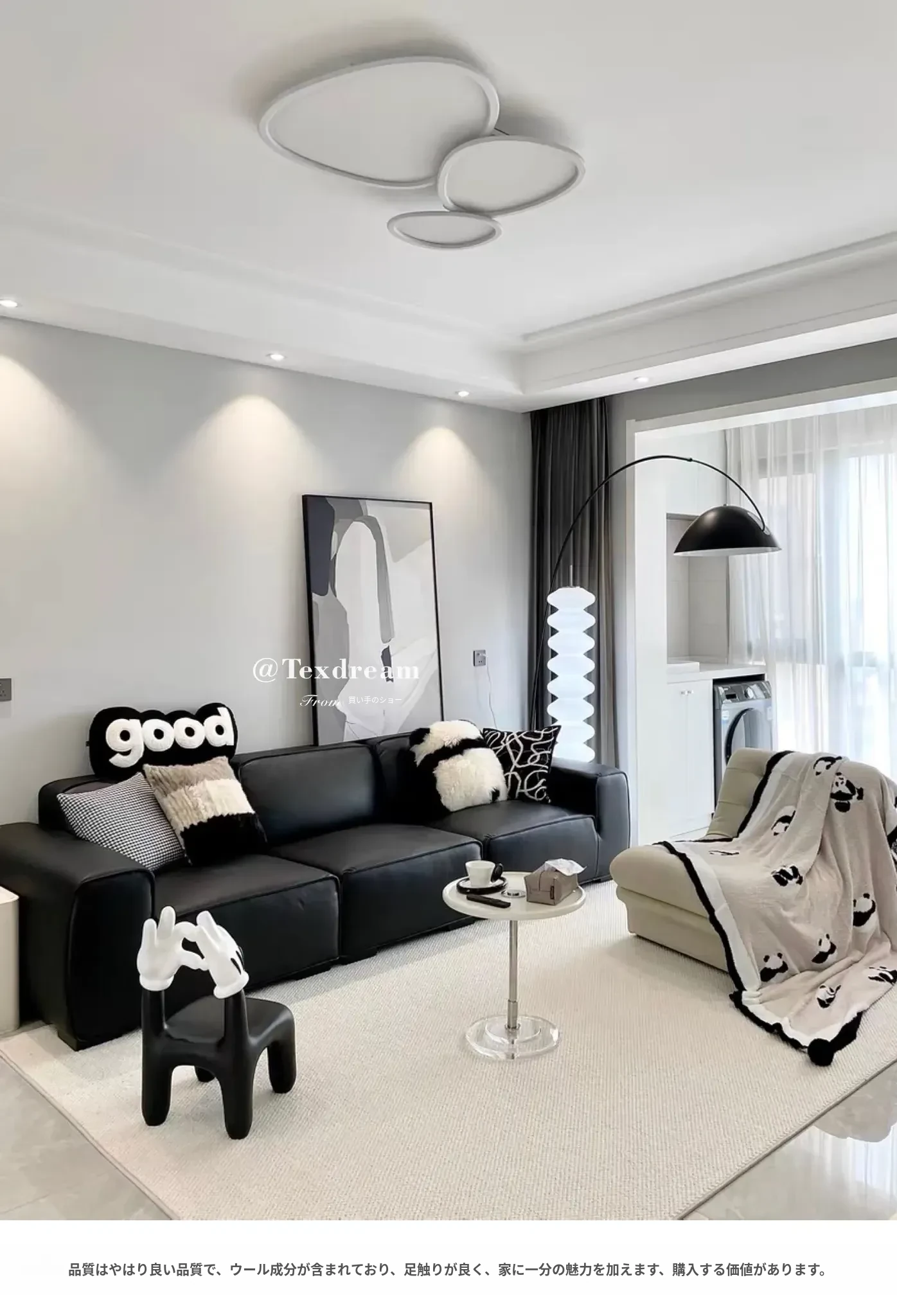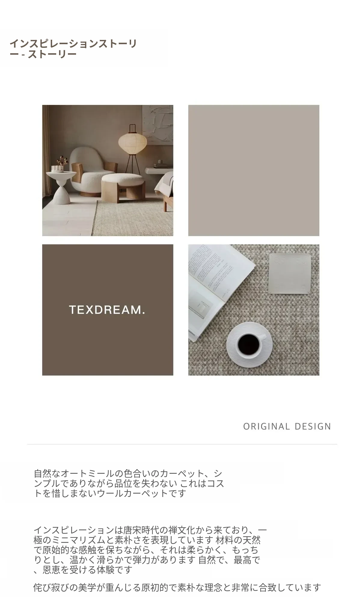 Texdreamのシンプルで洗練されたインポートウールラグ - 和の美を感じる侘び寂びデザイン、リビングや寝室にぴったりな高級感あふれる耐汚れマット!