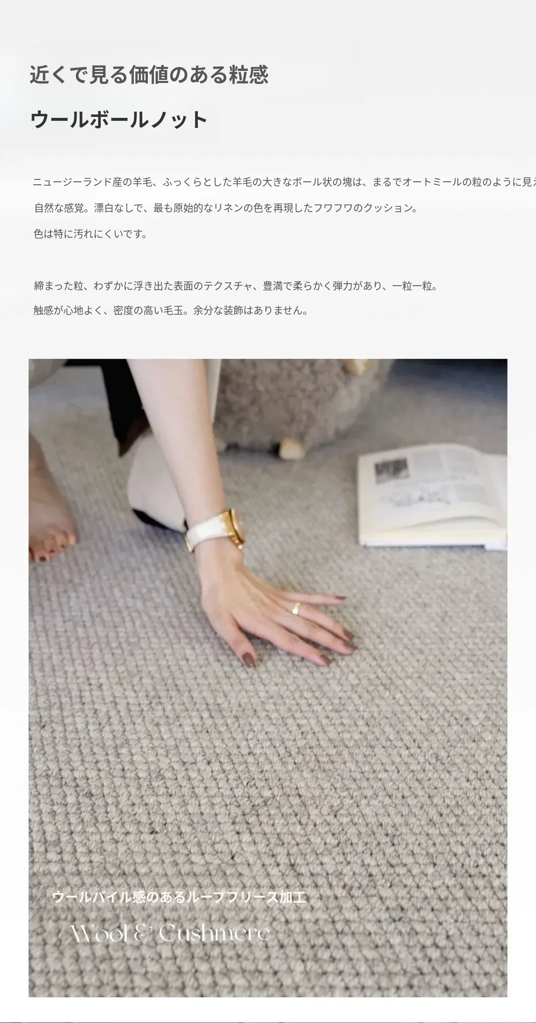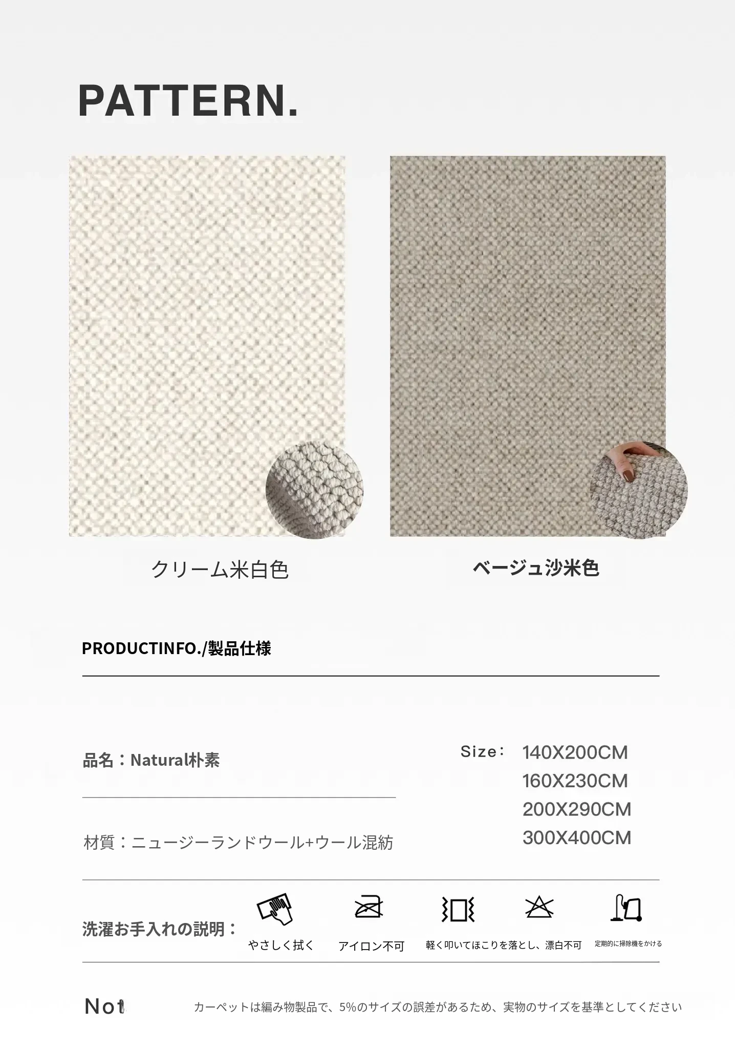 【シンプル-アイボリー色 | ニュージーランドウールの原色カーペット】