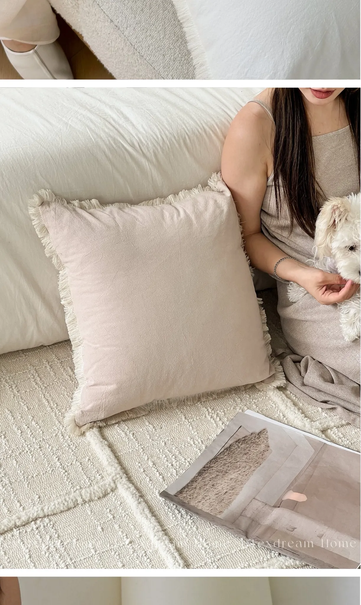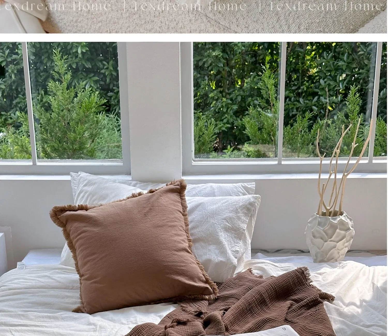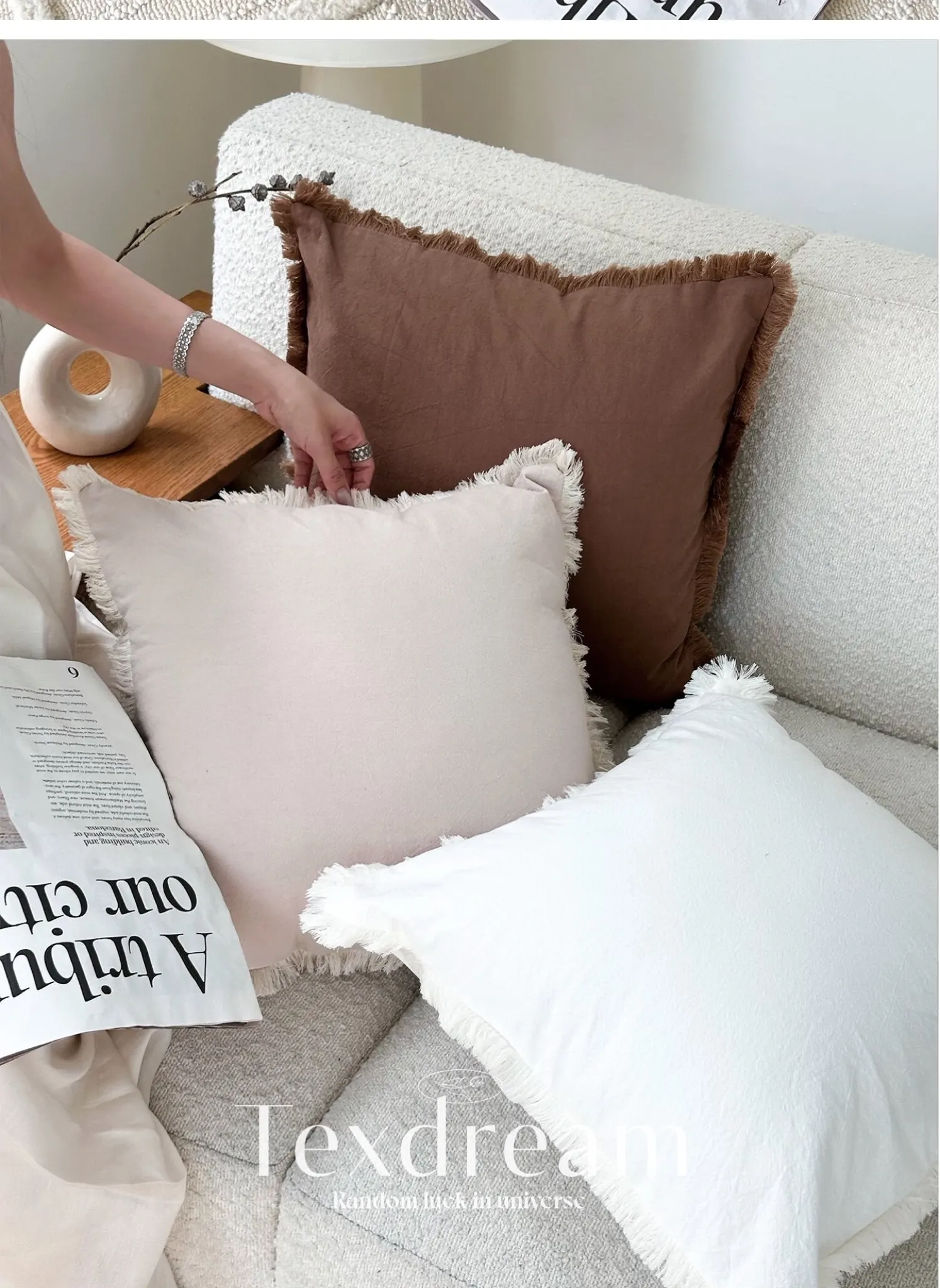 TEXDREAMの姿勢を表現する、侘寂スタイルのソファクッションカバー。インスタ映えするシンプルなデザインで、宿泊施設やモデルルームにも最適!心地よい寝室のアクセントに。