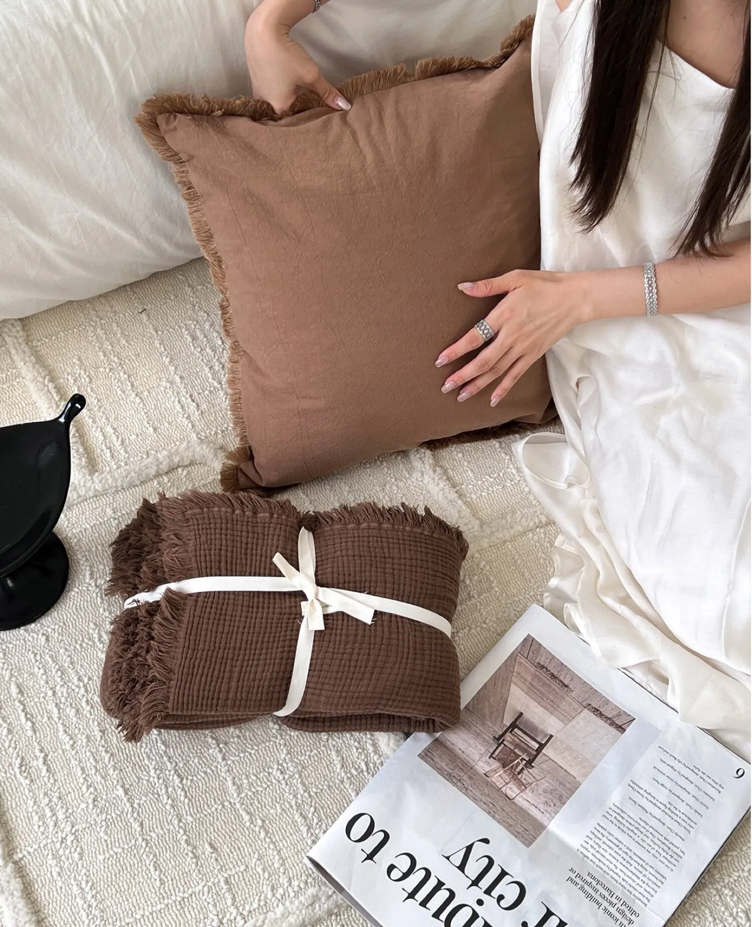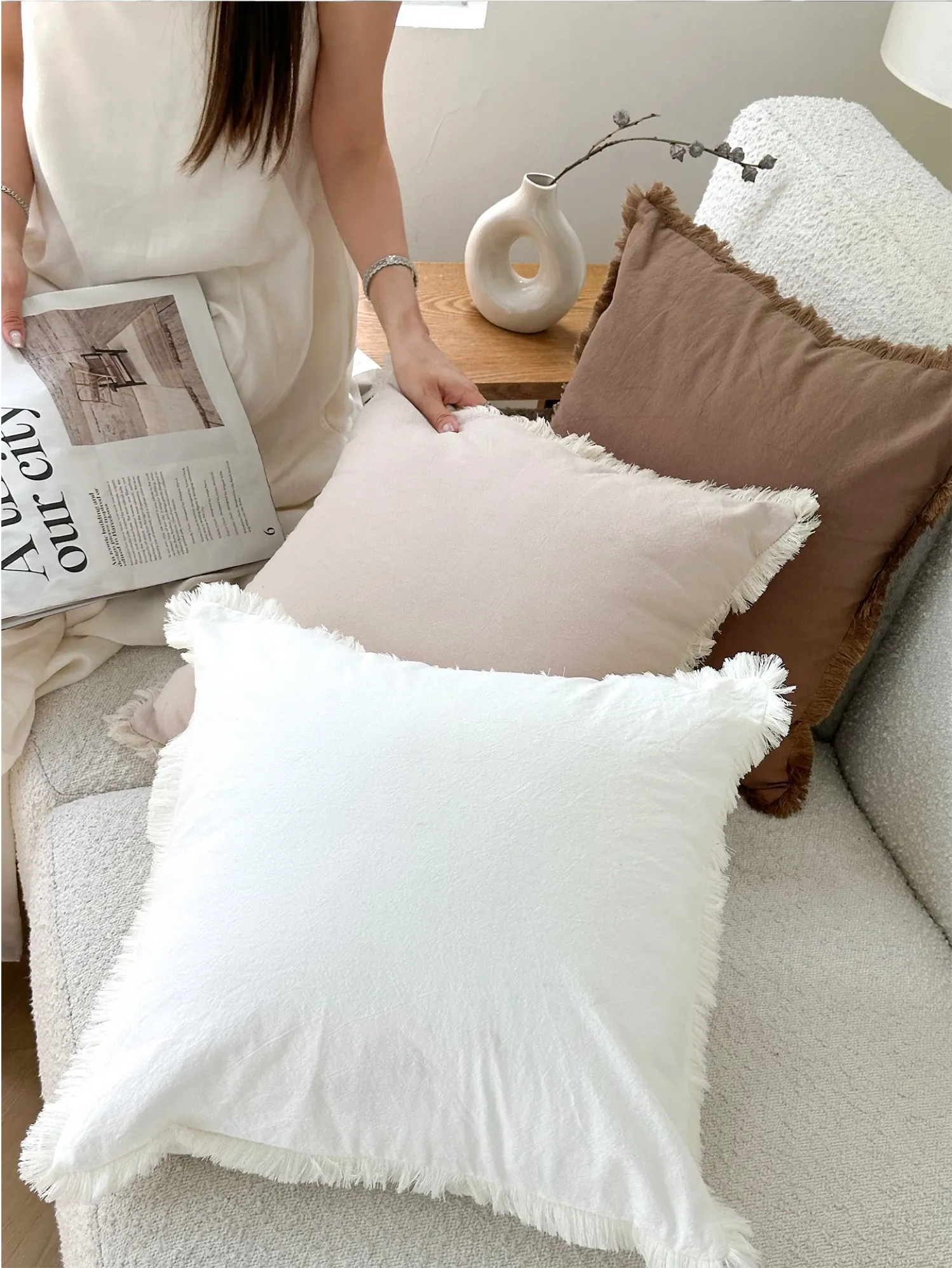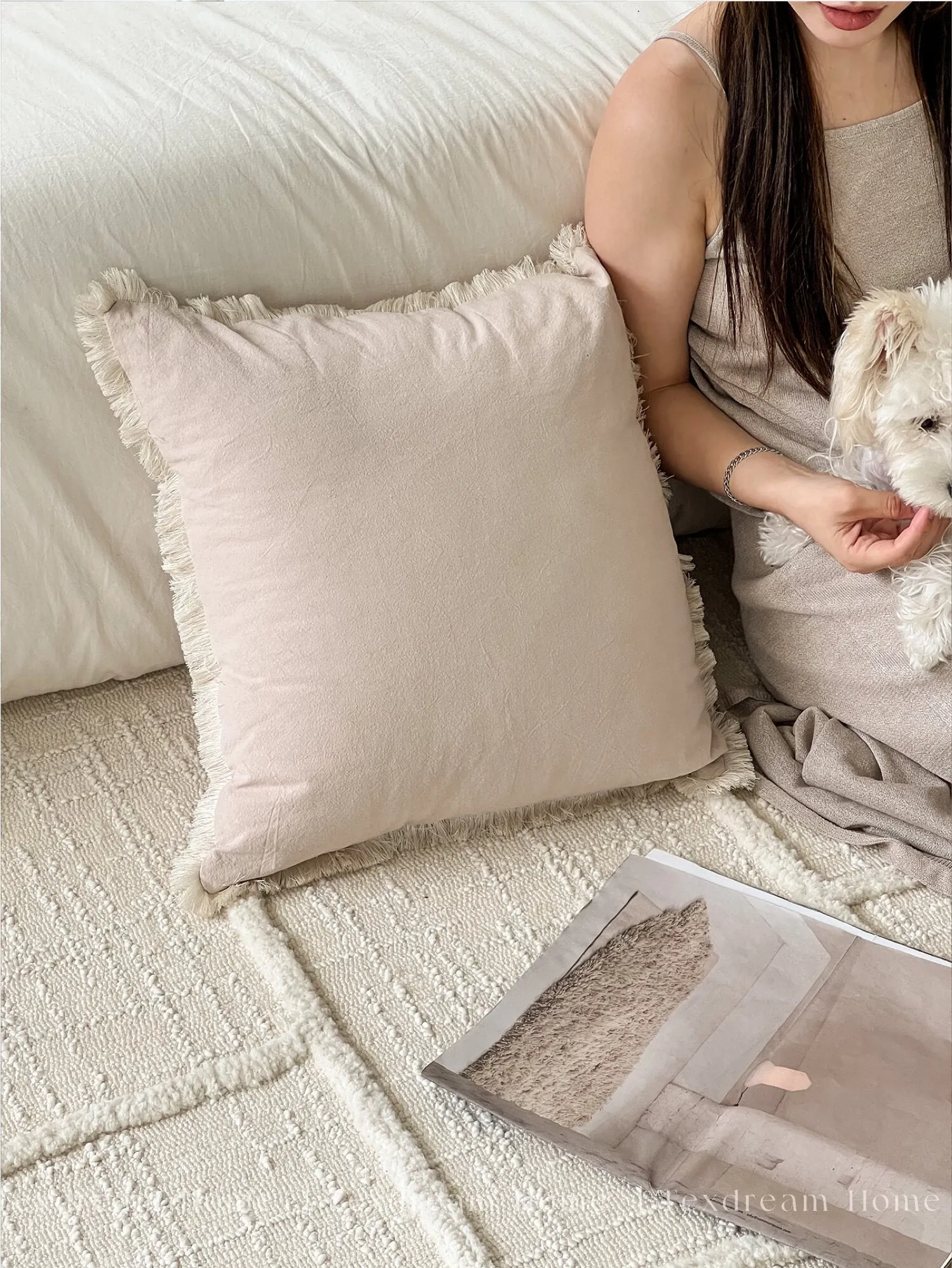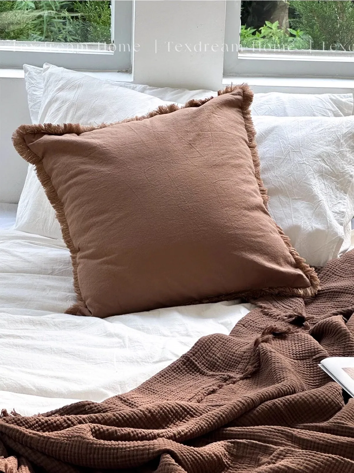 TEXDREAMの姿勢を表現する、侘寂スタイルのソファクッションカバー。インスタ映えするシンプルなデザインで、宿泊施設やモデルルームにも最適!心地よい寝室のアクセントに。
