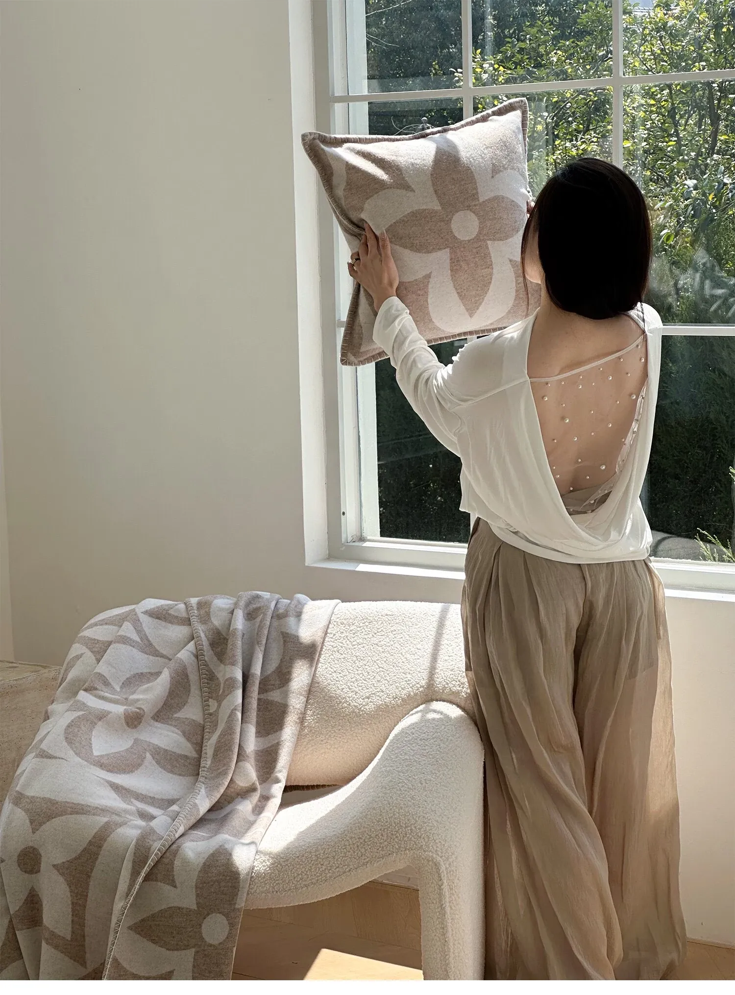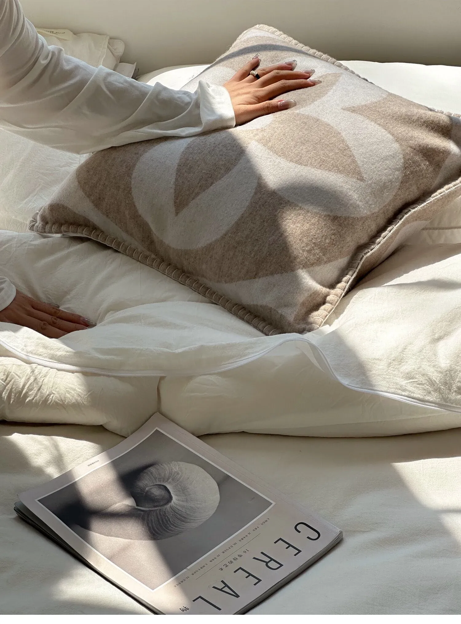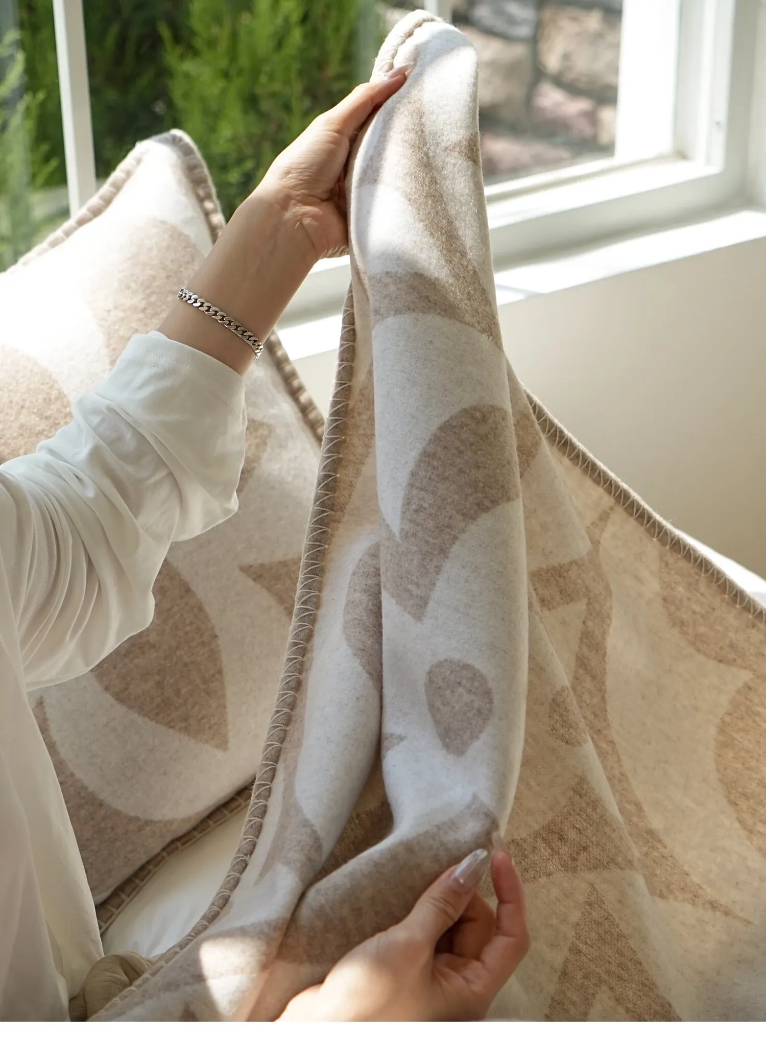 テックスドリームのクールなクローバーデザイン!モダンなライトラグジュアリーのカシミヤクッションとリラックスブランケット。リビングルームやソファ、ベッドサイドにぴったりのスタイリッシュなアイテムです。