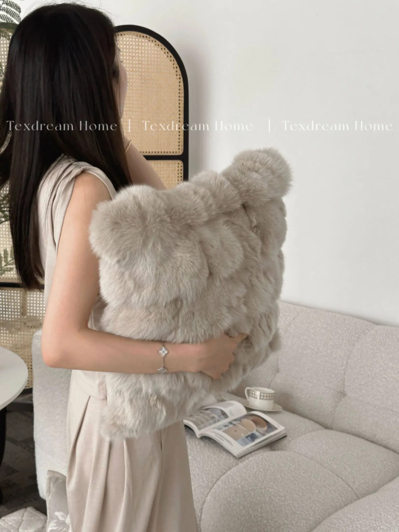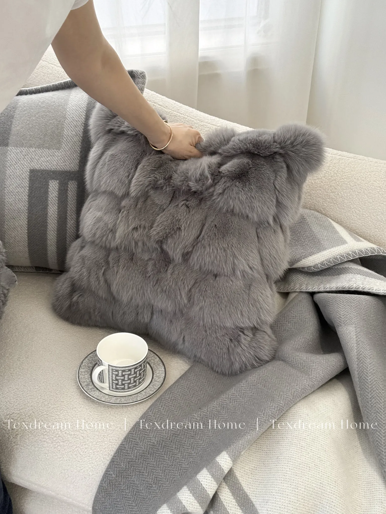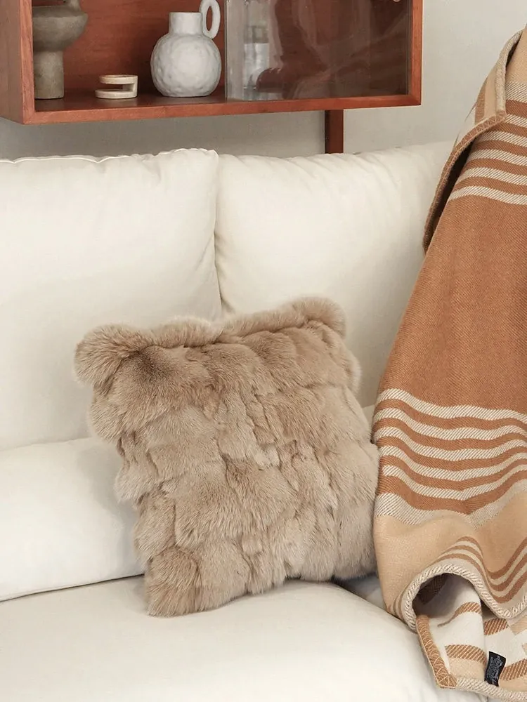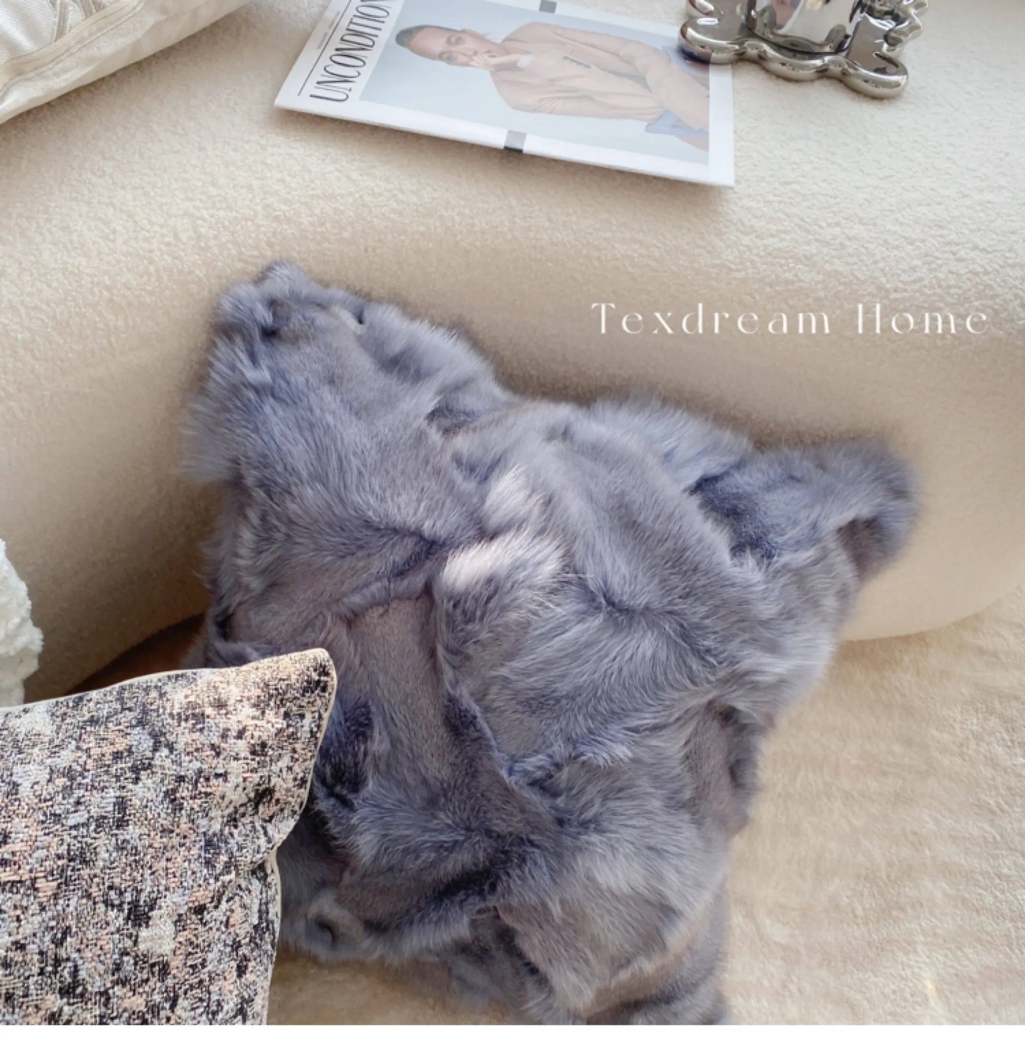 Texdreamのスタイリッシュなシルバー・ブルー・フォックスファー現代ラグジュアリークッションカバー(クッション付き) - おしゃれなリビングソファに最適!